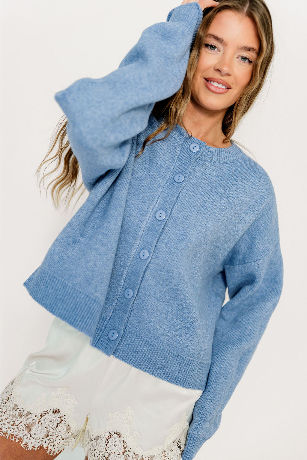 Alyssa Cardigan in Dusty Blue - Nursing Friendly