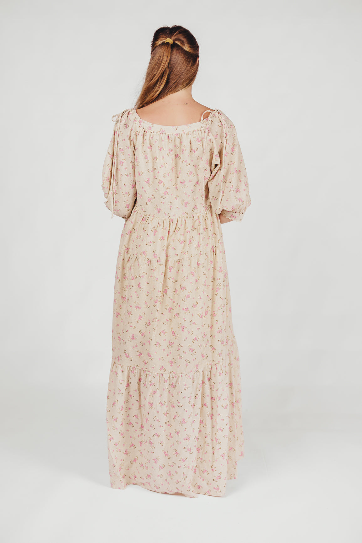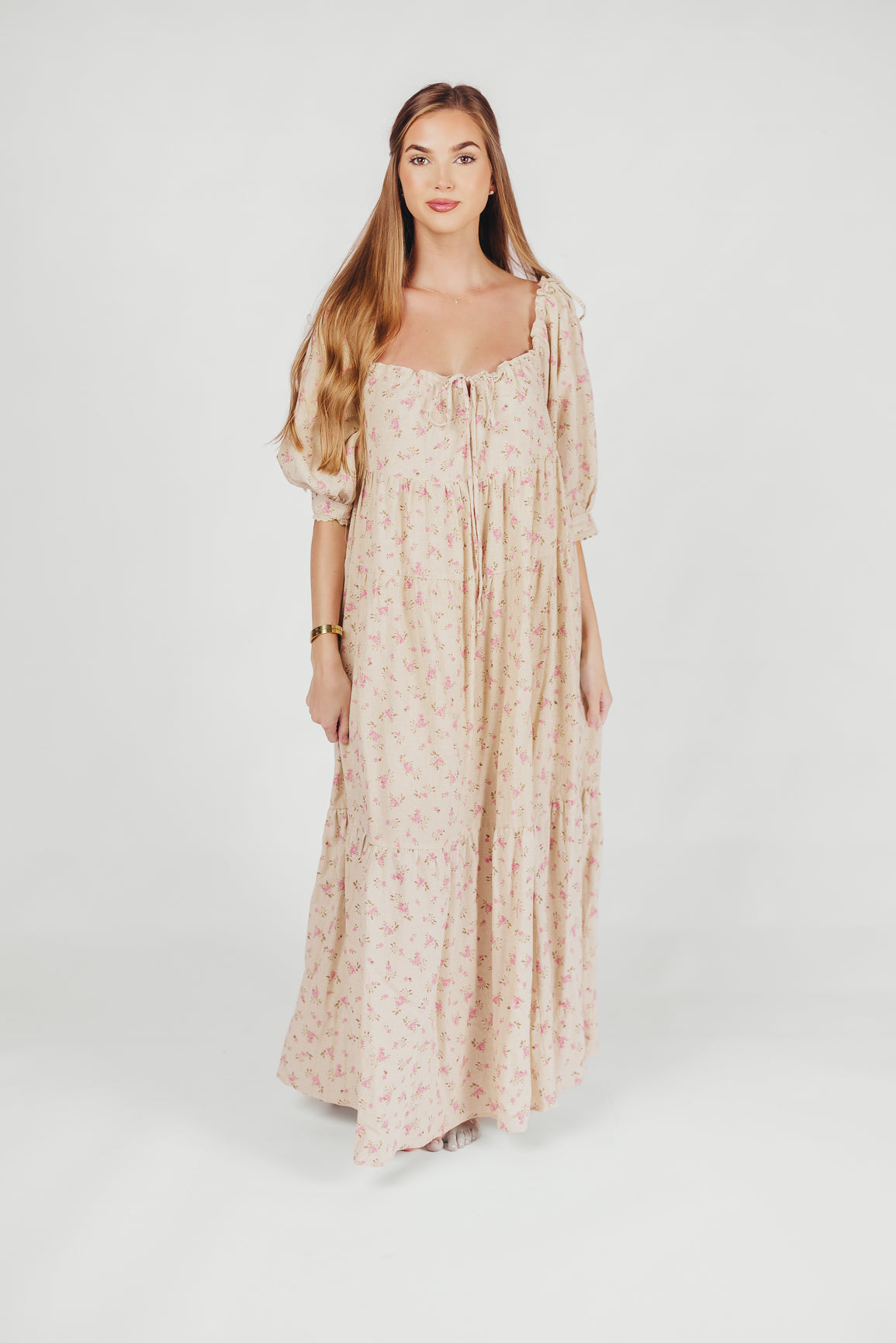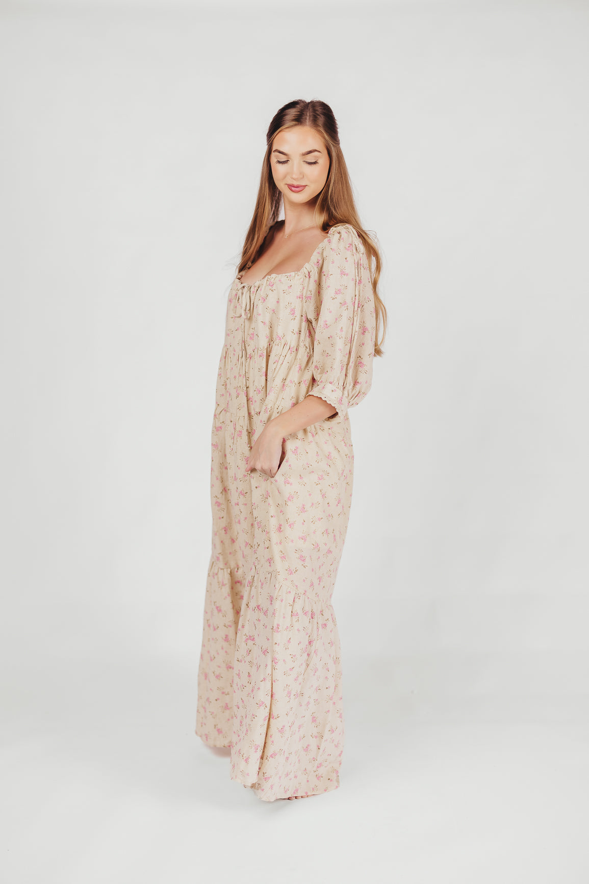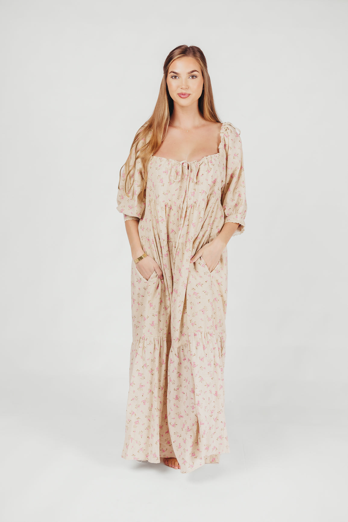 Cara 100% Cotton Maxi Dress in Pink/Brown Floral *Final-Sale*