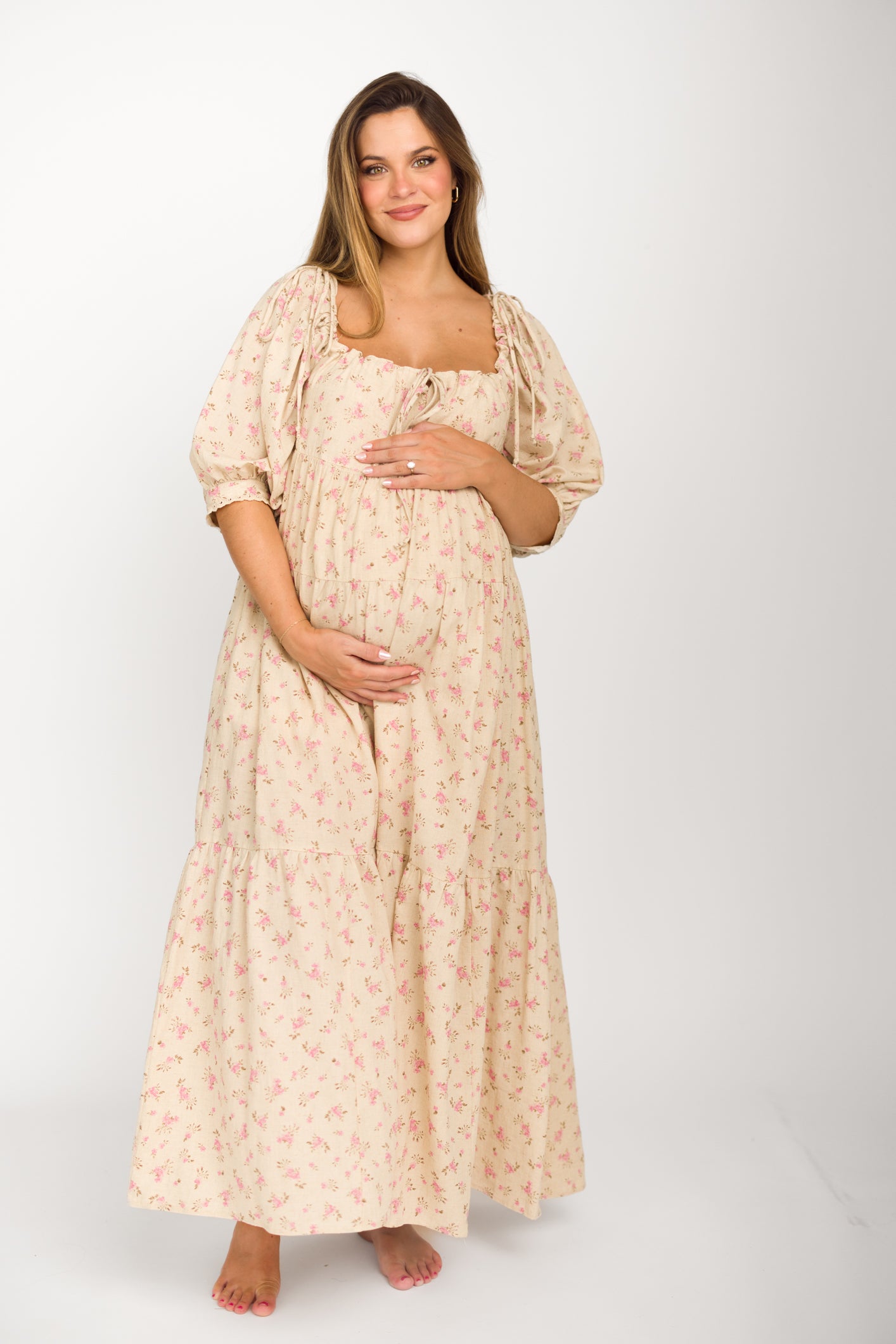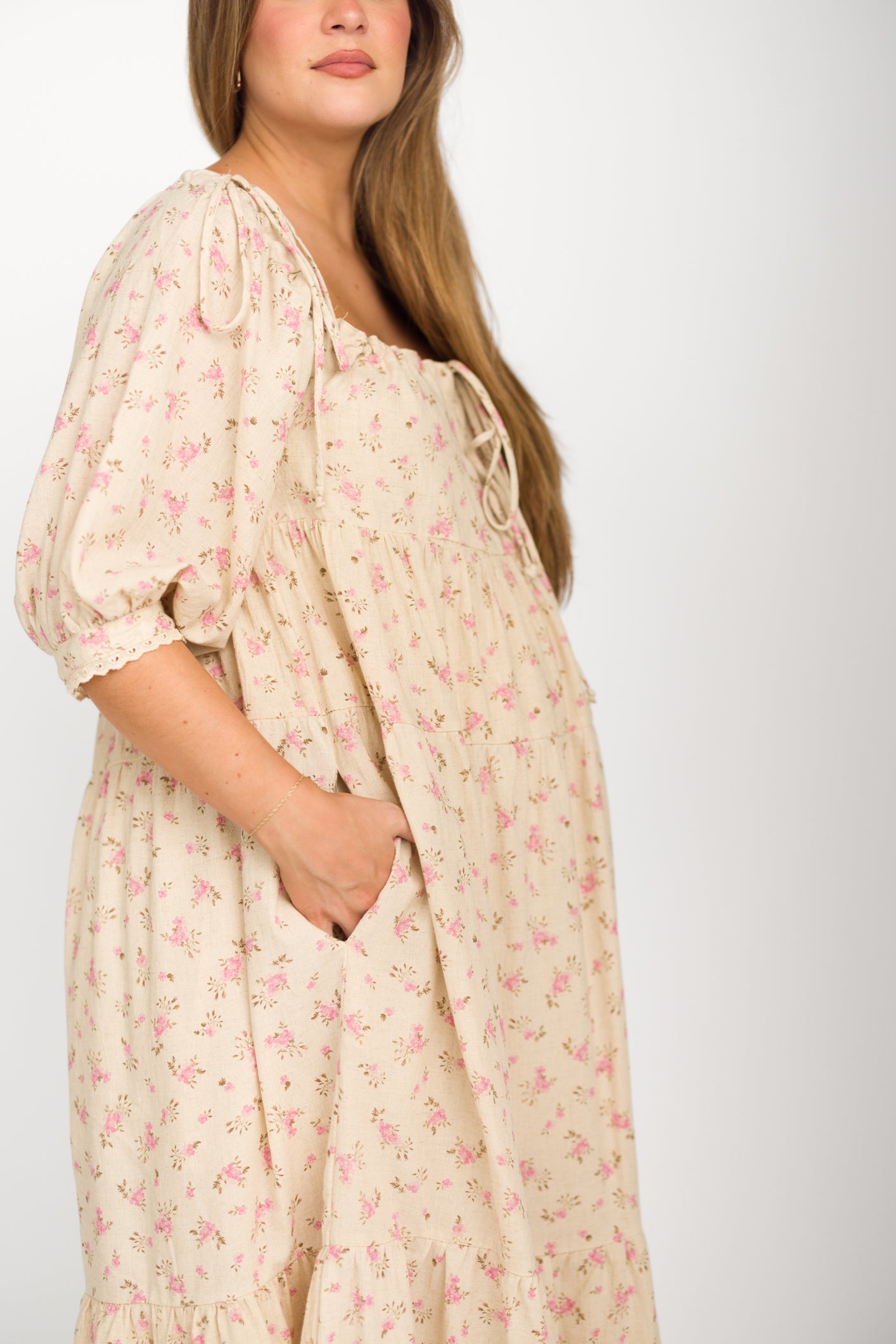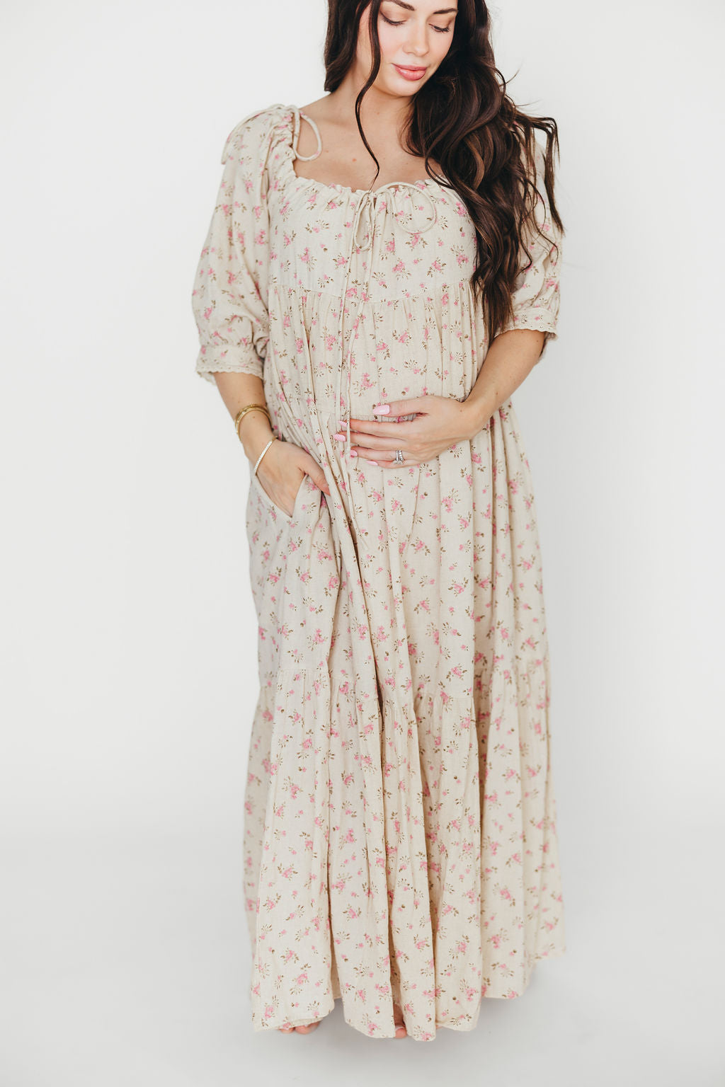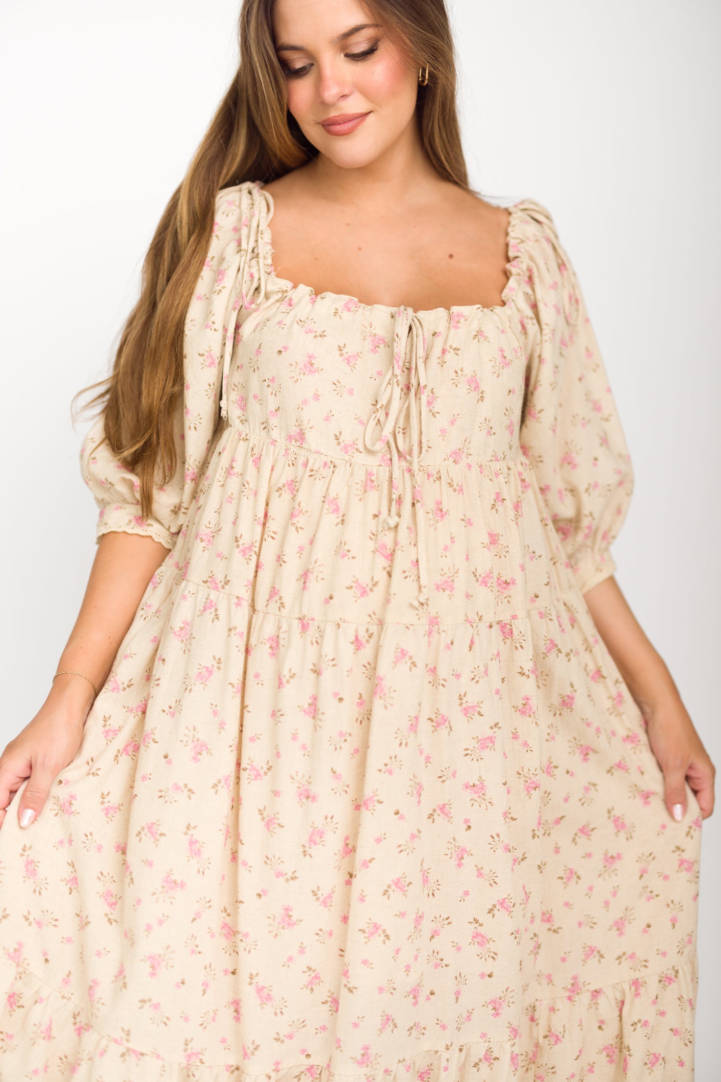 Cara 100% Cotton Maxi Dress in Pink/Brown Floral *Final-Sale*