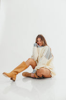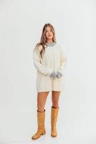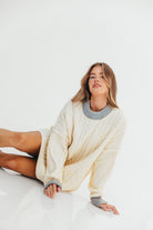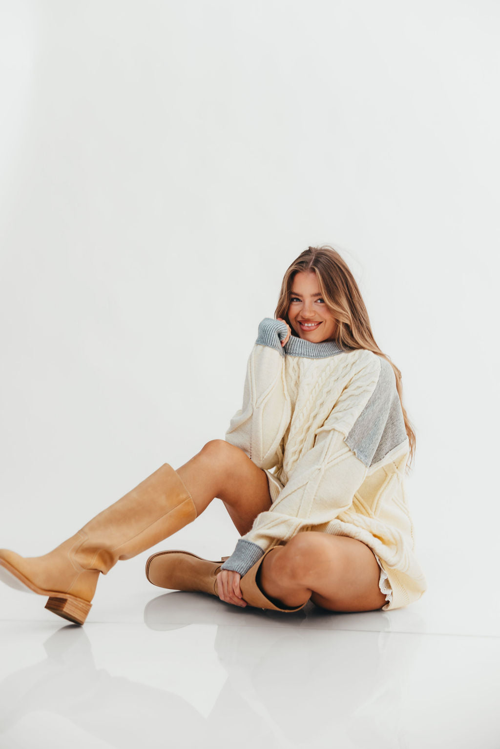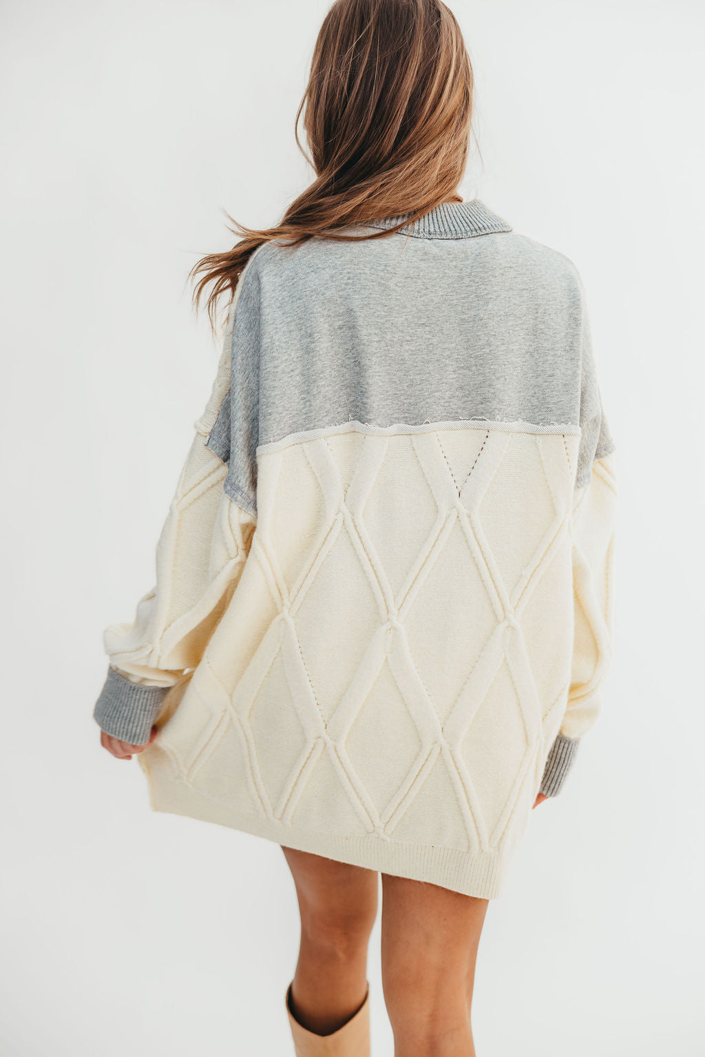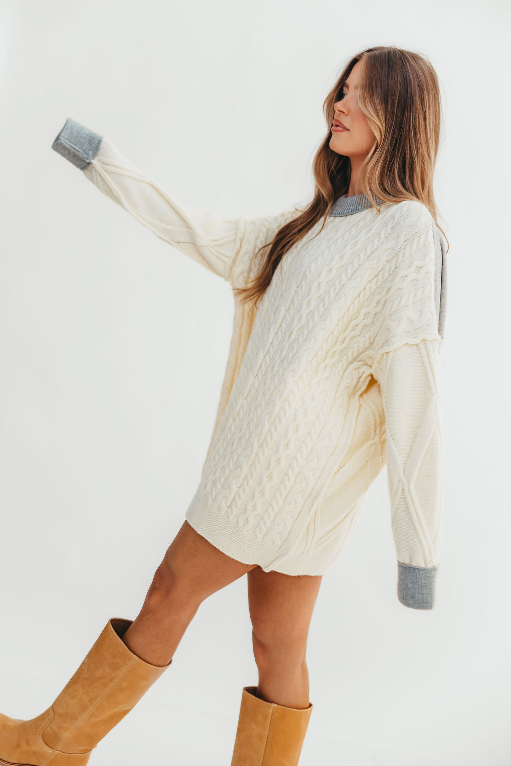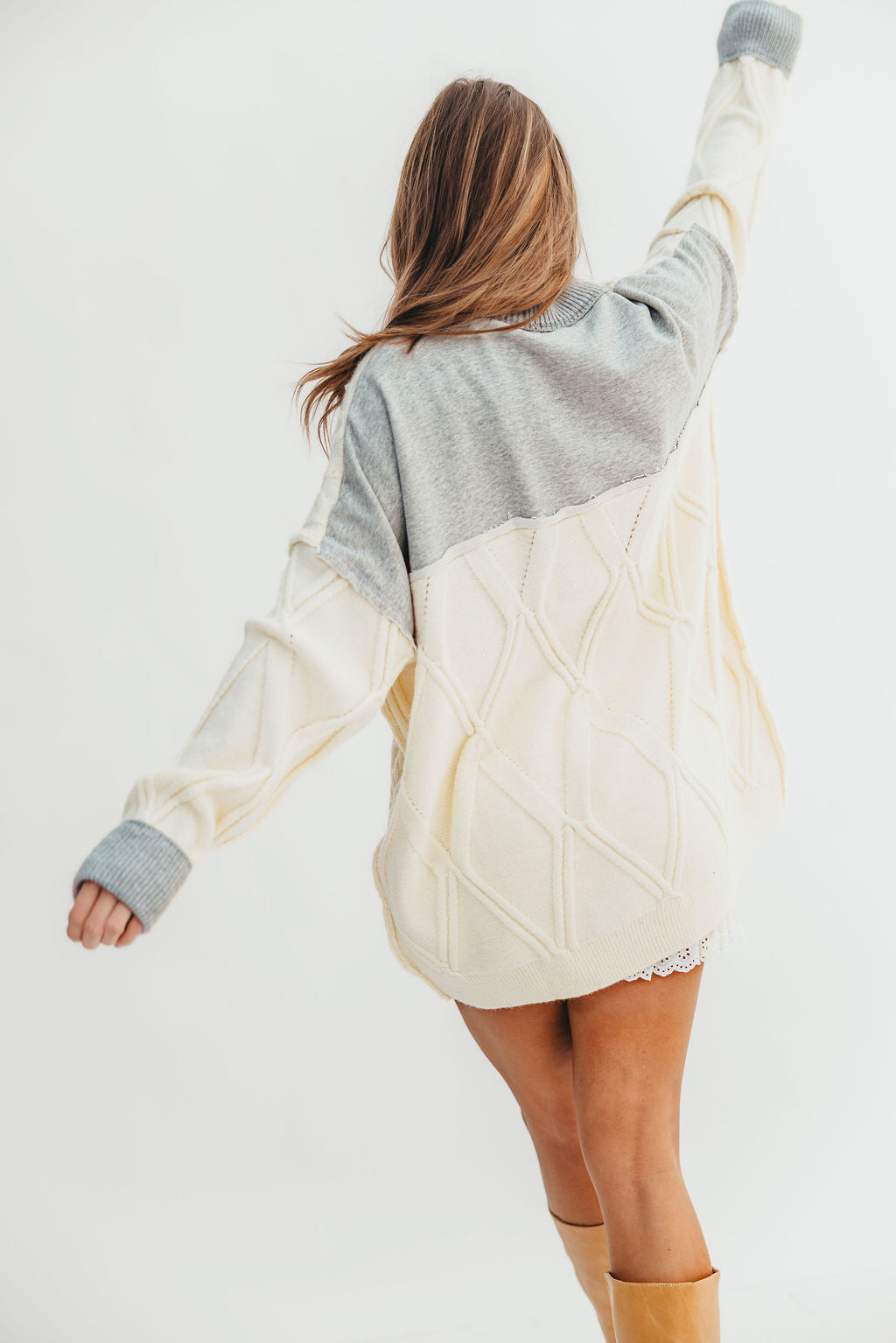 Calvin Oversized Cable Knit Sweater with Contrast in Cream/Heather Grey