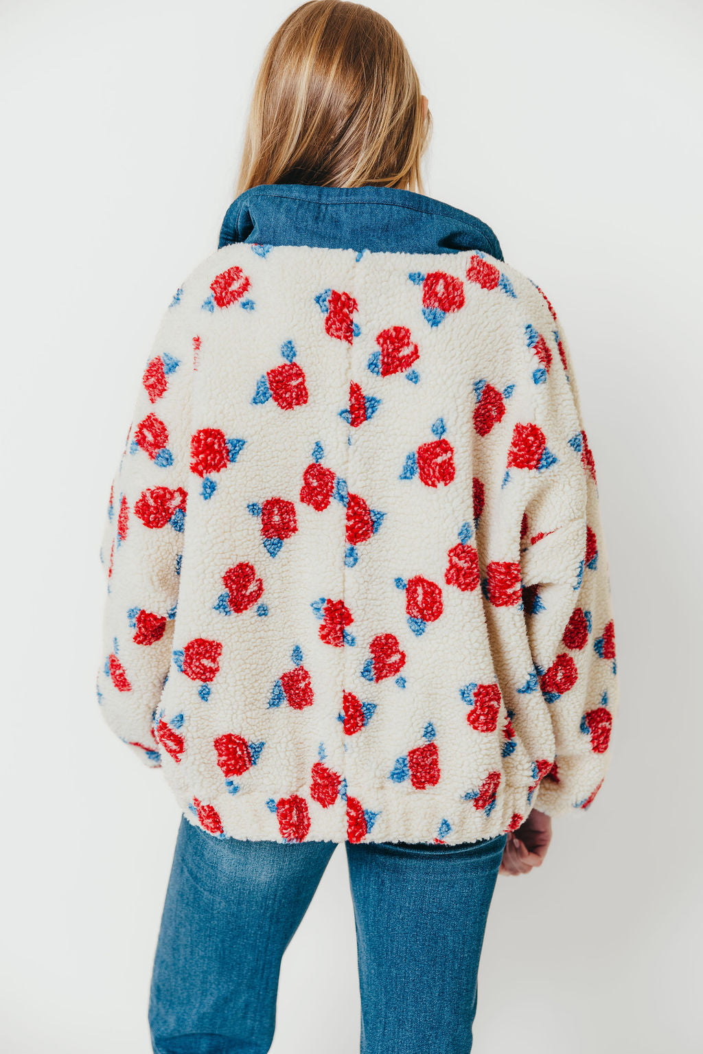 Your favorite sherpa, but make it floral--it doesn't get any better than the Geneva Pullover! This gorgeous sherpa fleece jacket features a half-zip front closure with a whimsical denim placket, plus side pockets and cozy lining. It's going to be your favorite layer this season!