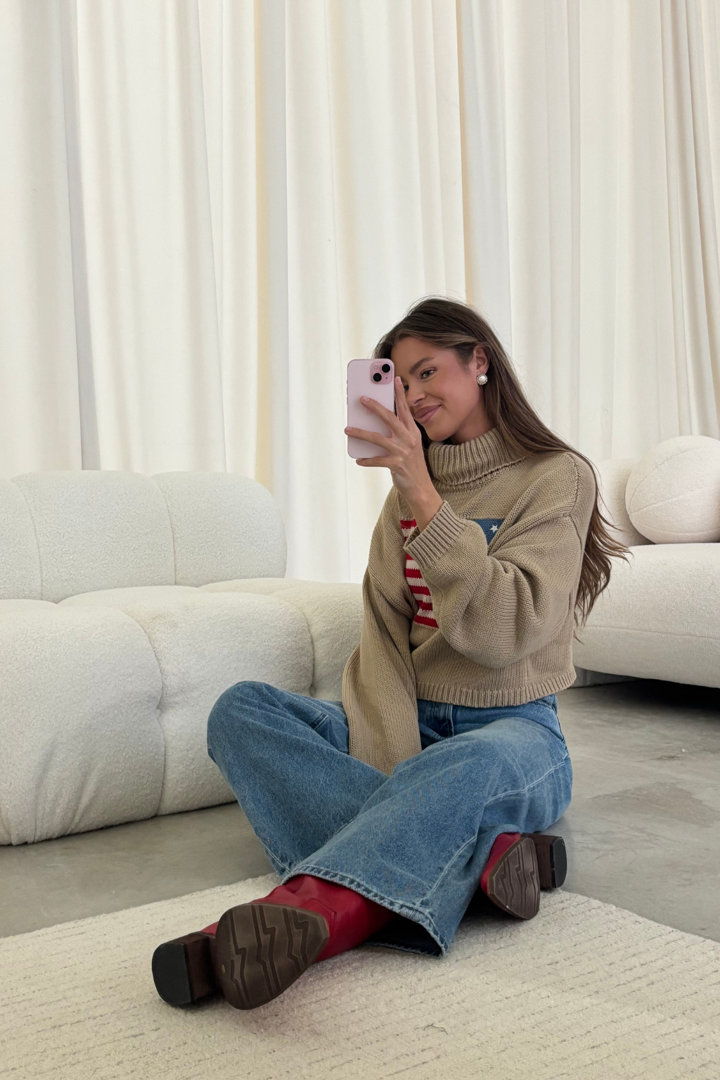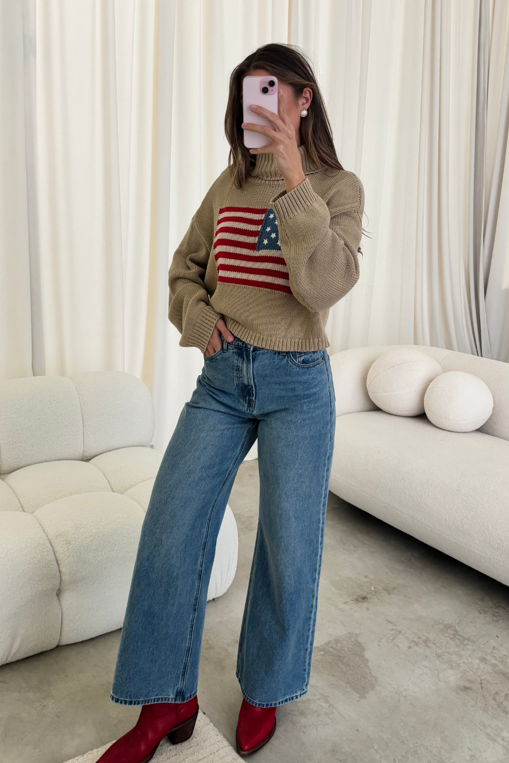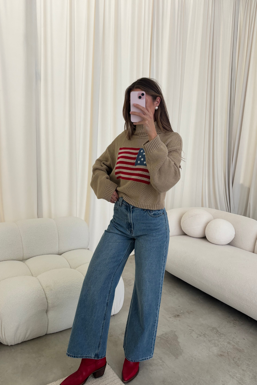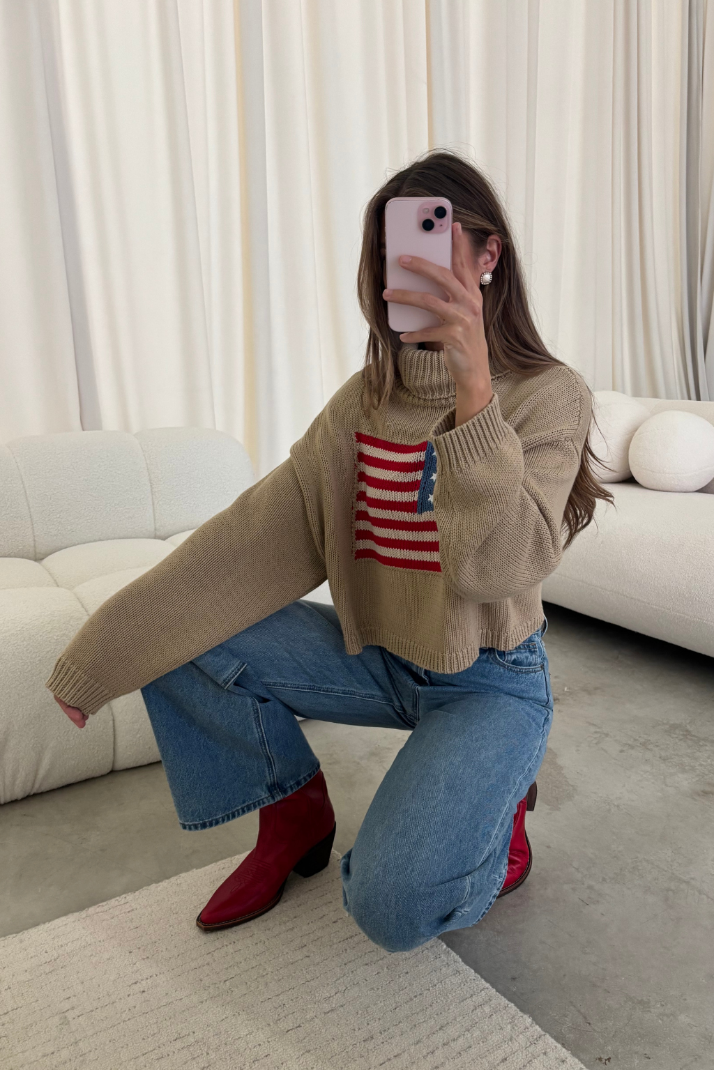 Martha American Flag Turtle Neck Sweater in Straw