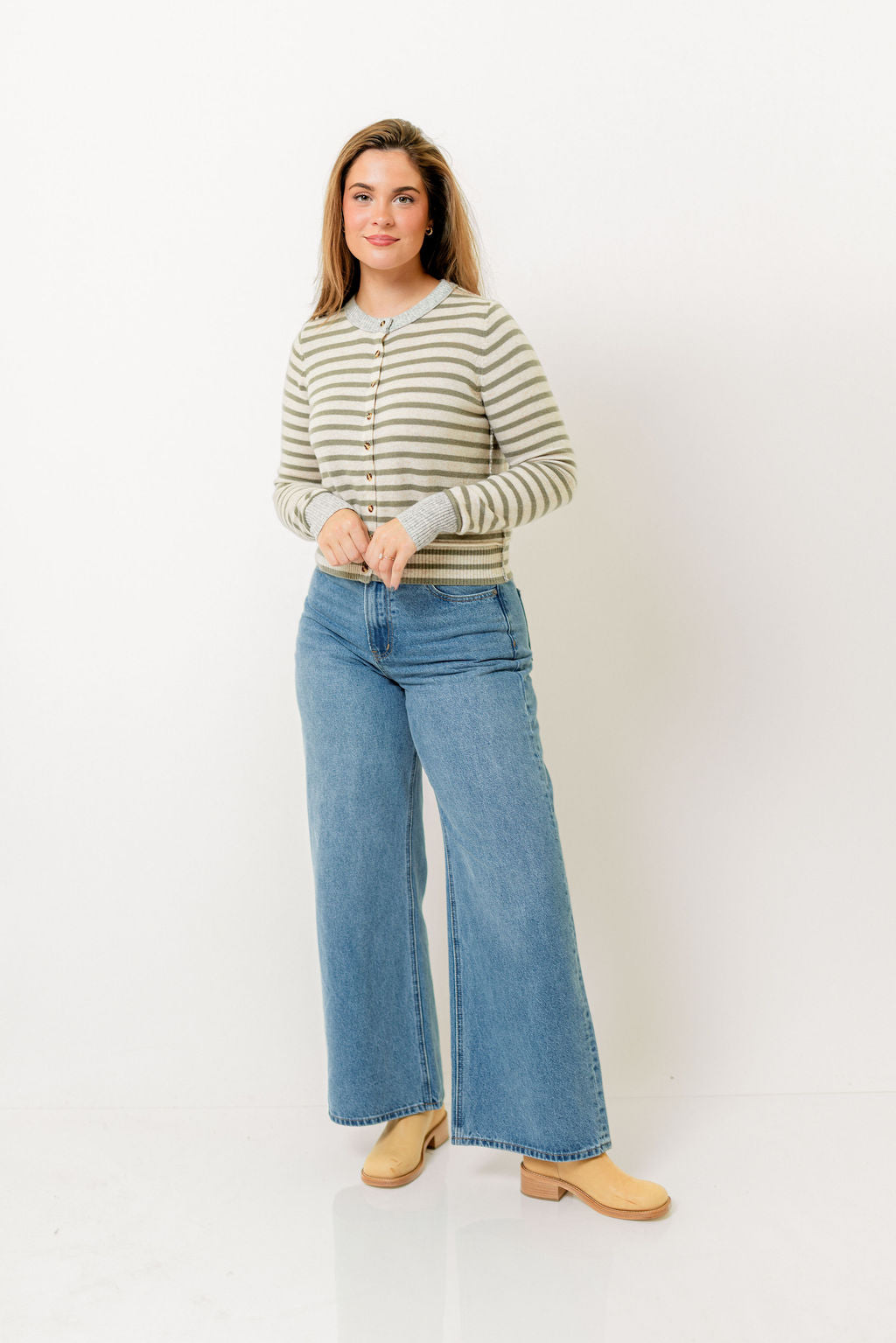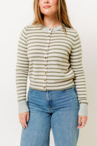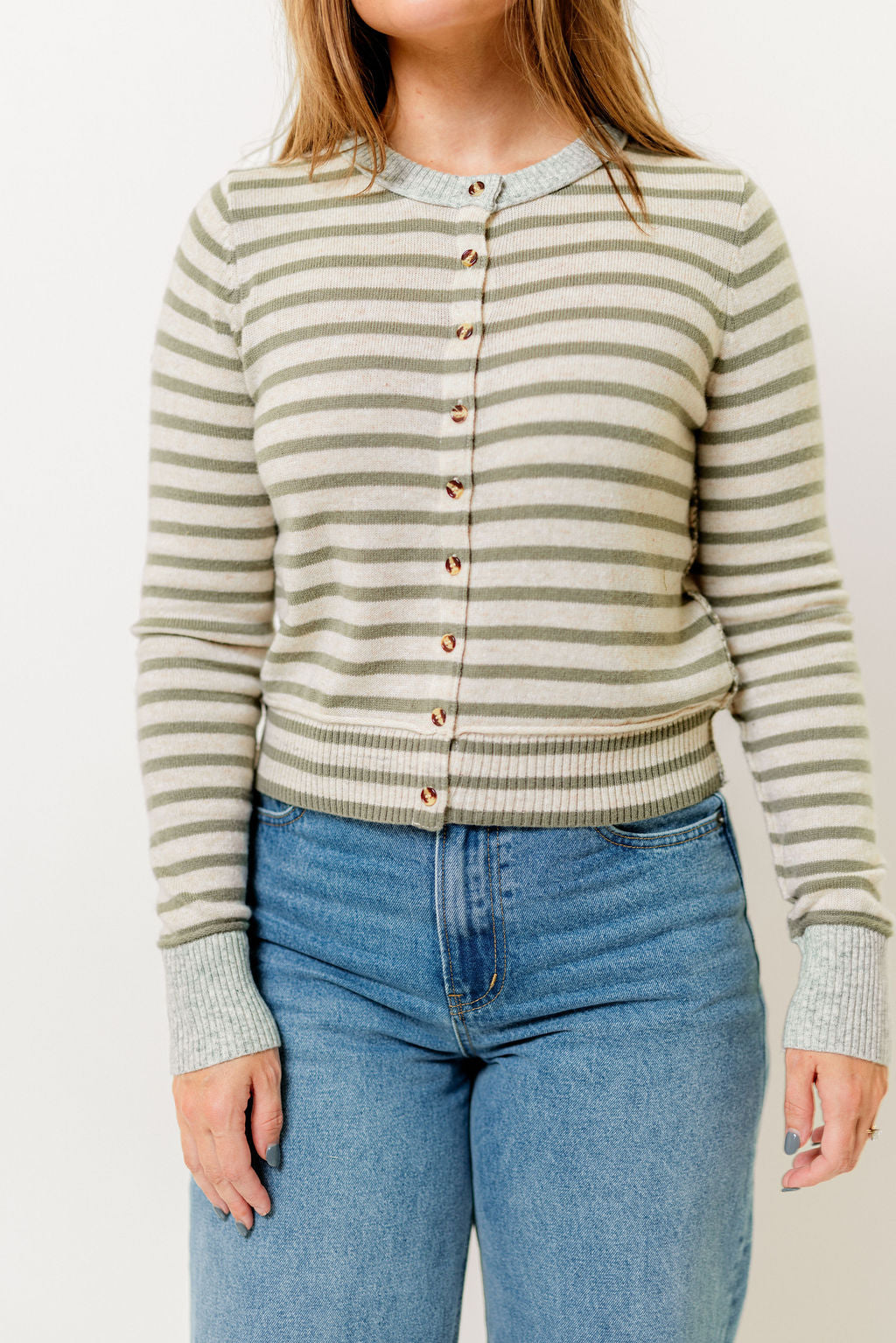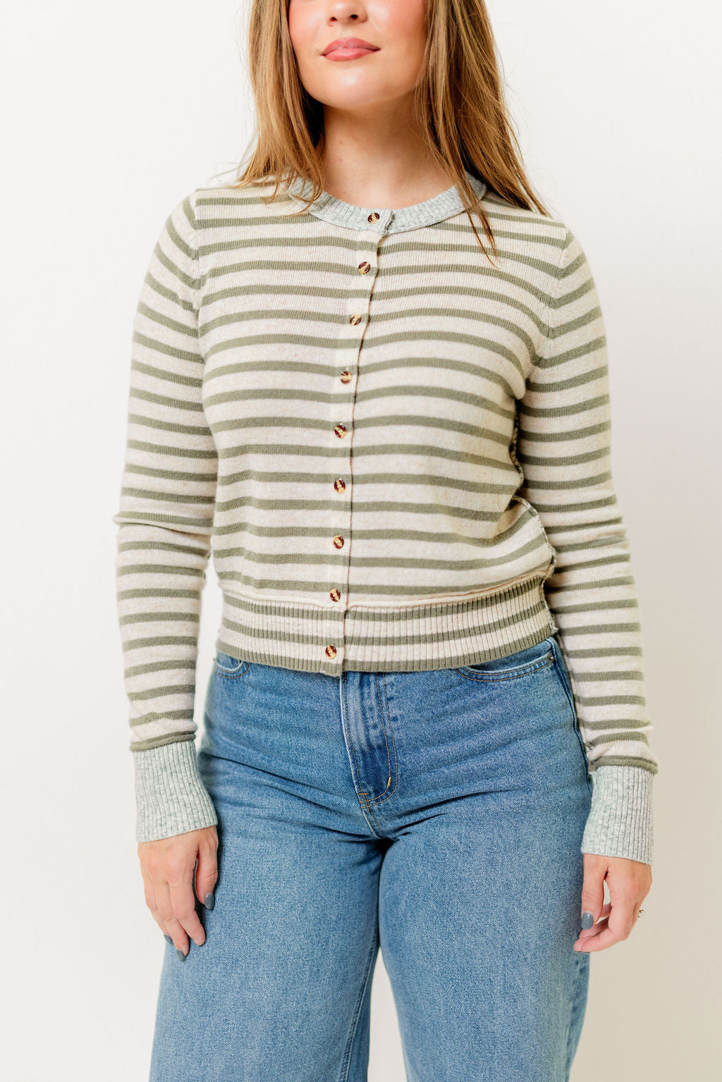 Rae Striped Cardigan Top in Olive/Oat/Grey
