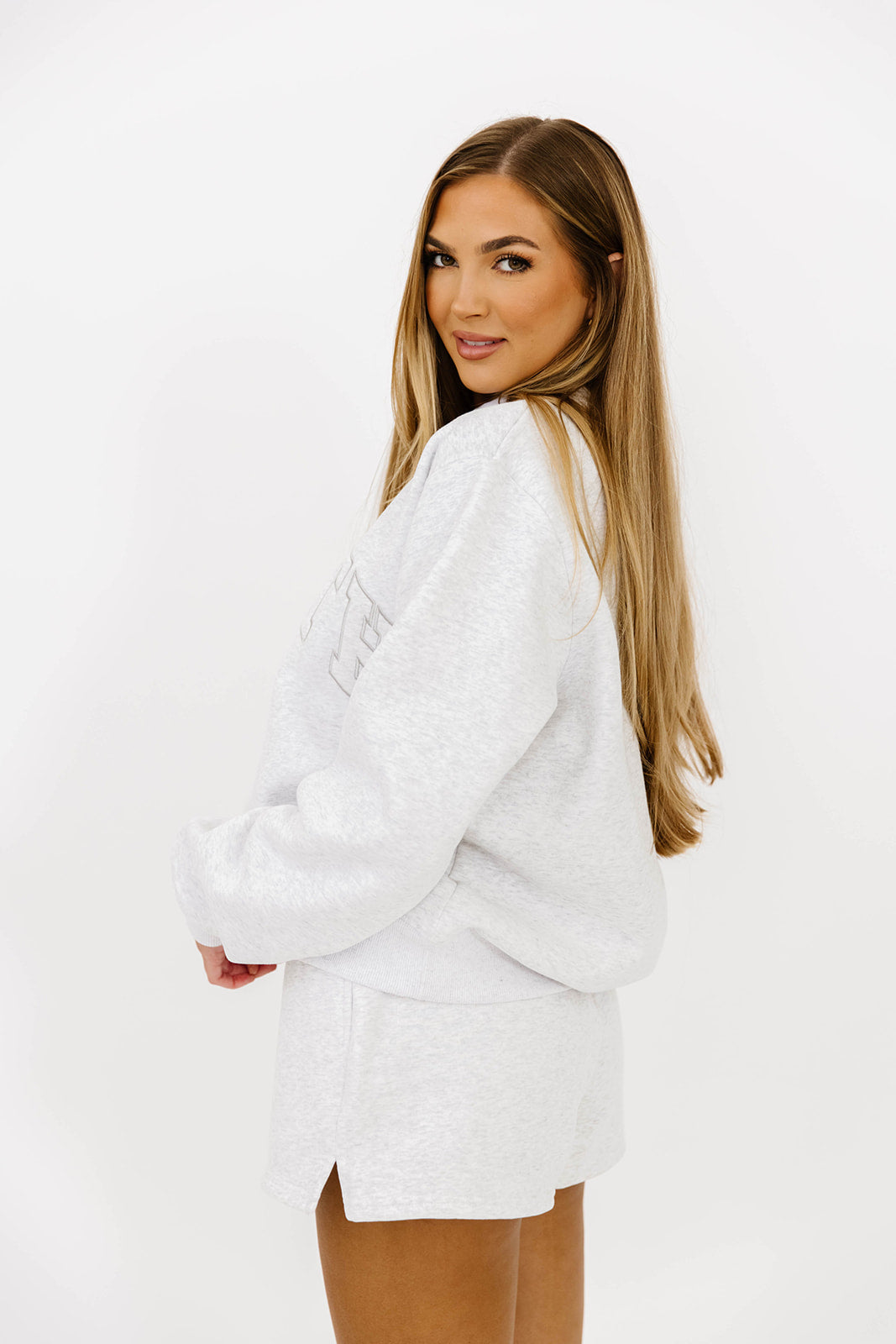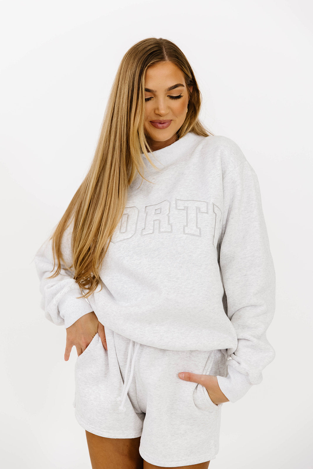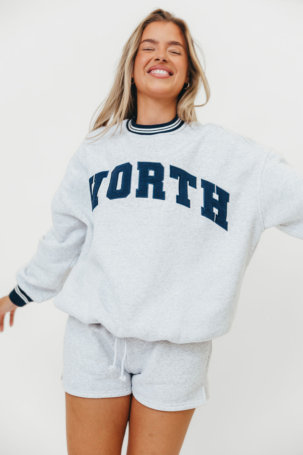 WORTH Preppy Embroider Crew Sweatshirt in Pearl Grey