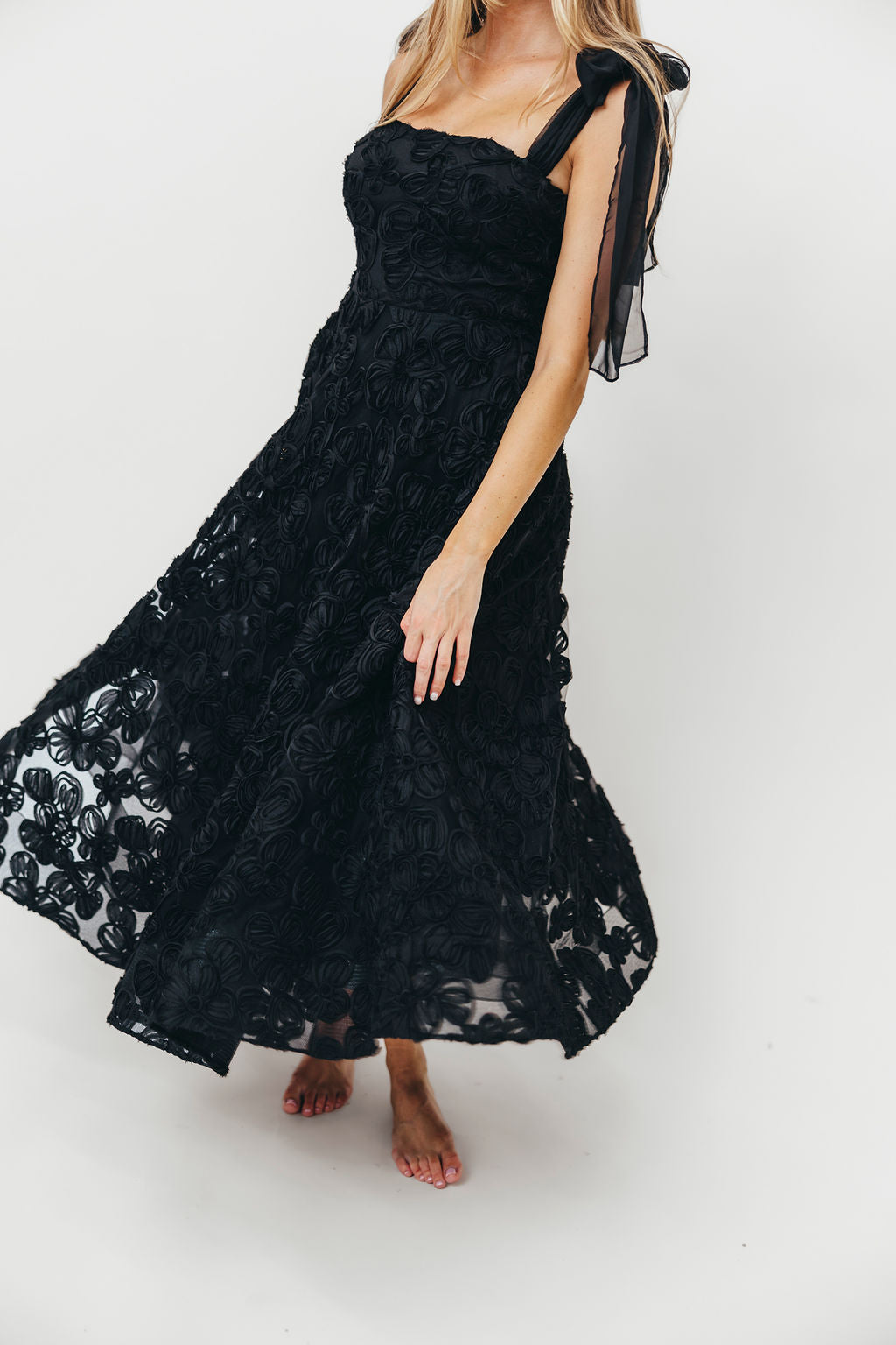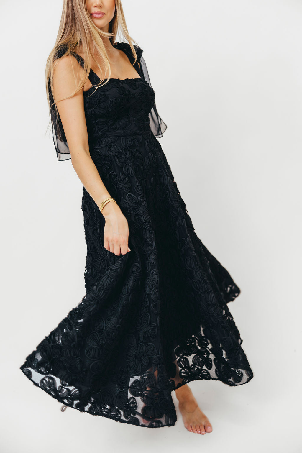 Zinnia 3D Textured Lace Midi Dress in Black *Final-Sale*