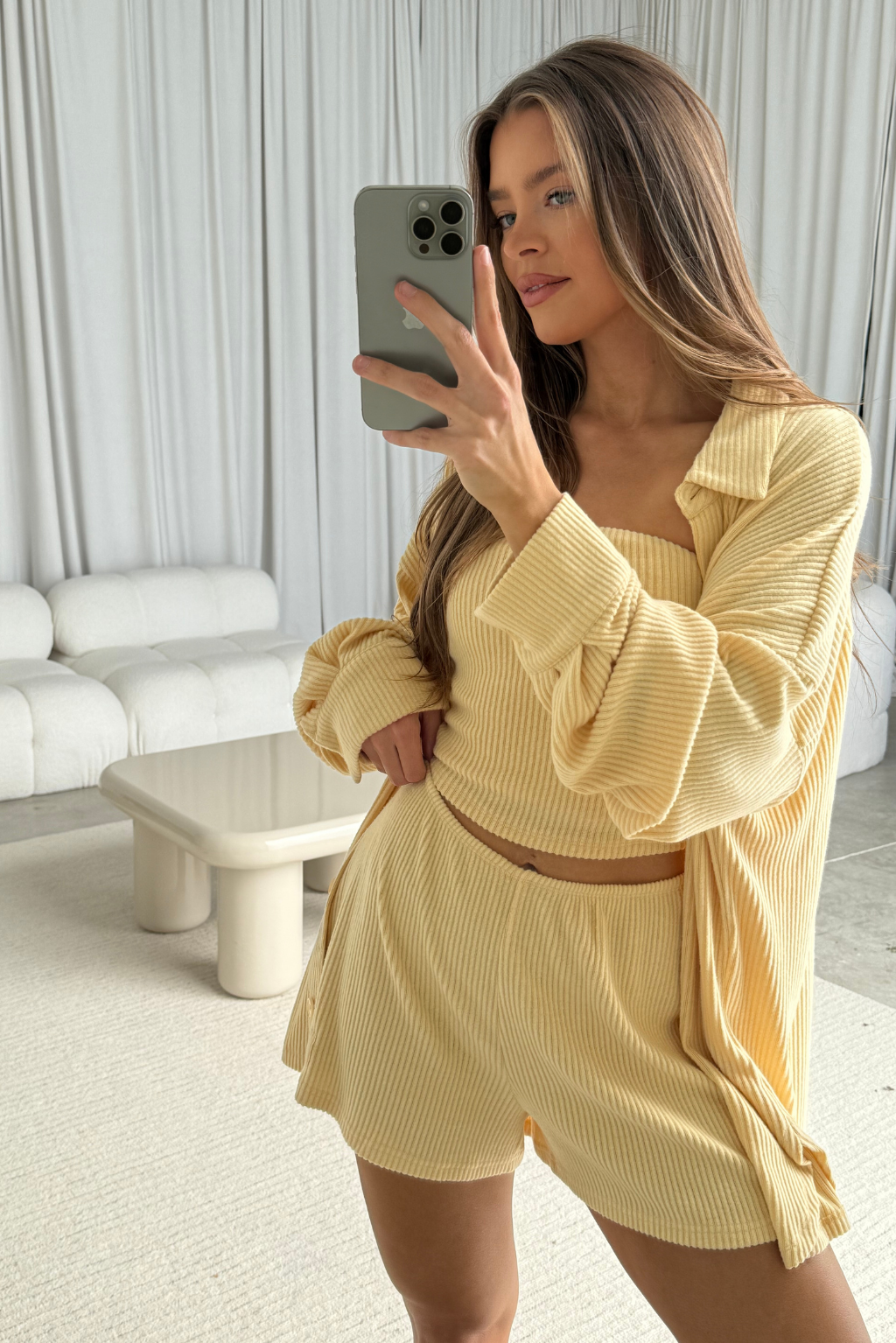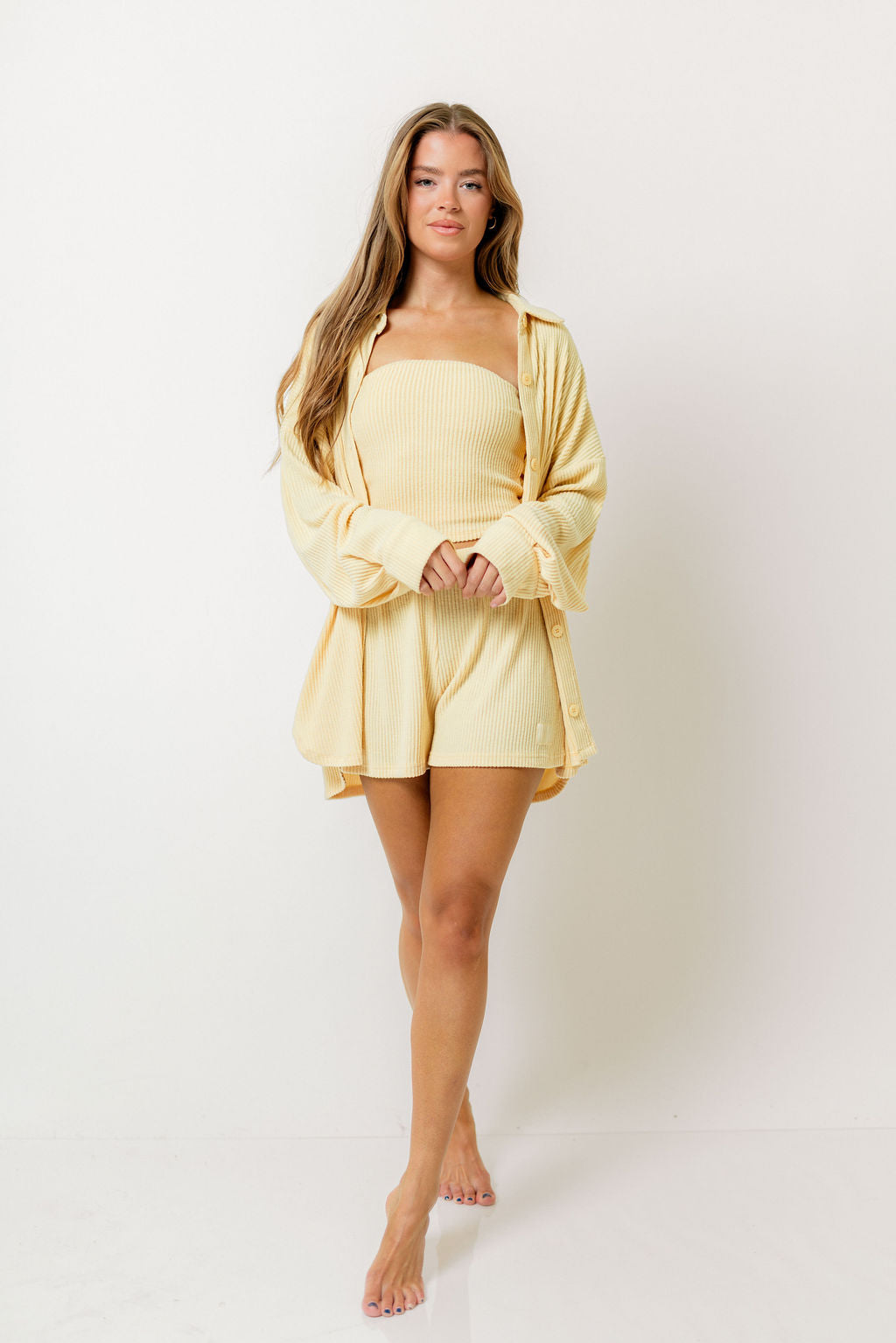 Yacht Club 3 Piece Tube Top and Shorts Set in Honey Butter