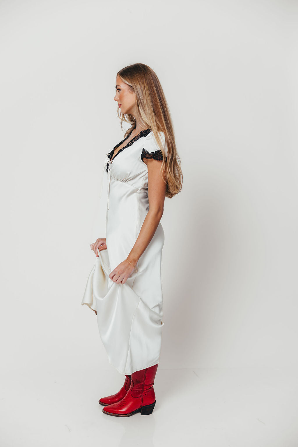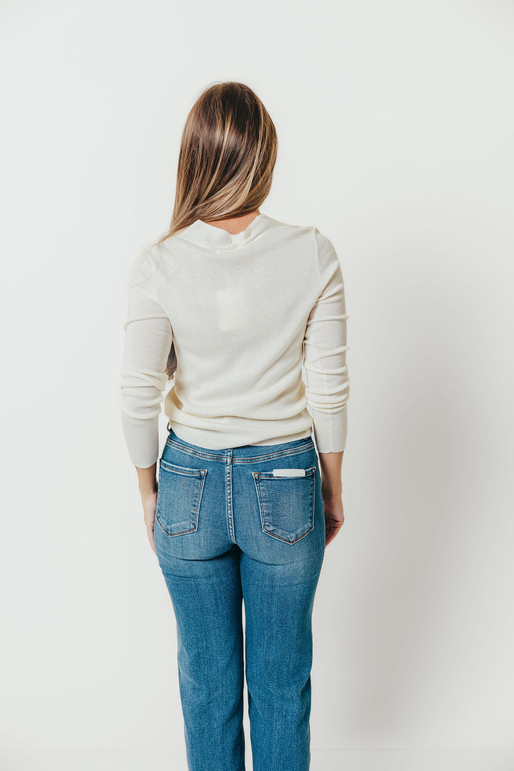 Whittier V-Neck Button Closure Knit Top in Ivory