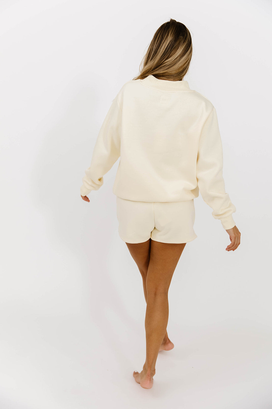 WORTH Tone On Tone Embroidered Mockneck Sweatshirt in Toasted Cream *Final Sale*