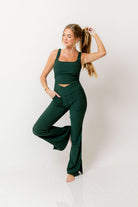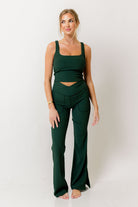 Avi Ribbed Square Neck Crop Top in Regency Green