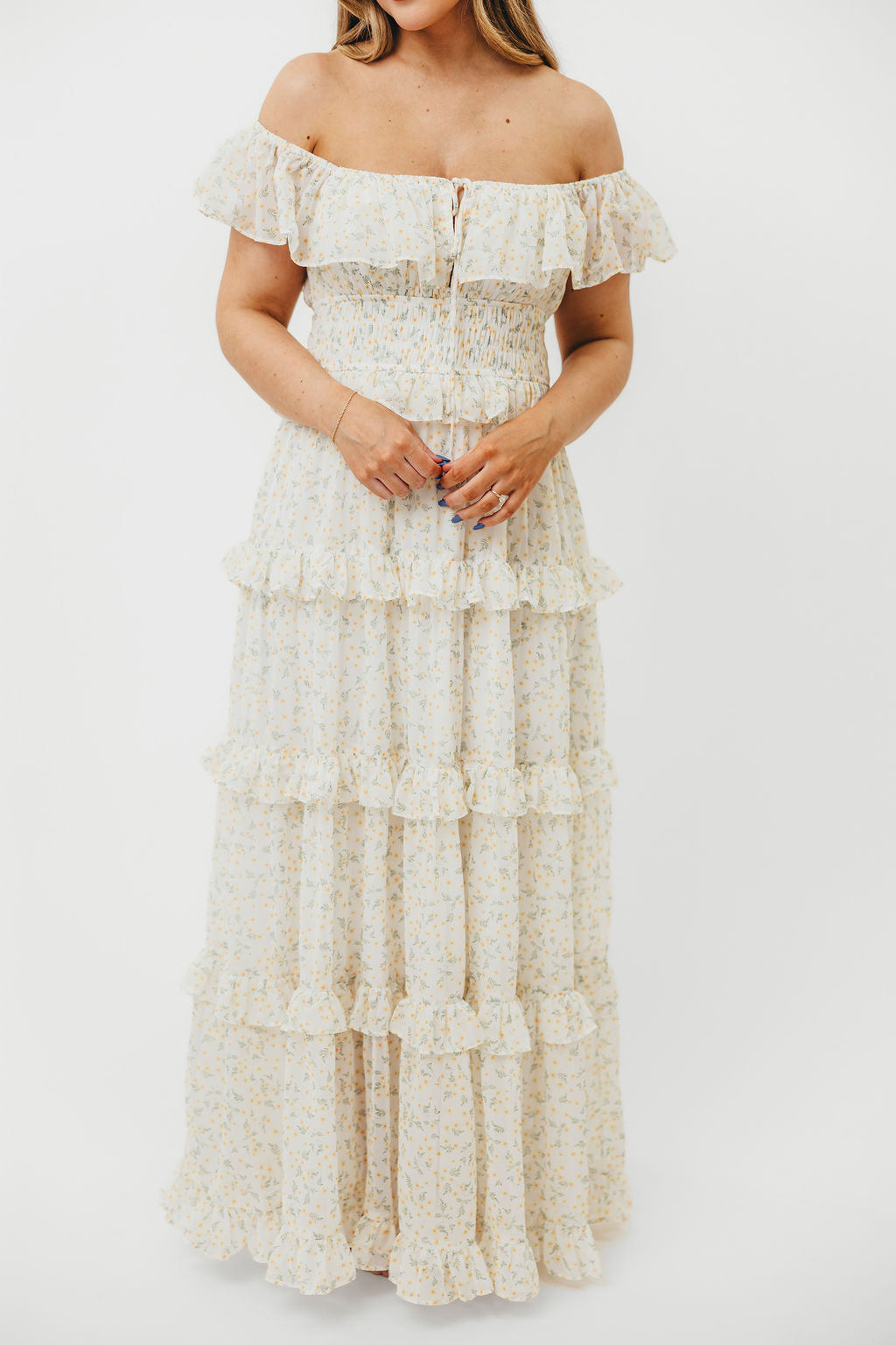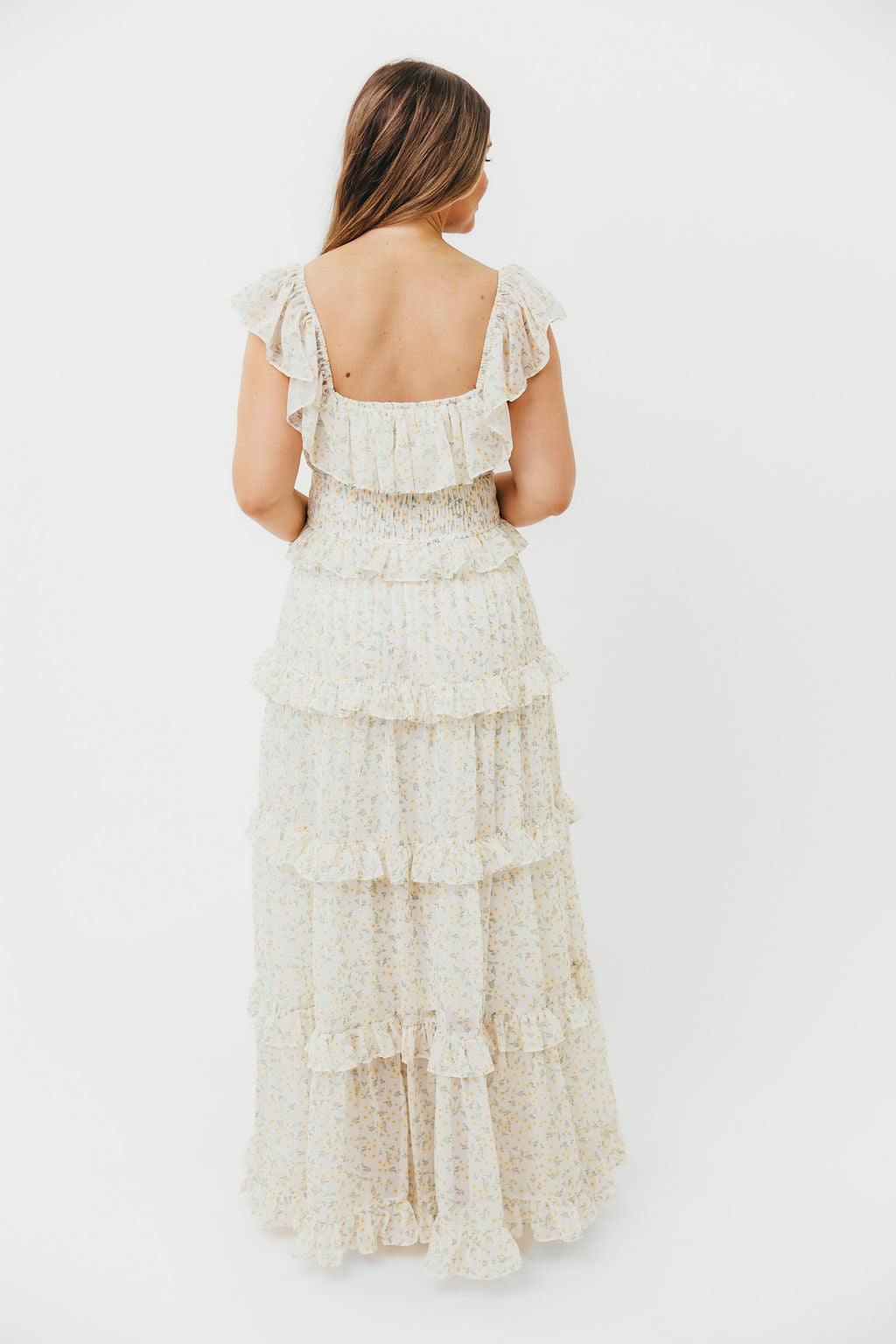 Astrid Ruffle Detail Maxi Dress in Yellow Floral - Bump Friendly
