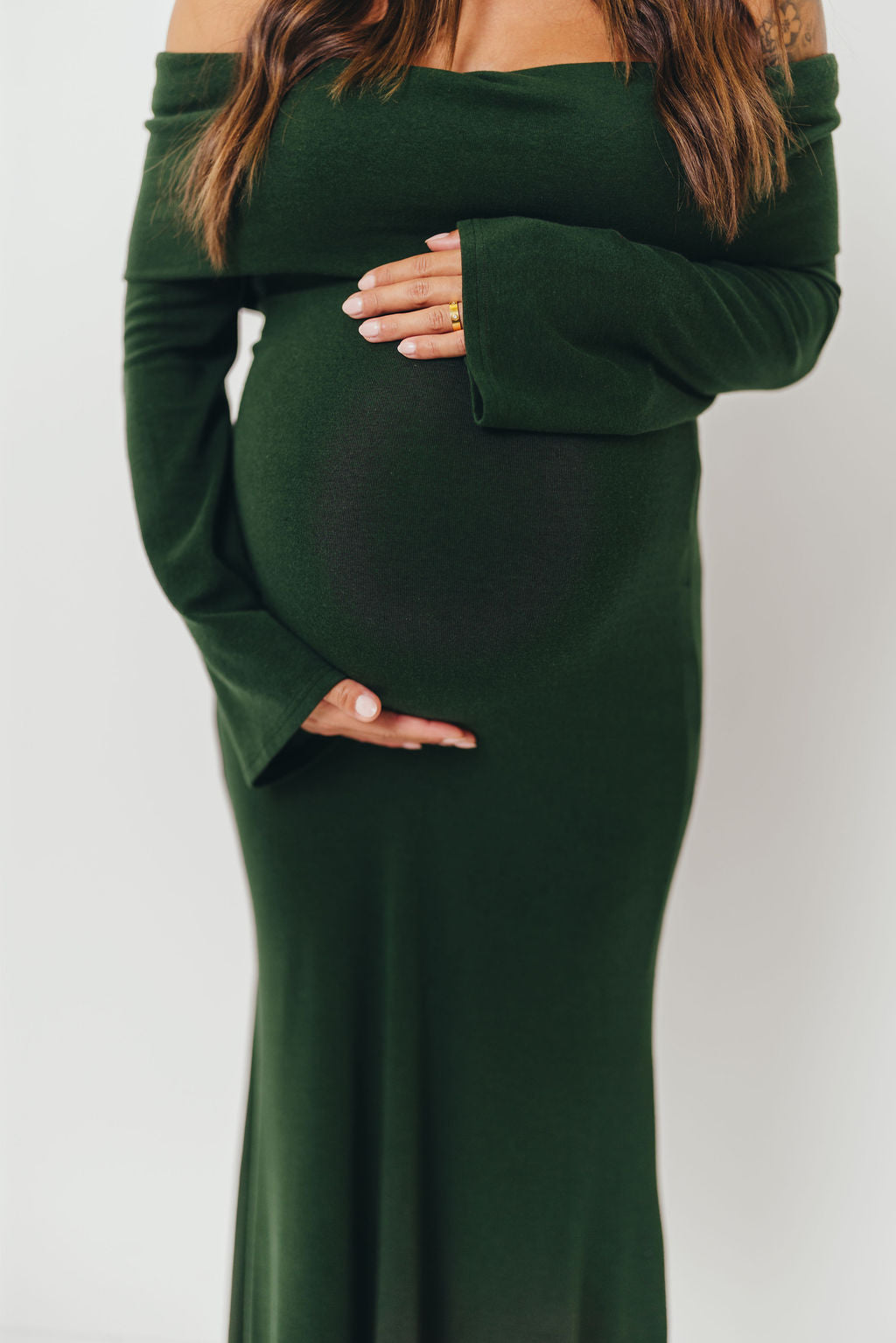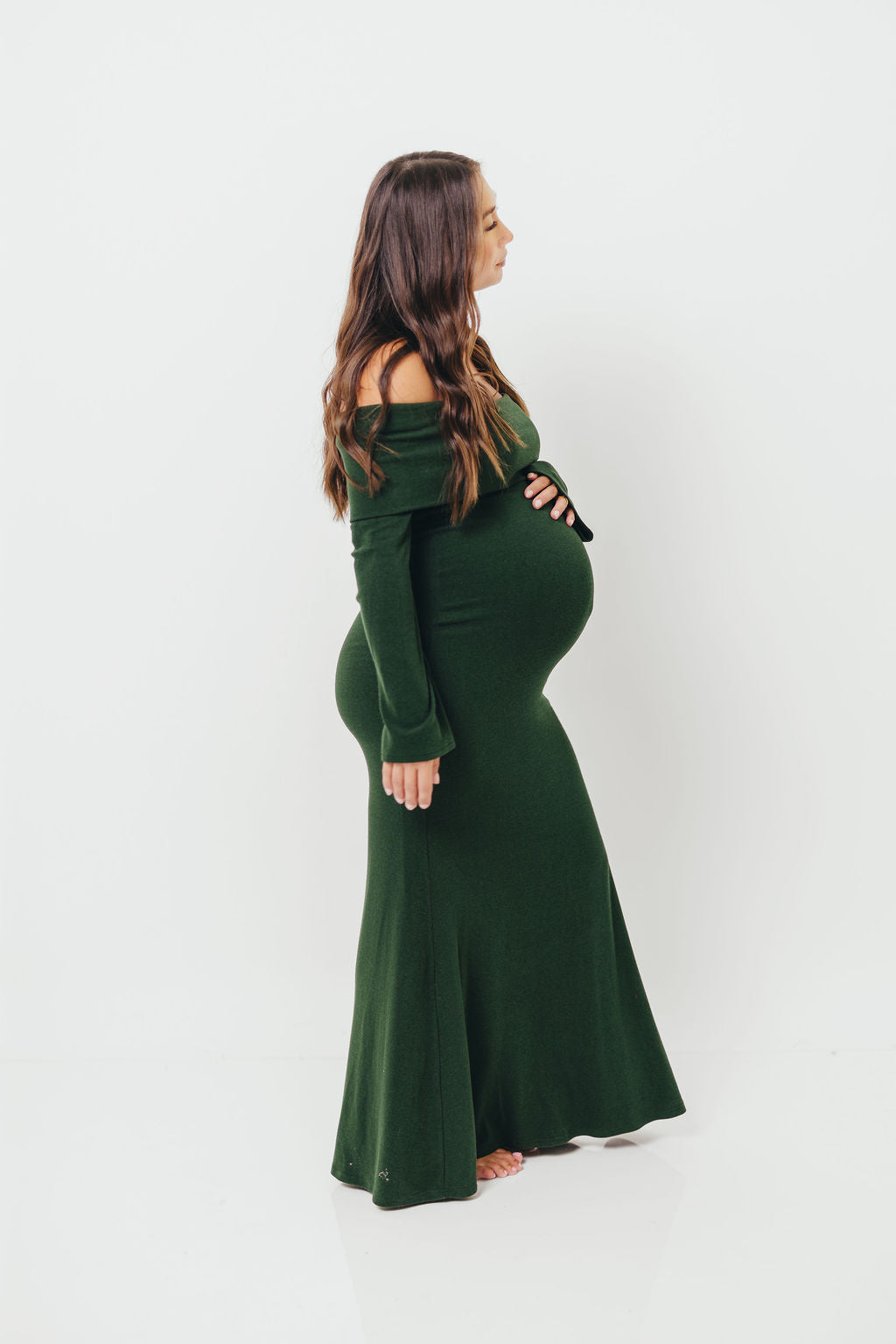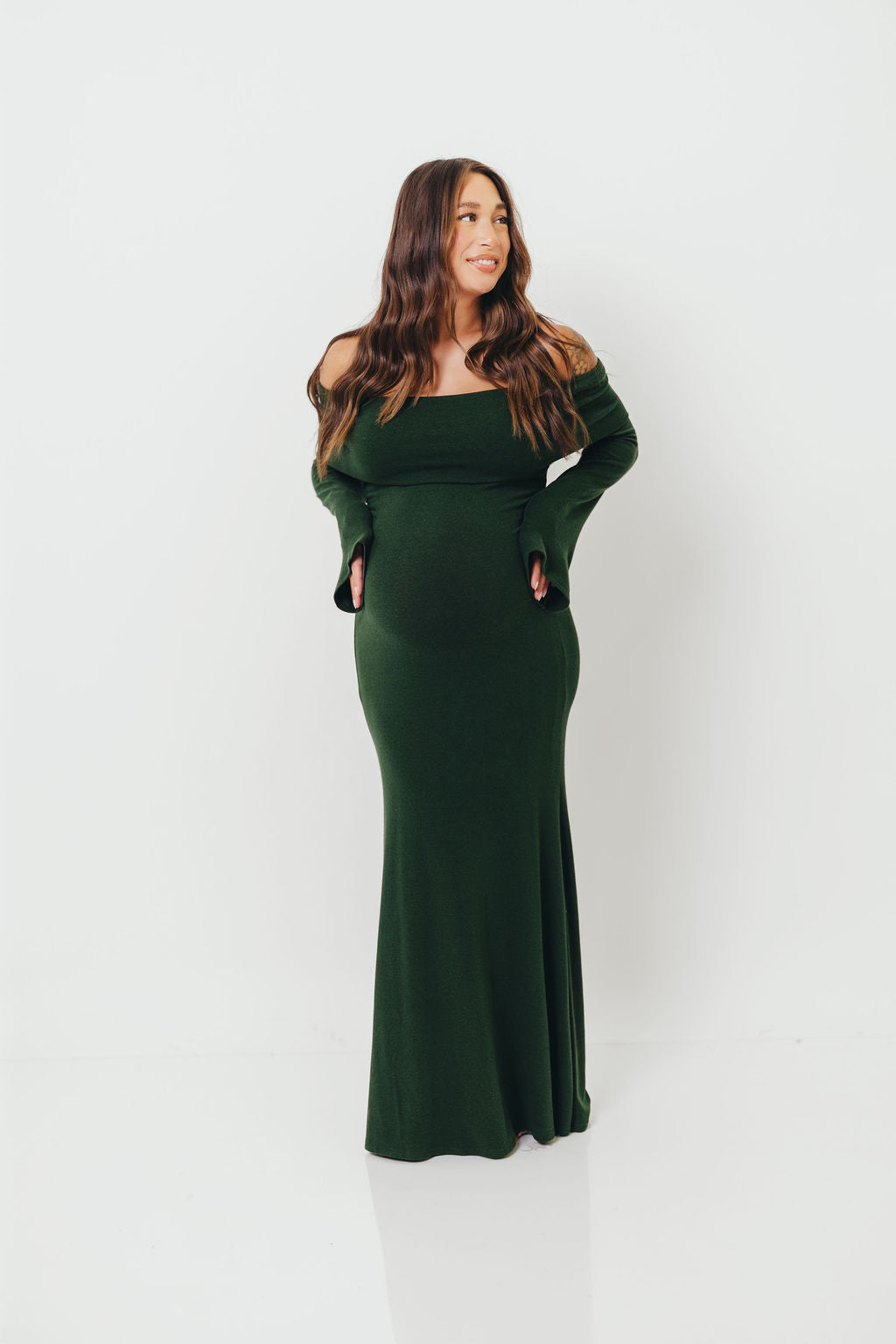 Monroe Maxi Dress with Long Sleeves in Hunter Green- Bump Friendly *Final Sale*