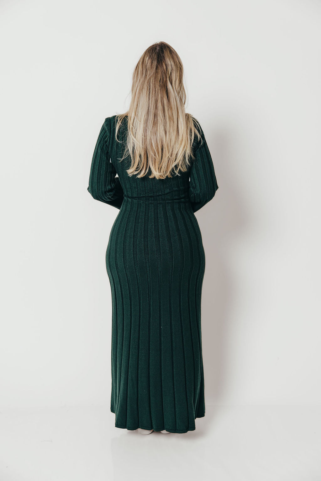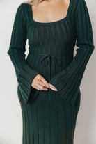 GARMENT DETAILS: Glamorous ribbed knit maxi dress with flattering square neckline, long flared sleeves, and a feminine fit-and-flare silhouette.