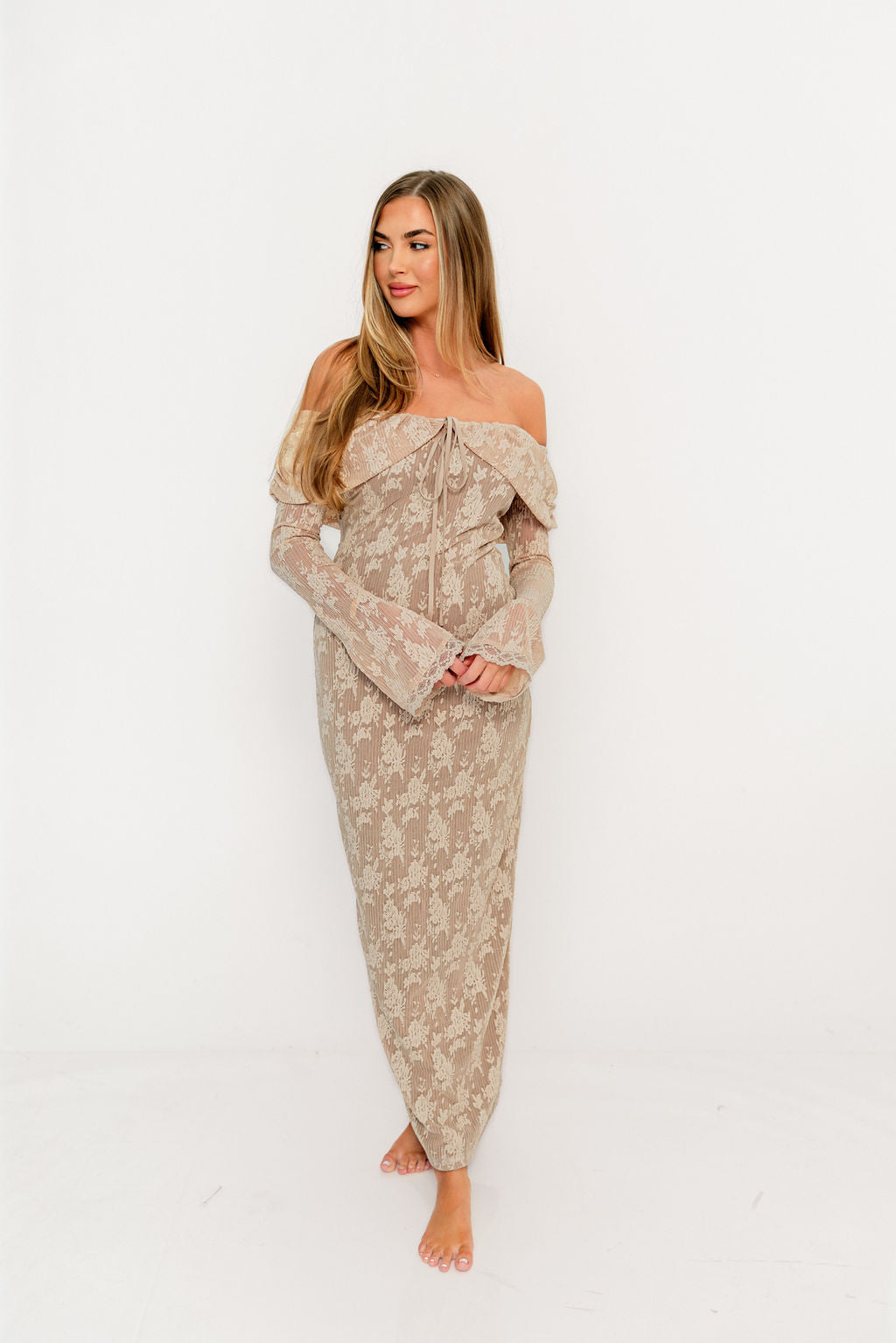 Ella Lace Maxi Dress in Nude