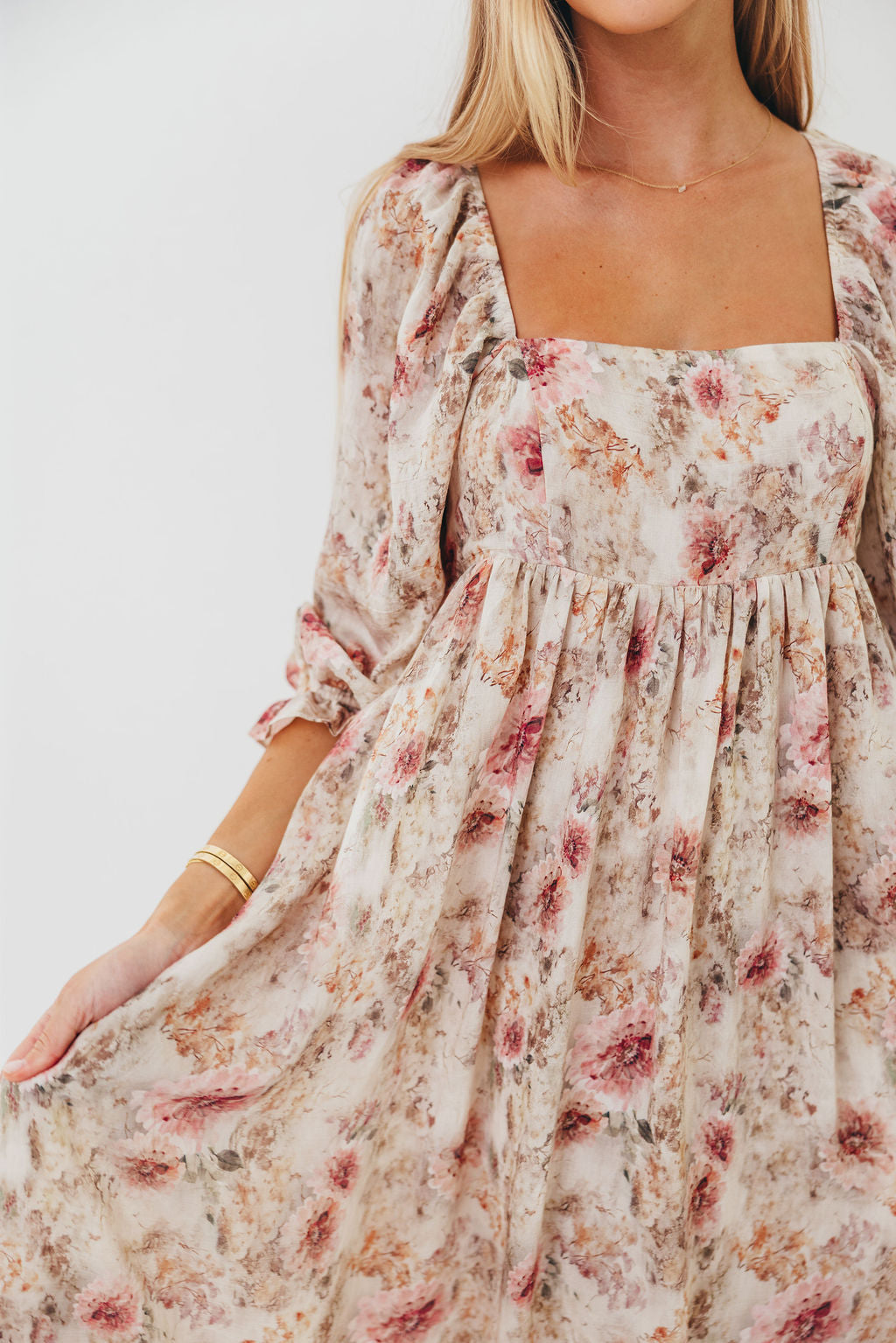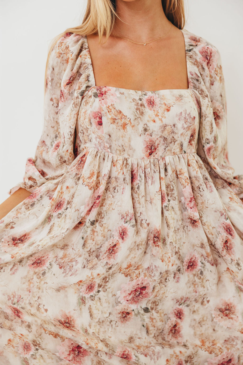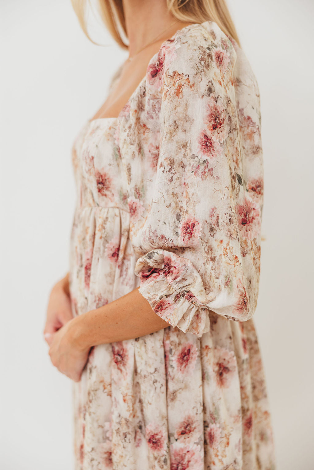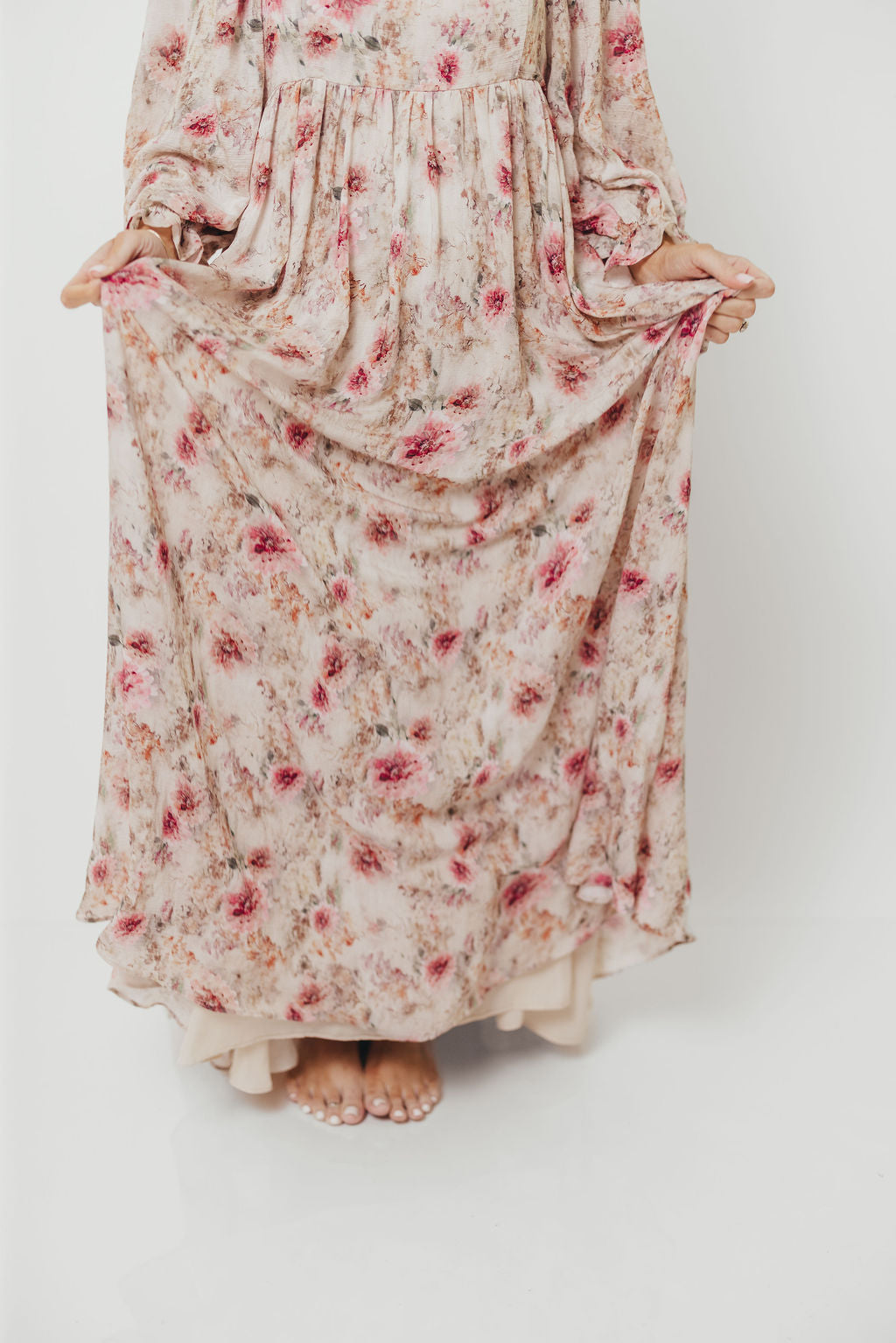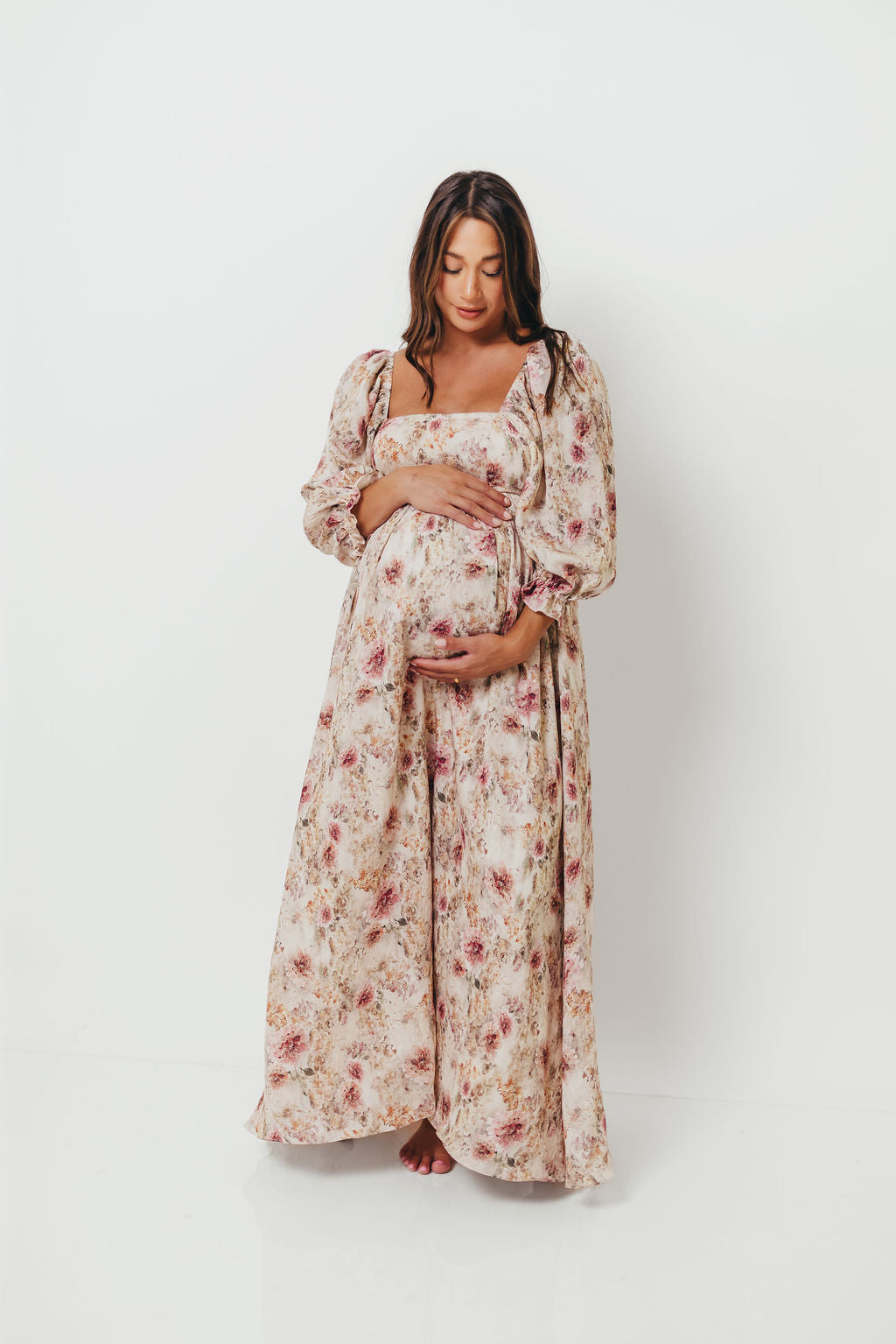 Mona Maxi Dress with Smocking in Pink/Beige Multi Floral - Bump Friendly