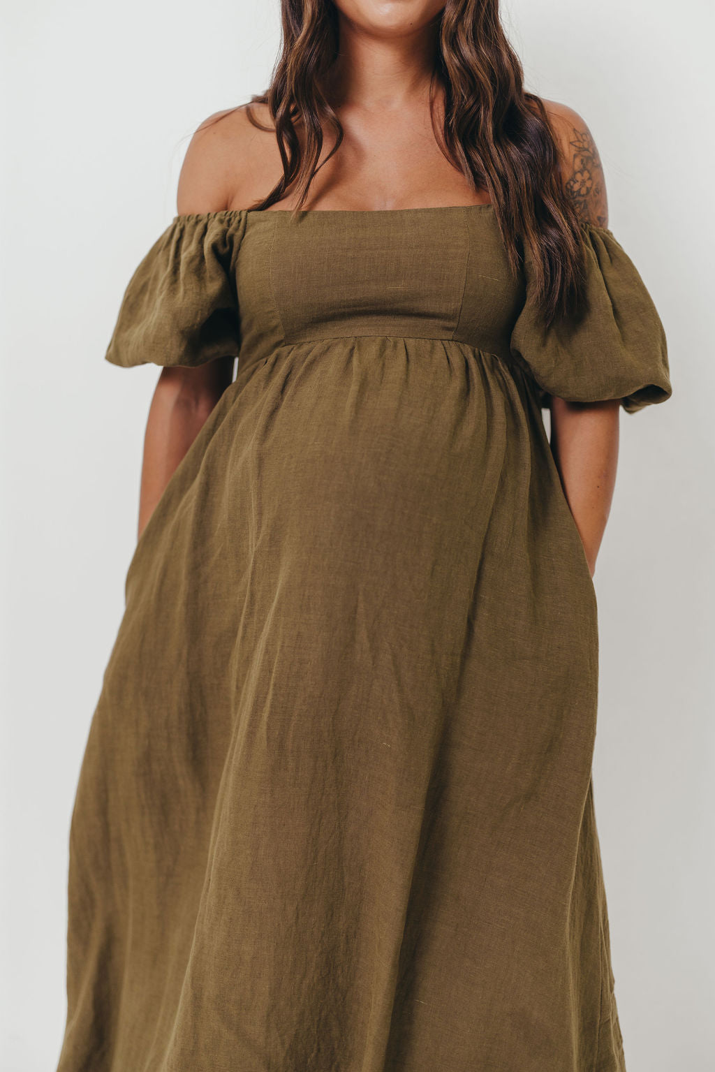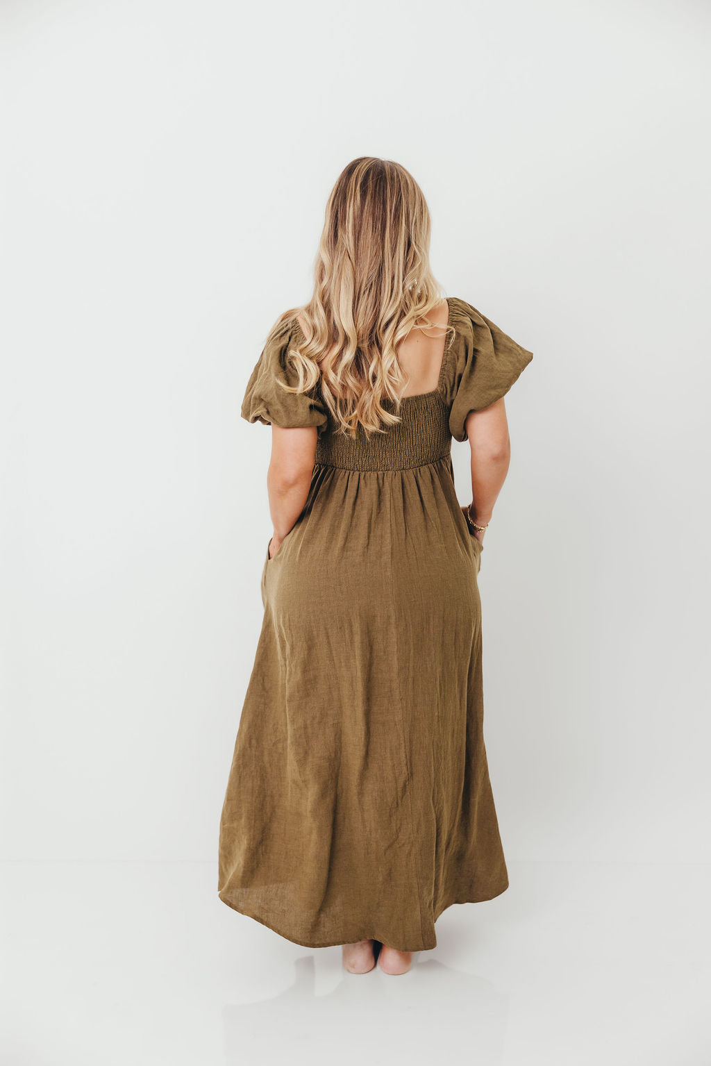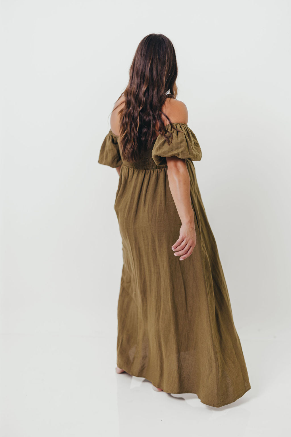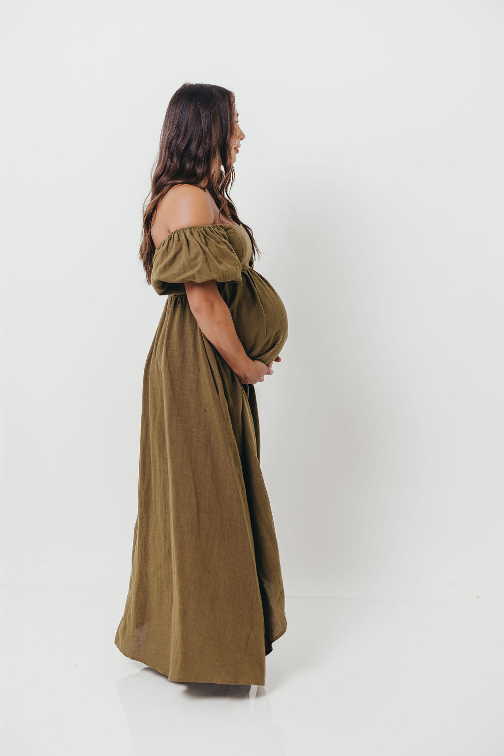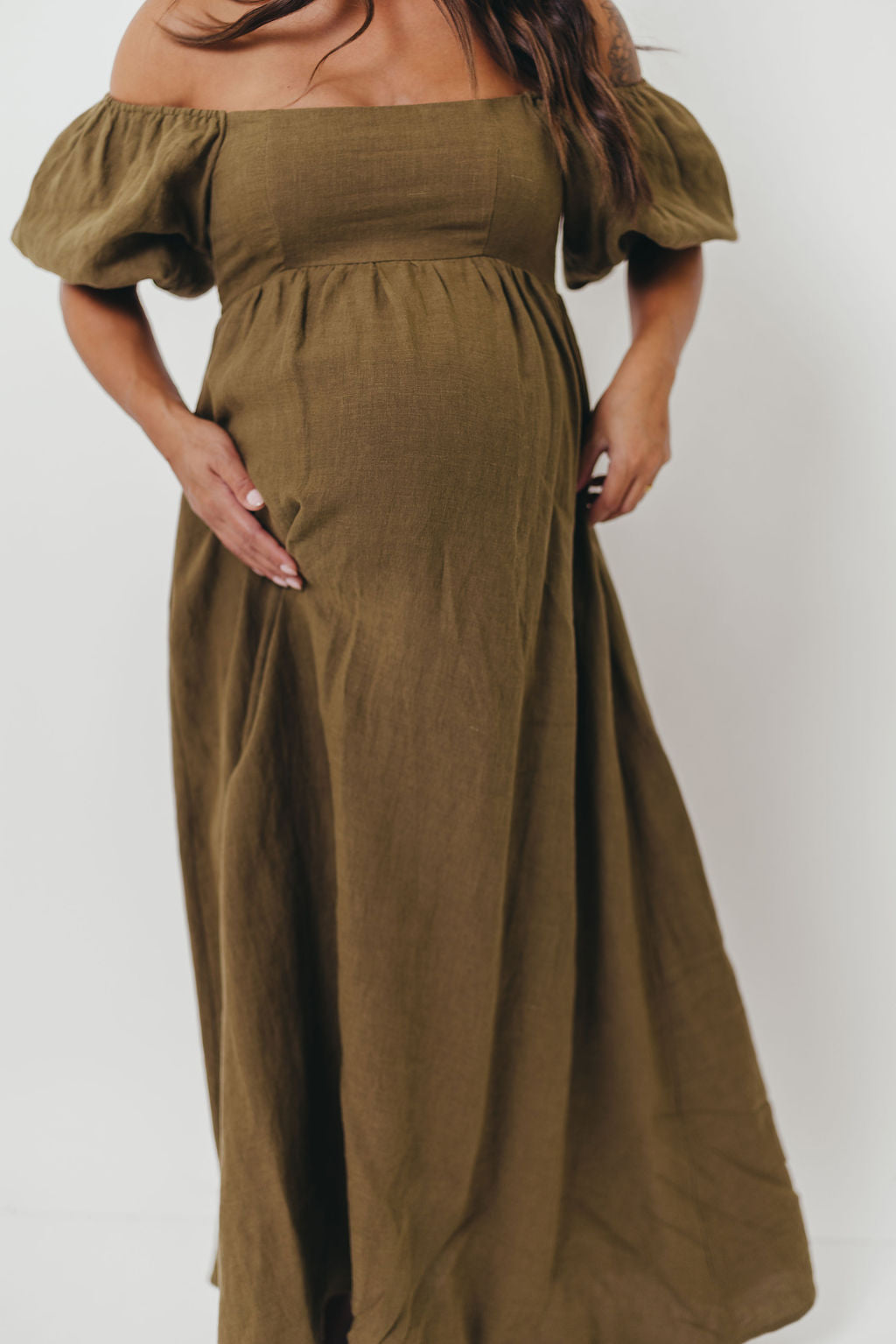 Candace Woven Linen Maxi Dress in Dark Olive - Bump Friendly