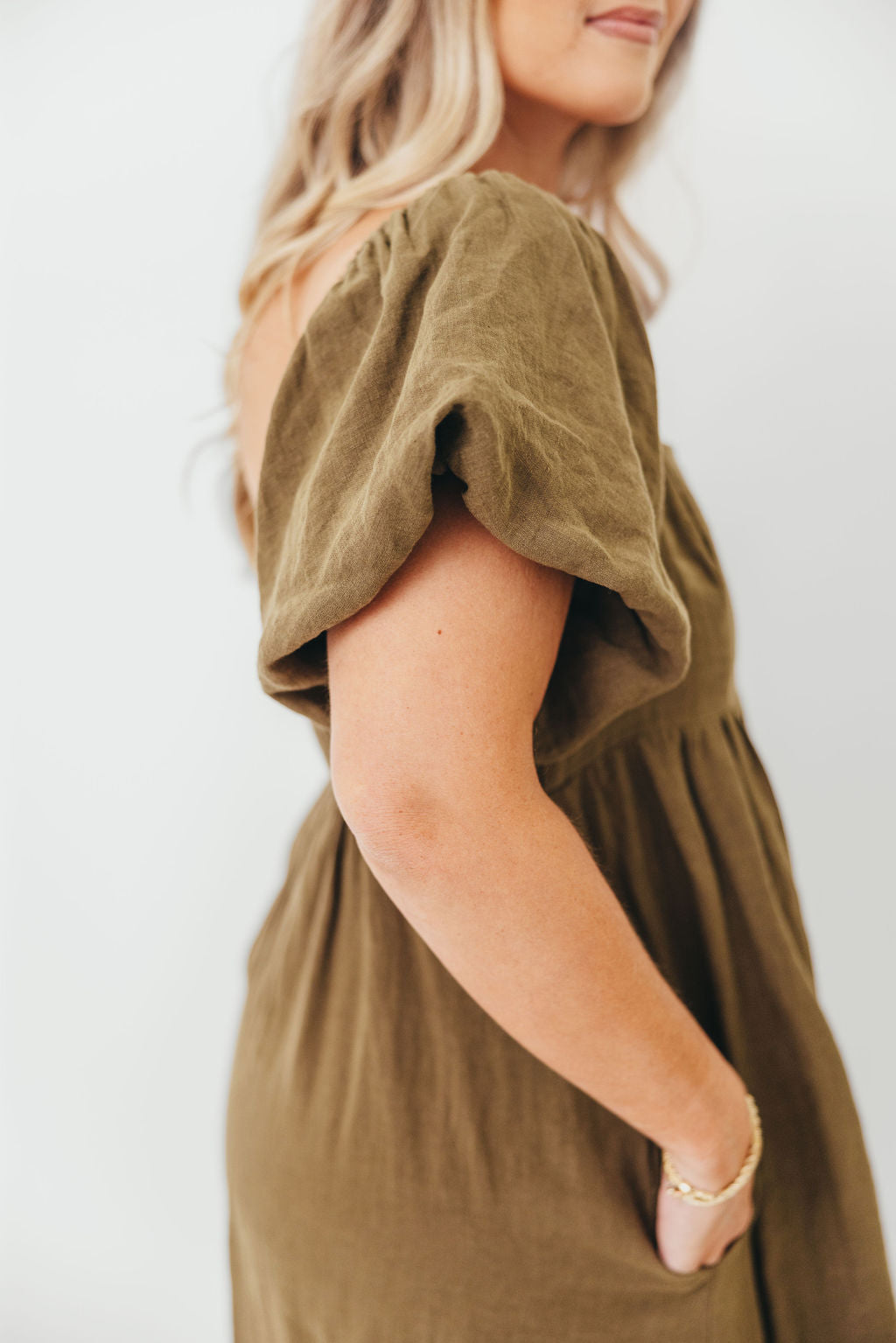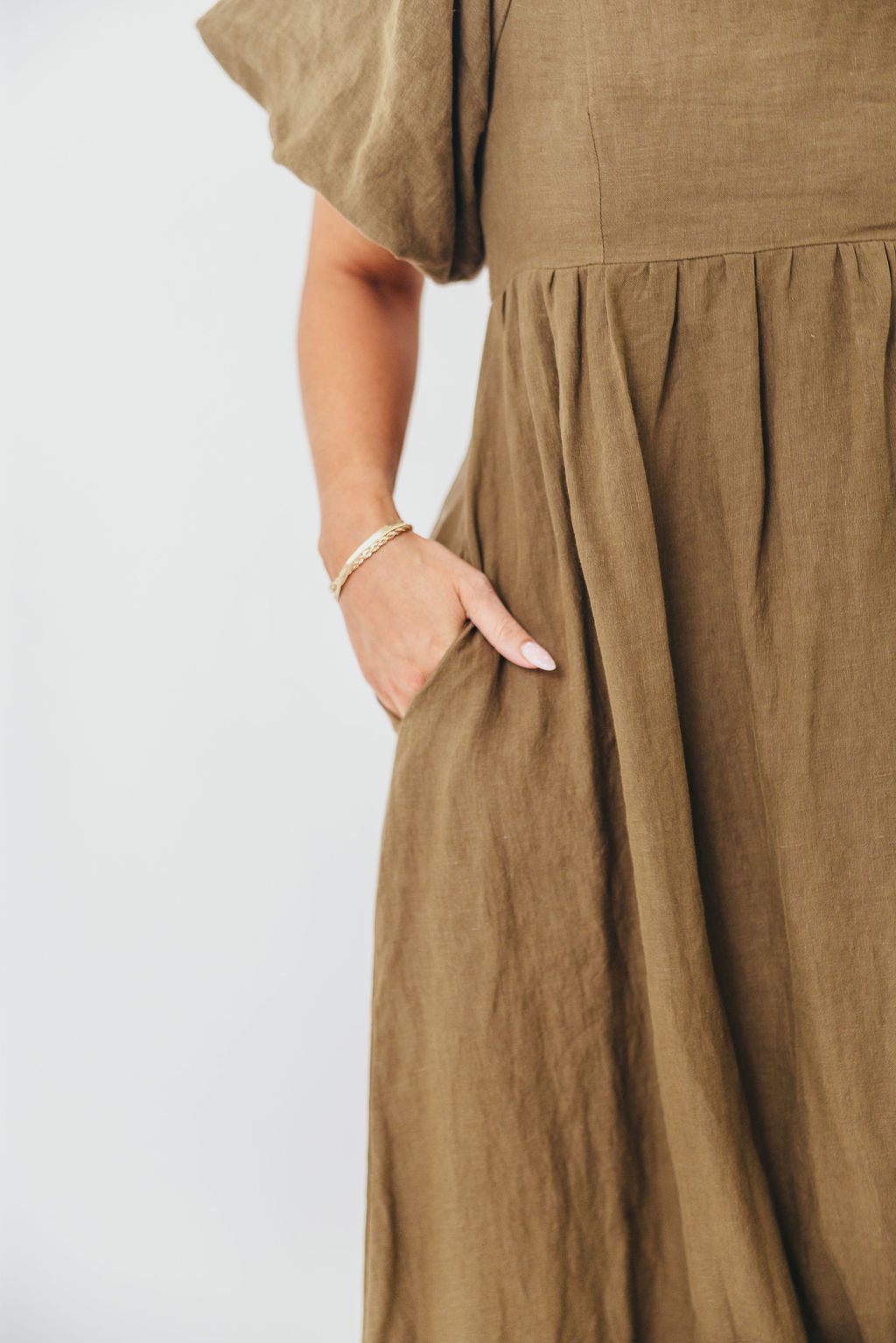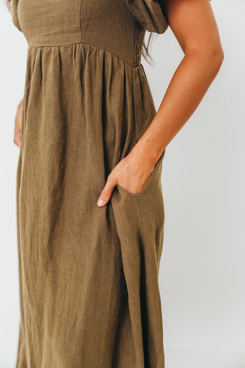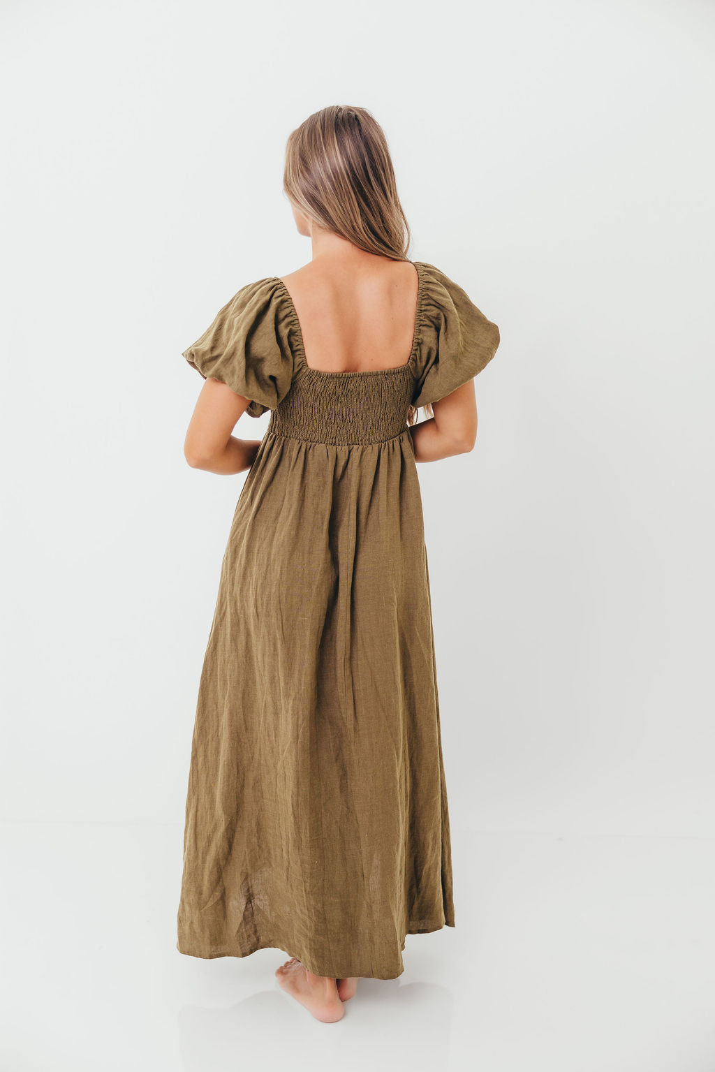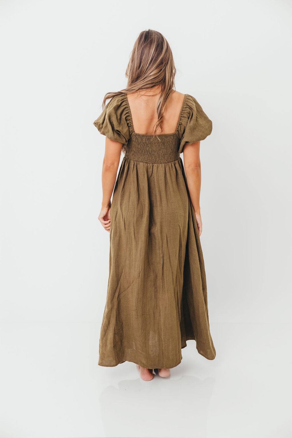 Candace Woven Linen Maxi Dress in Dark Olive - Bump Friendly