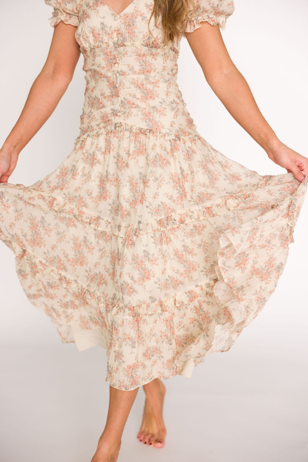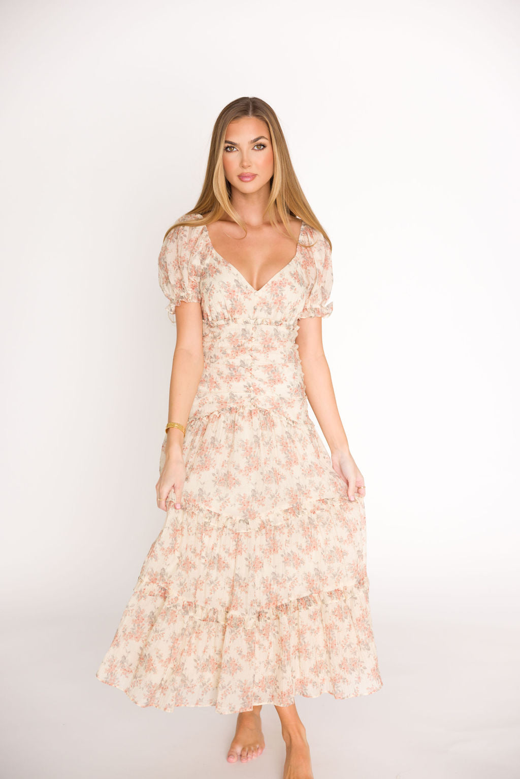 Jenna Ruffled Maxi Sundress in Cream/Multi Floral *Final-Sale*
