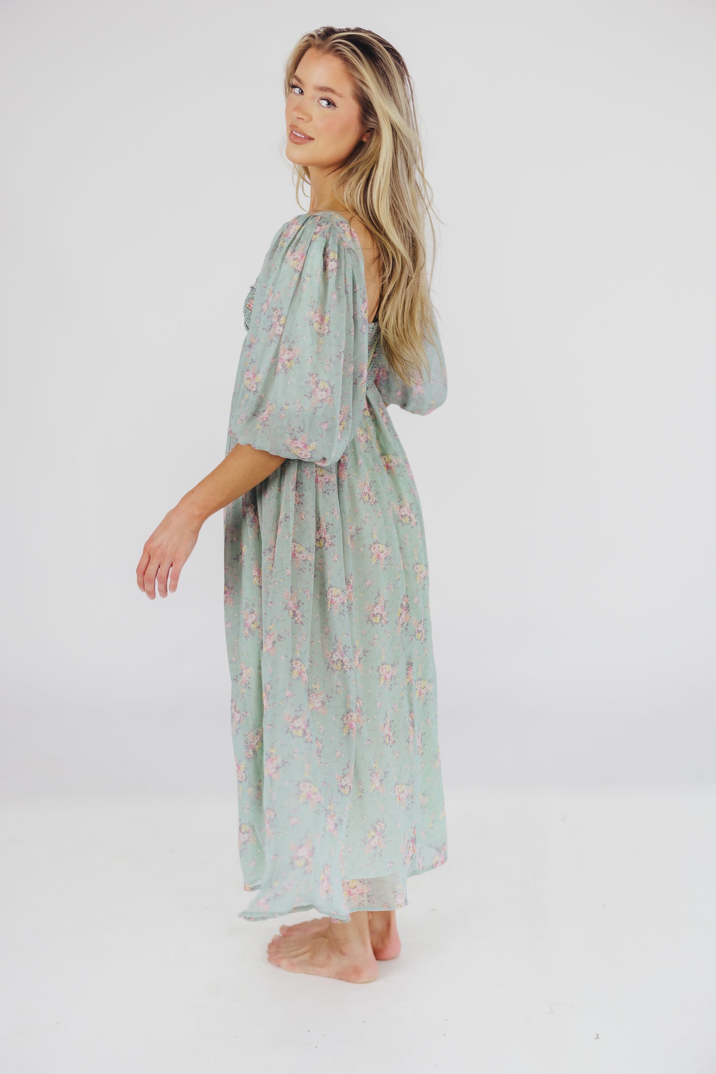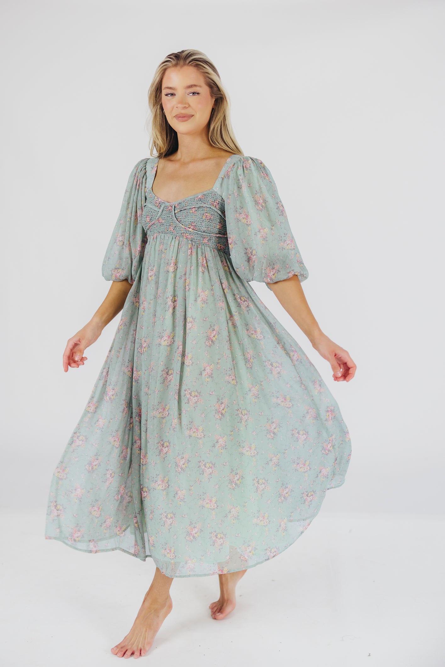 Harlow Maxi Dress in Turquoise Floral - Bump Friendly & Inclusive Sizing (S-3XL)