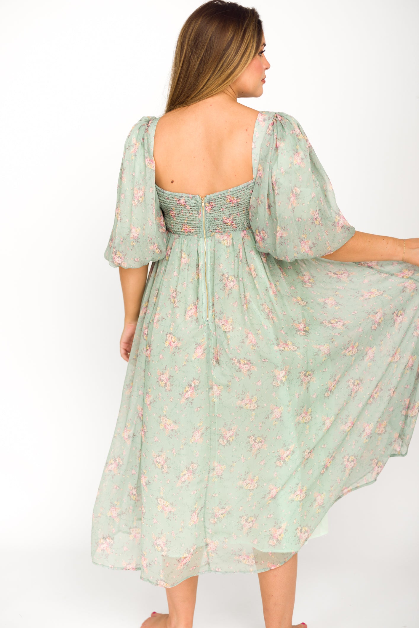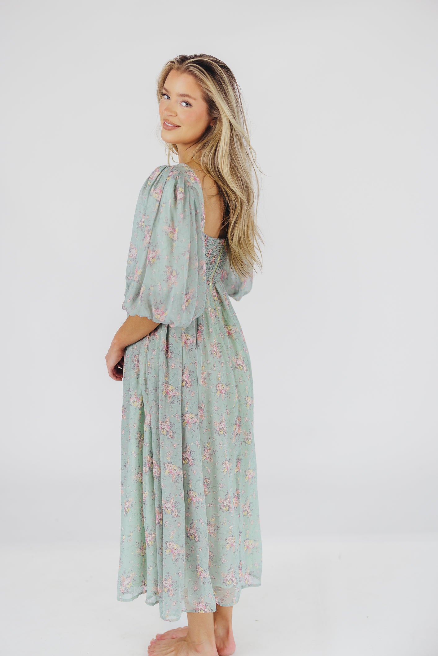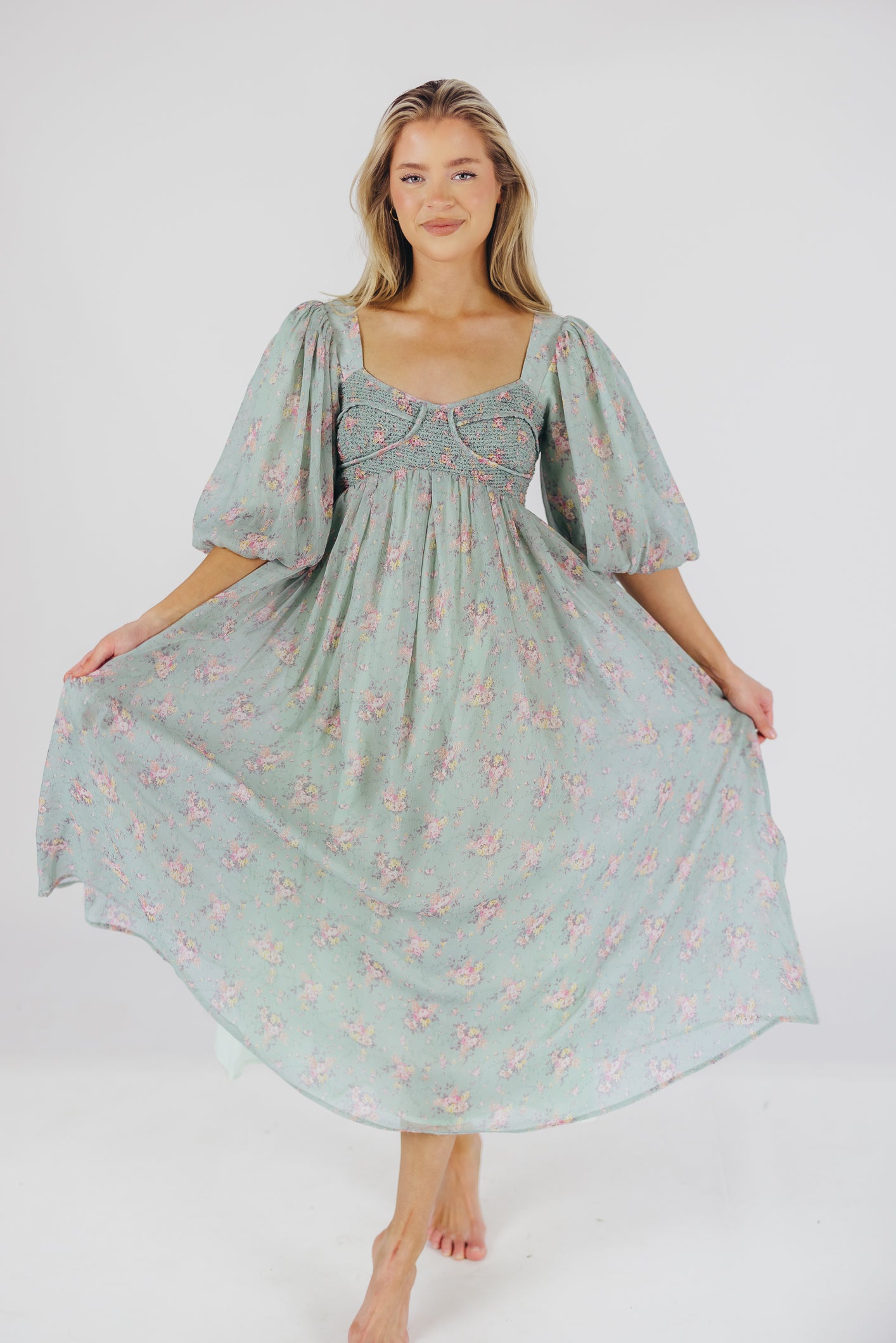 This gorgeous dress is a *vibe* and we are here for it. If you think the Harlow is stunning in photos, wait till you see it in person - this dress will make a statement wherever you go! It features incredible puffed sleeves, a bustier-style structured bodice, and a voluminous skirt. This floral gem is extra-luxe, and 100% the choice when you're looking to stand out from the crowd. Pair it with a glam set of pumps for a night at the symphony, or with heeled sandals for a baby shower - just prepare yourself for the admiring glances!