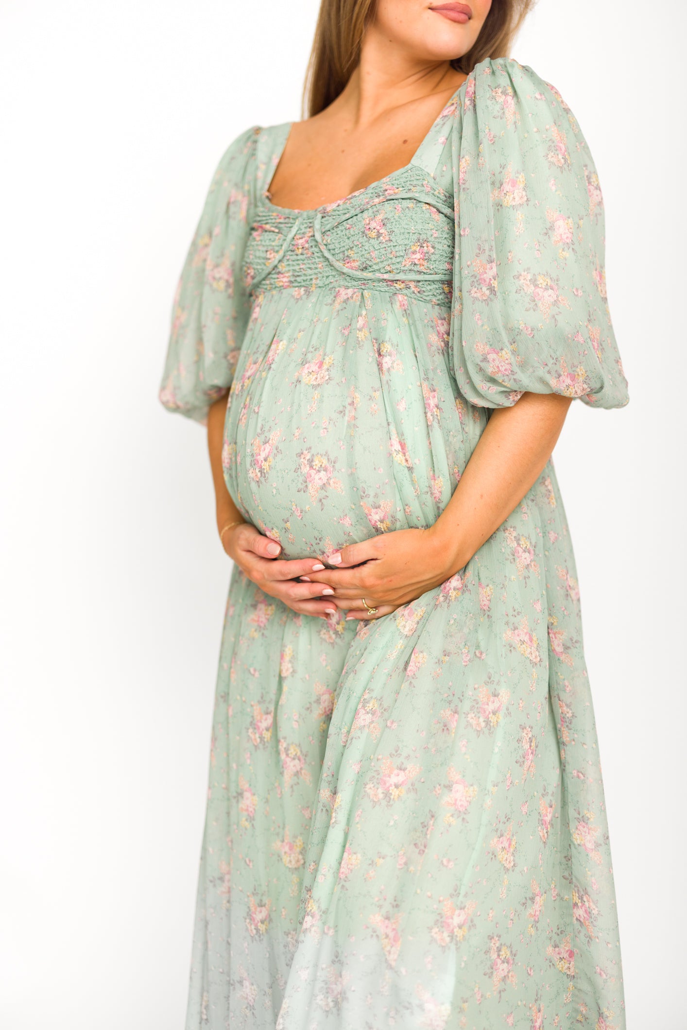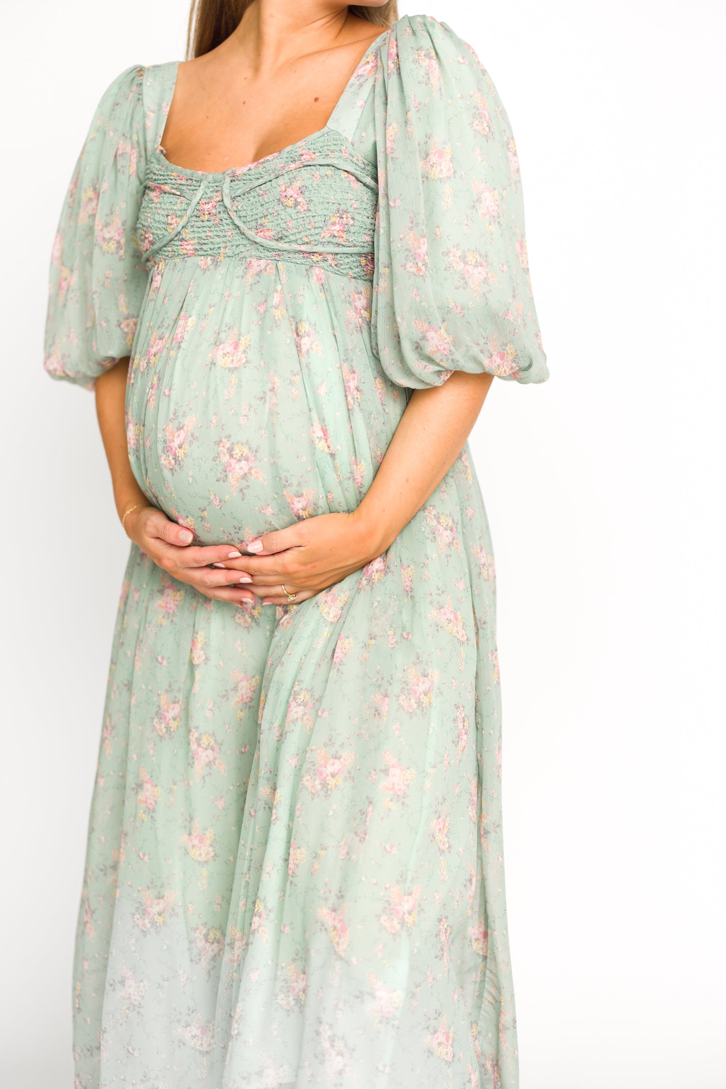 FIT: Please note that the bodice runs very true to size, but the smocked back panel does provide additional stretch. Some wearers with a C-cup and larger may find the bodice uncomfortable due to the structured bra cups. Please refer to the size chart and consider your chest size before purchasing. For maternity: this dress will accommodate most baby bumps in your true size.
