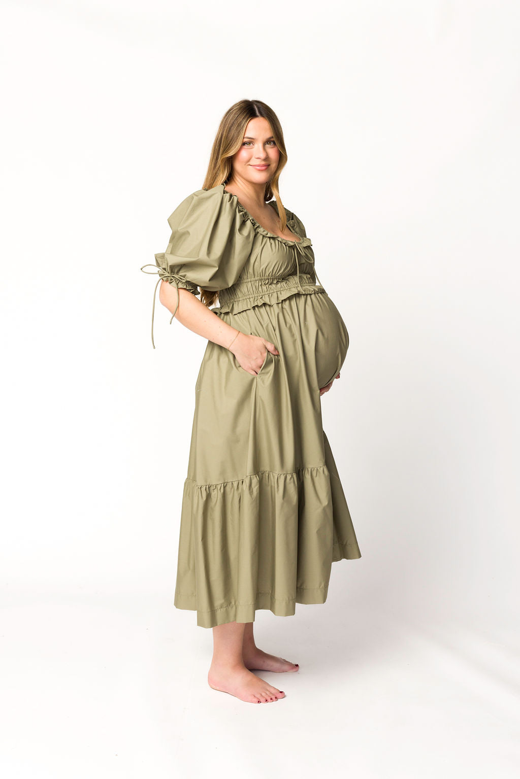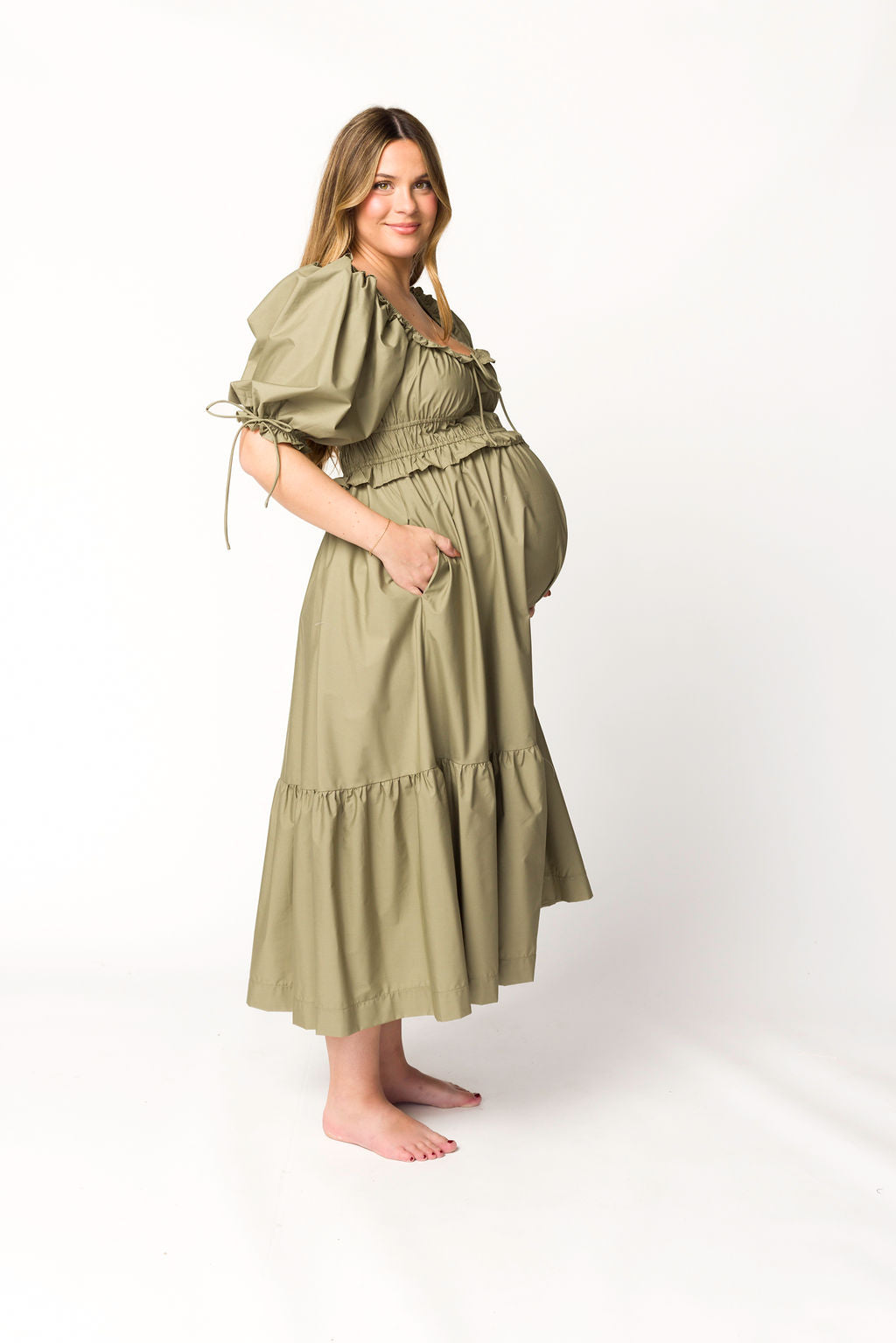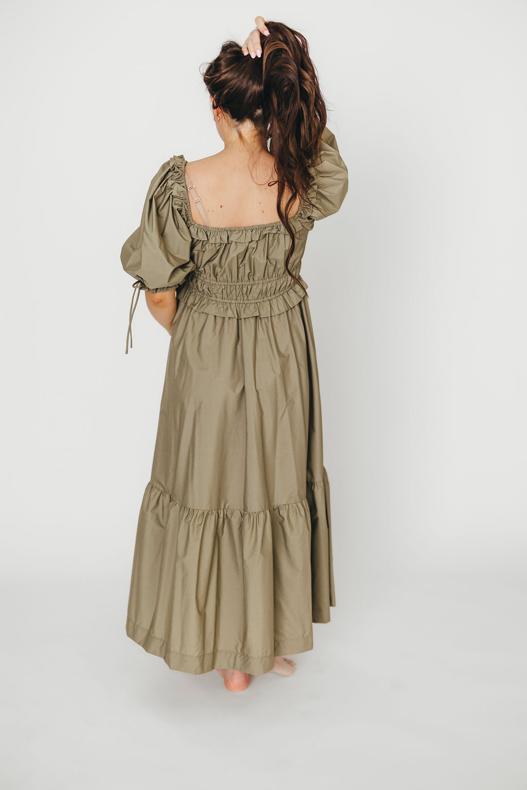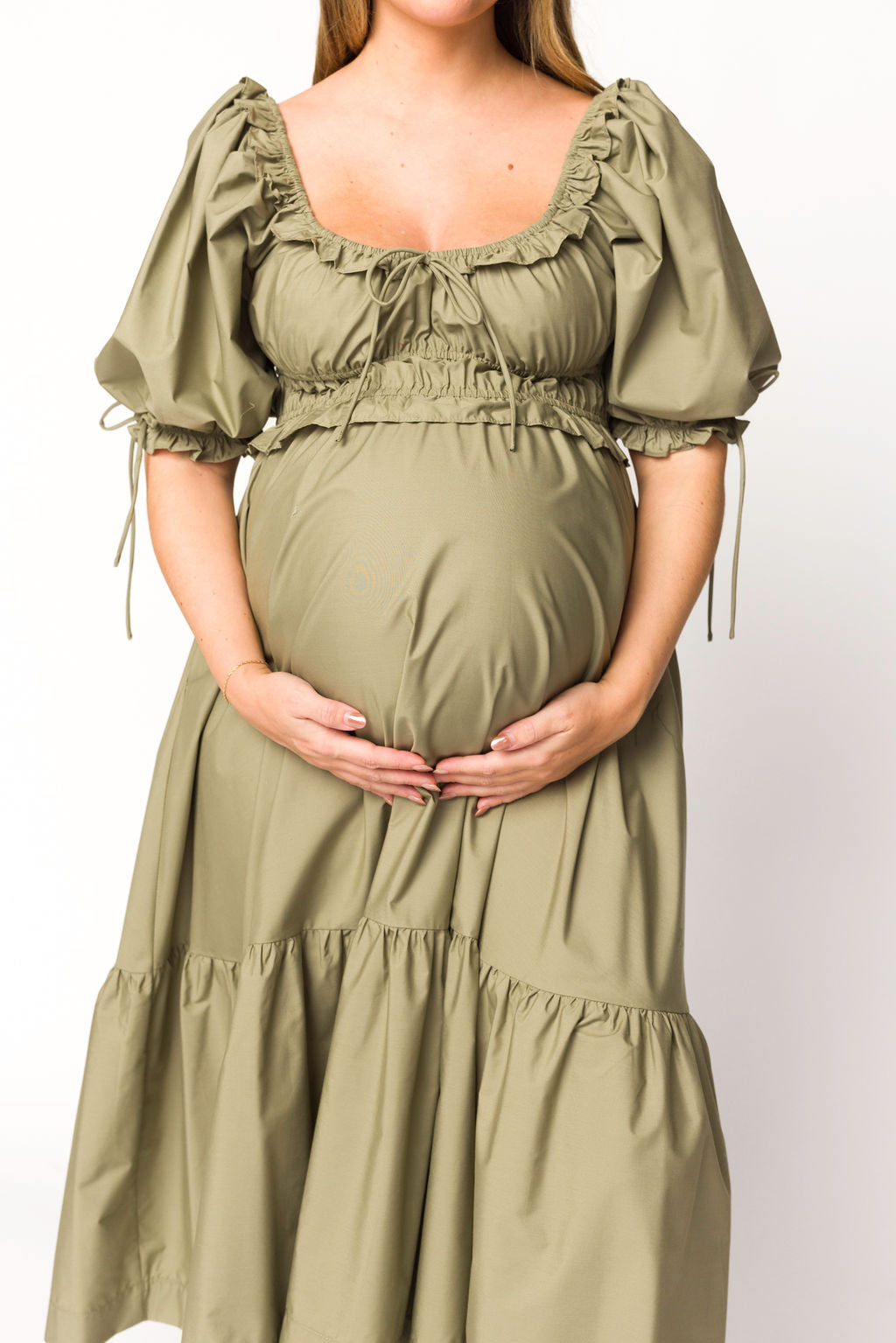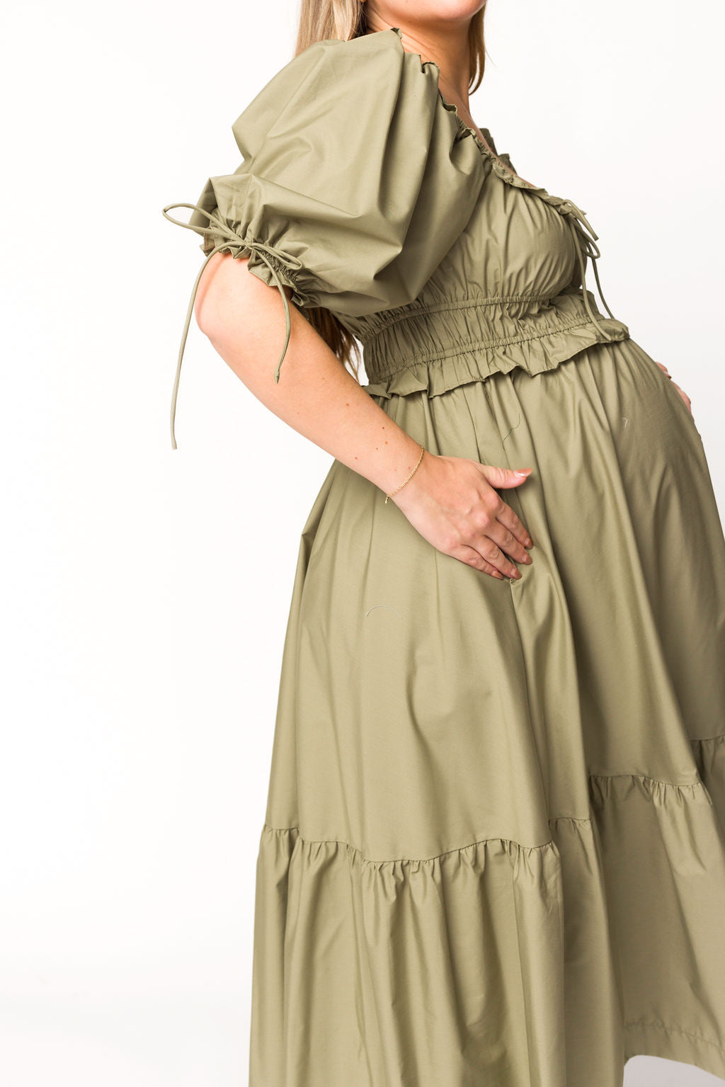 Crissy Ruched Midi Dress in Dusty Olive - Bump Friendly *Final Sale*