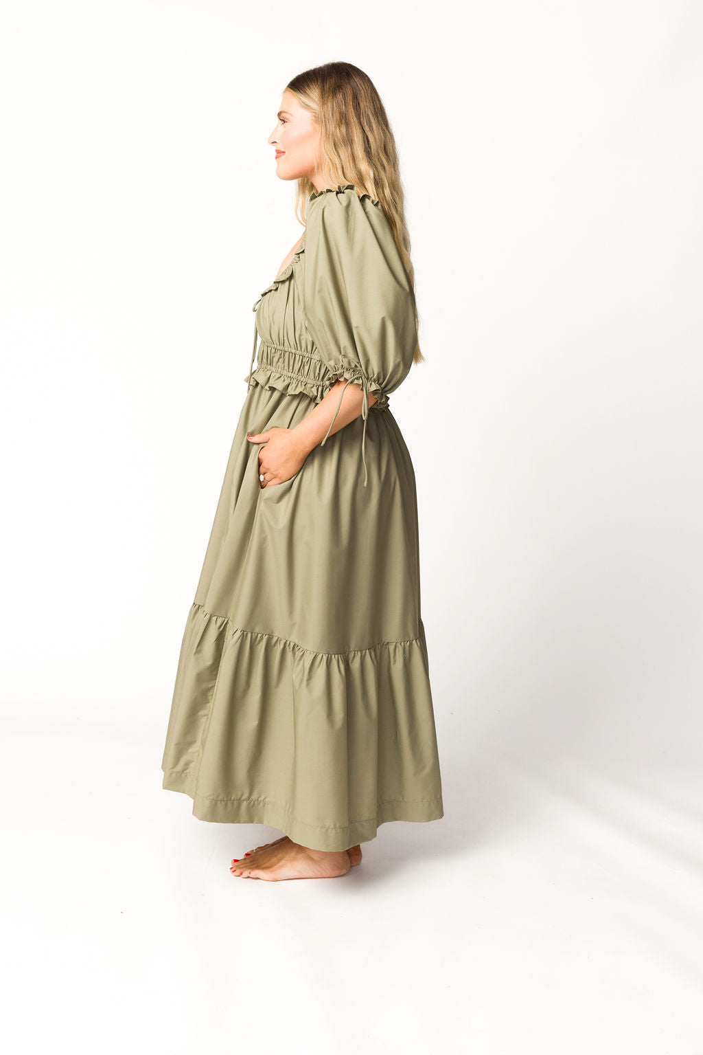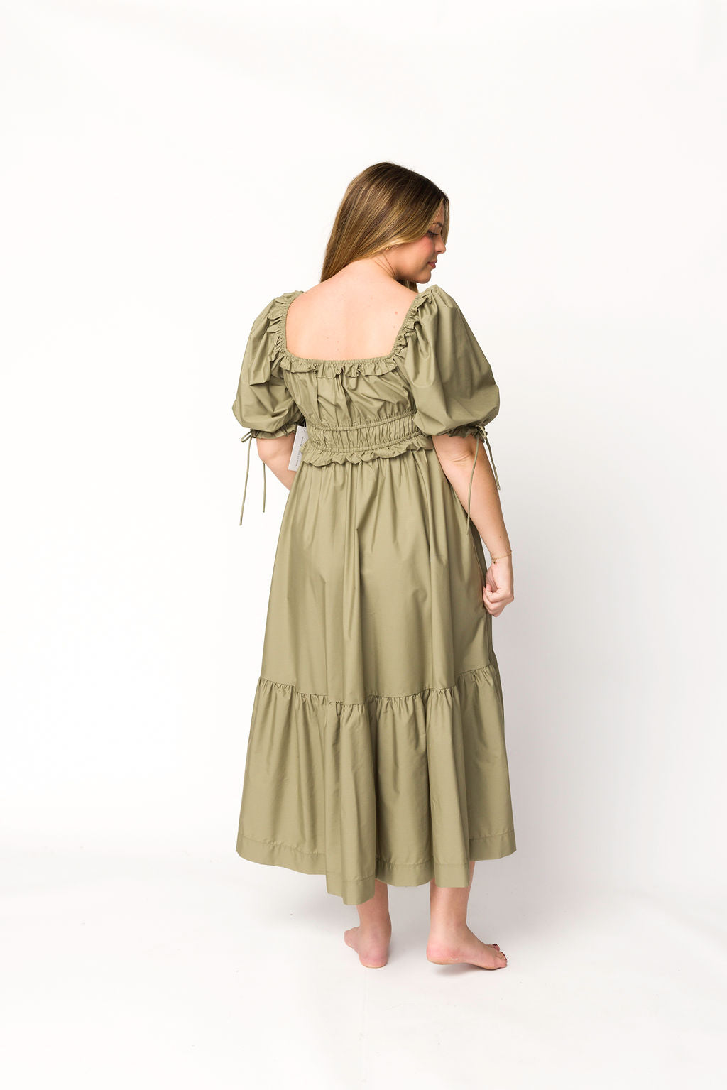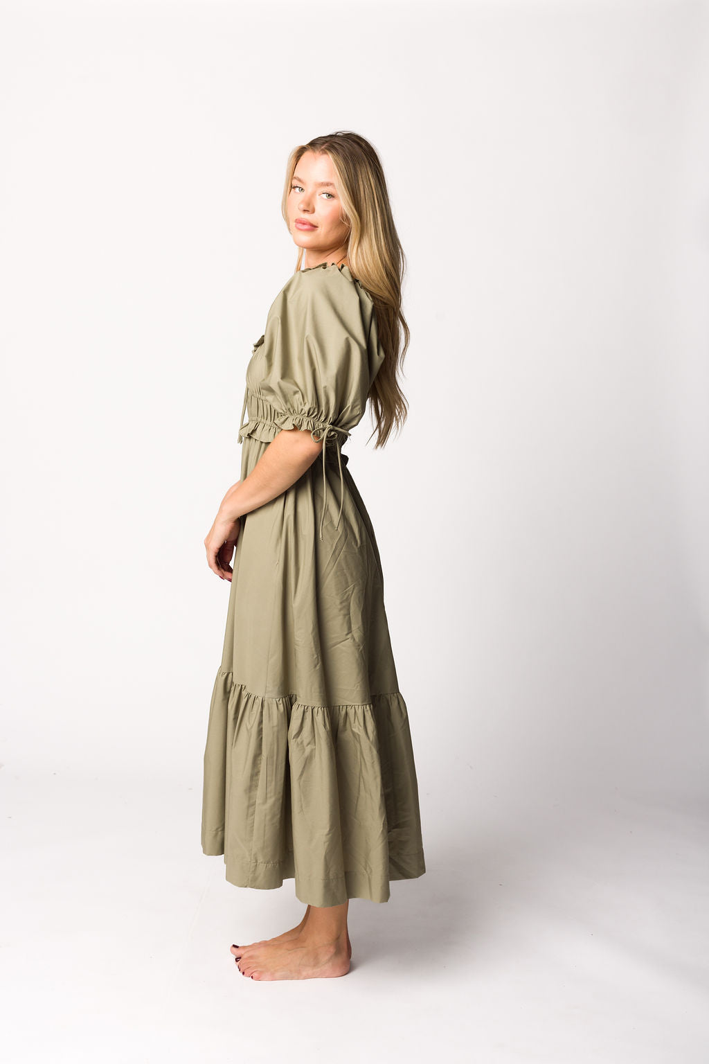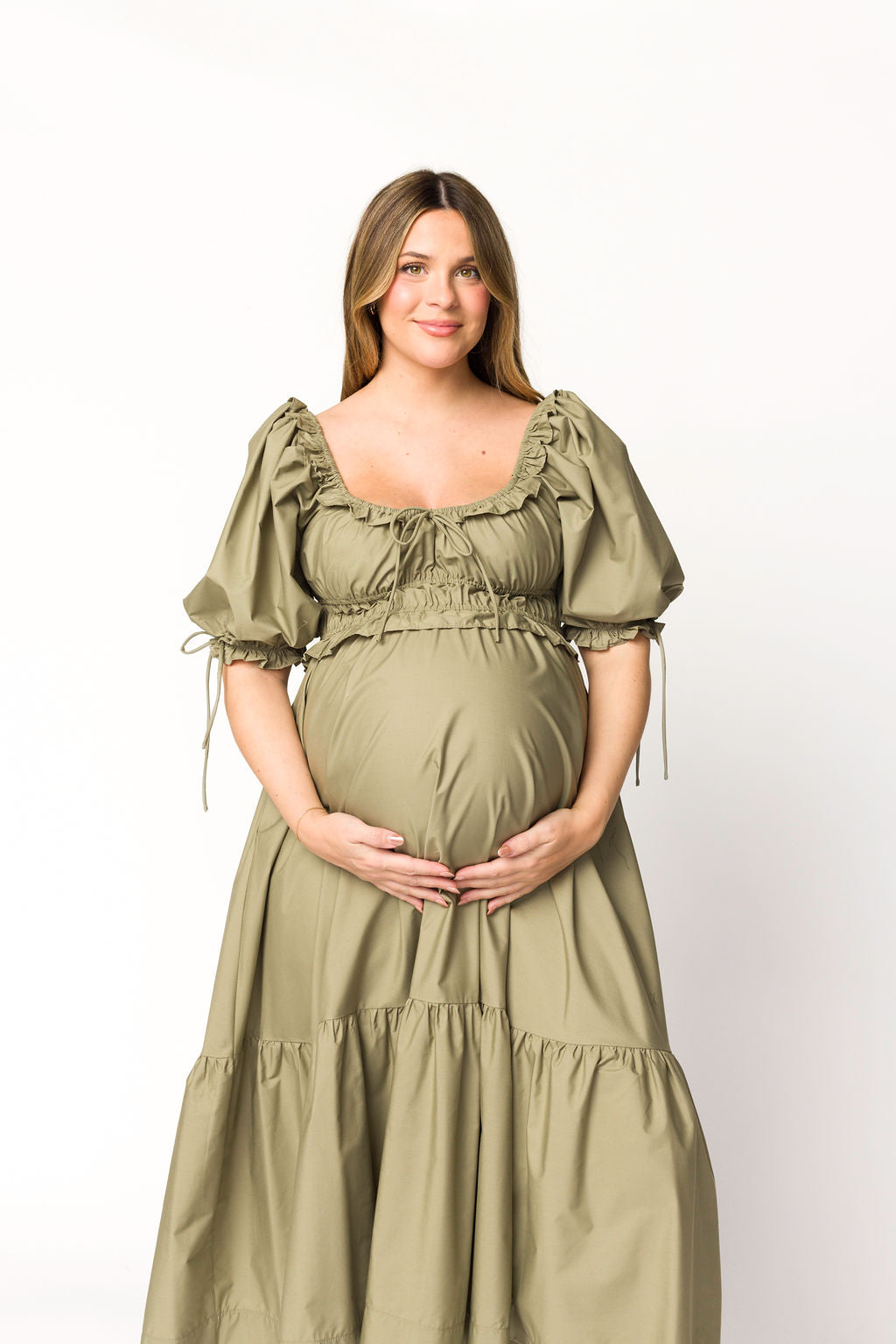Crissy Ruched Midi Dress in Dusty Olive - Bump Friendly *Final Sale*
