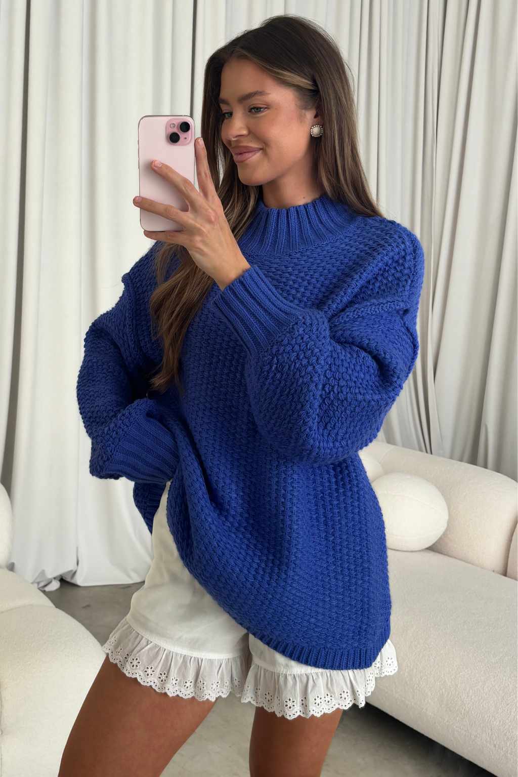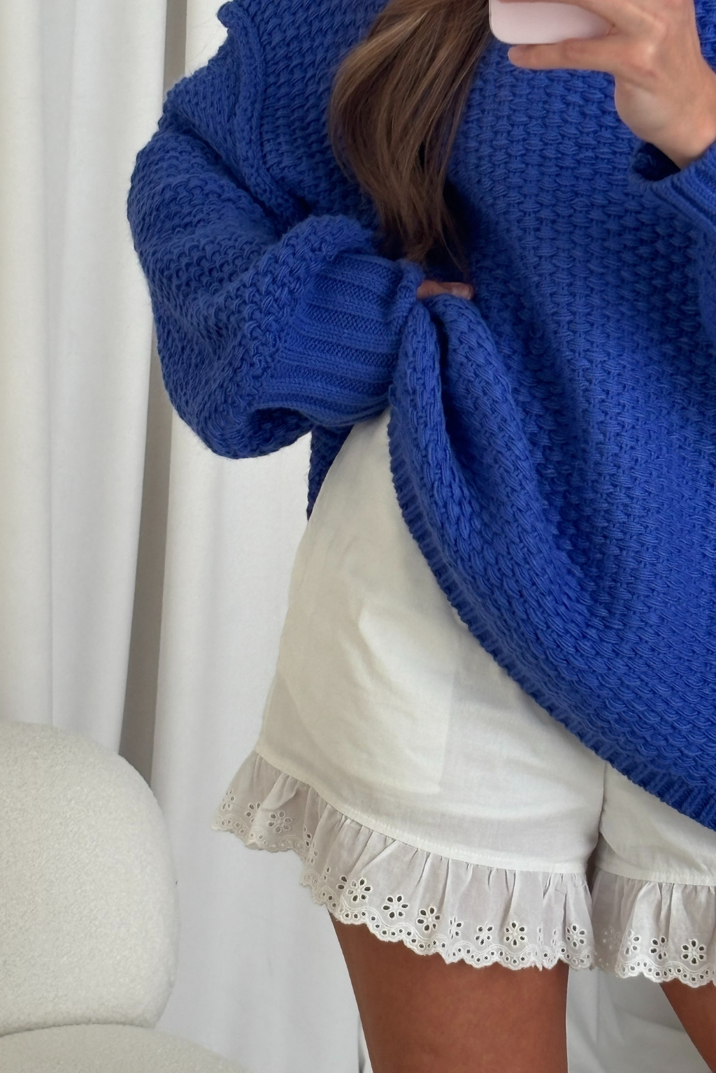 Hillie Crochet Knit Sweater in Retro Blue *Final-Sale*