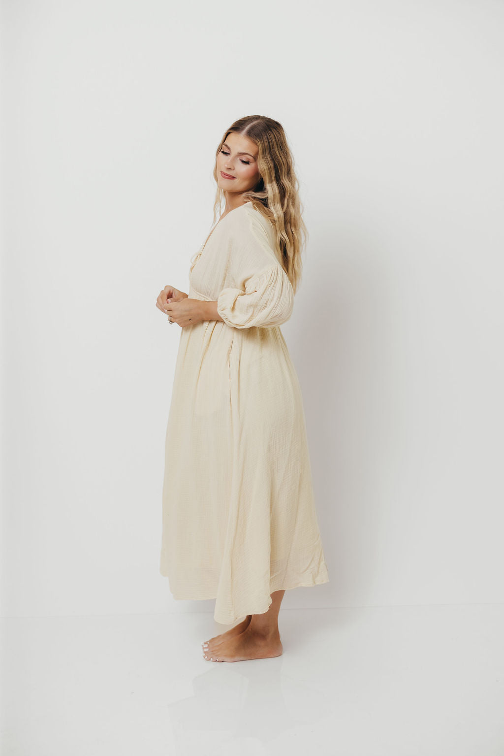 Hunter 100% Cotton Gauze Midi Dress in Butter - Bump Friendly *Final-Sale*