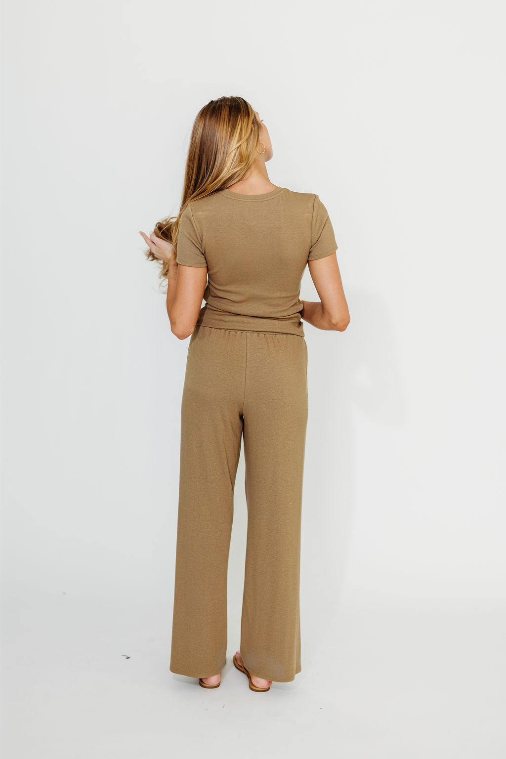 The Muse Knit Ribbed Short Sleeve Top & Pants Set in Mocha *Final-Sale*