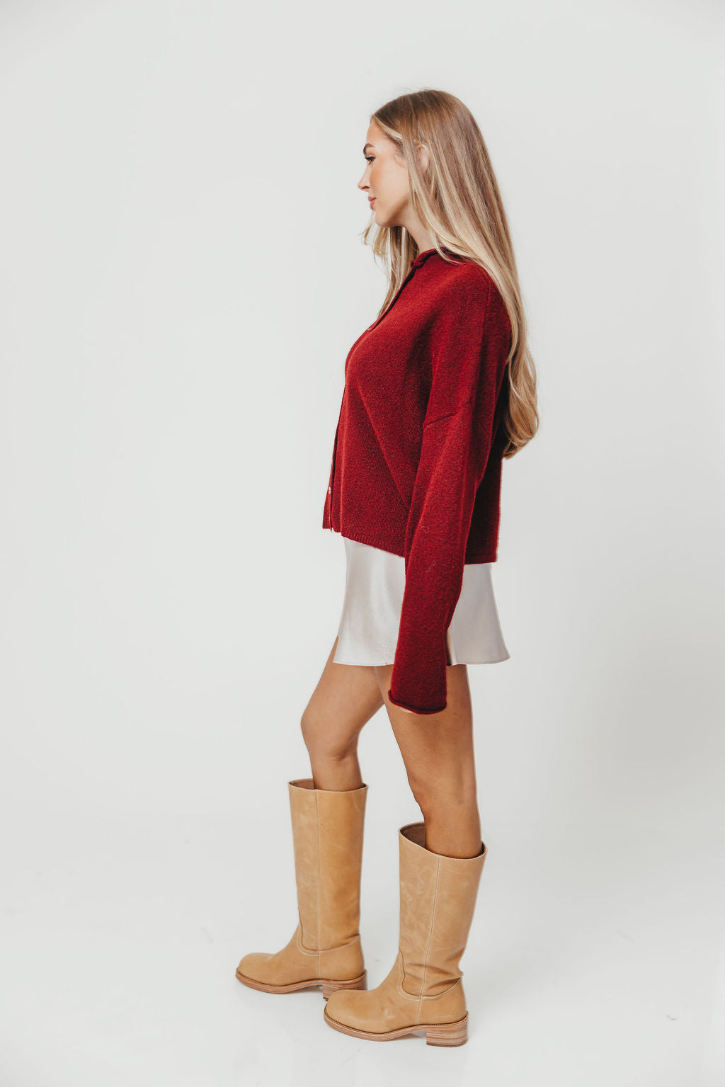 GARMENT DETAILS: Soft and feminine cardigan with long sleeves and rolled hem. Features dainty button front closure.