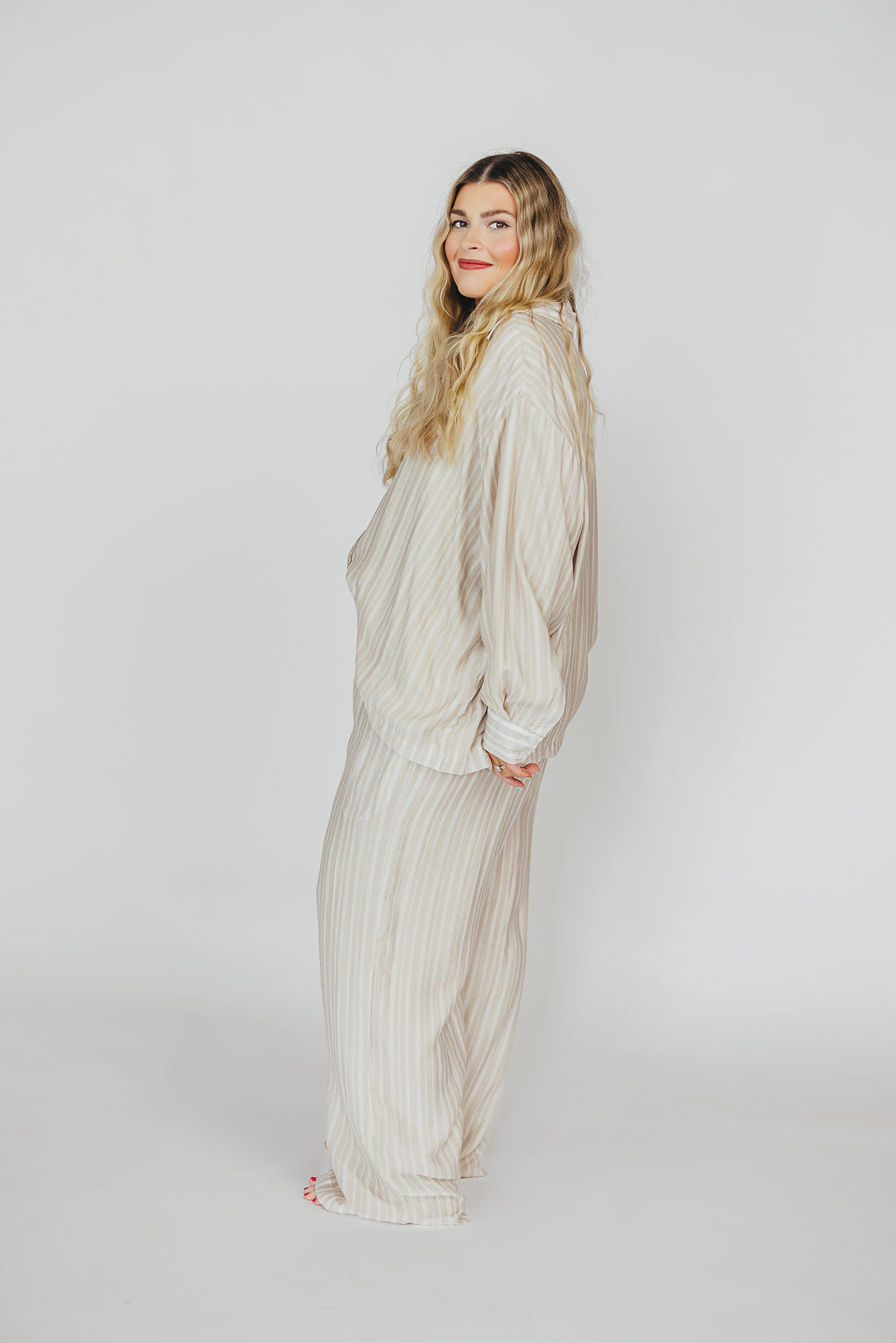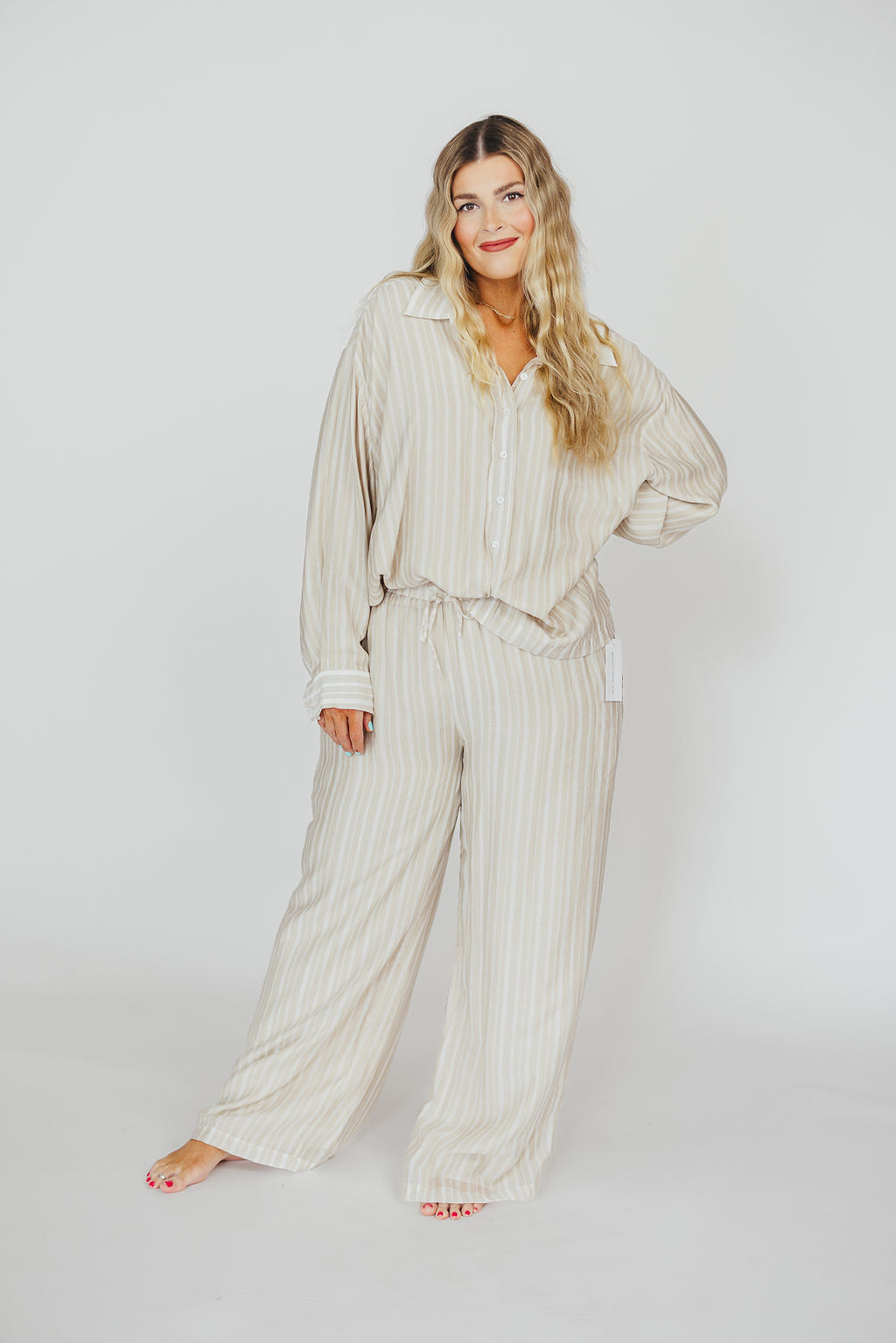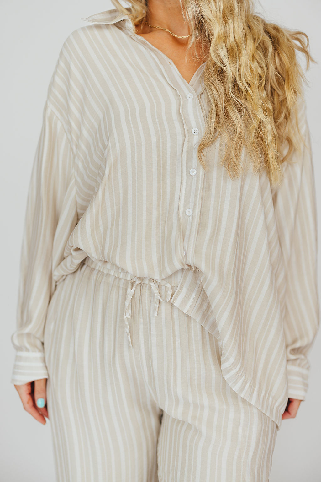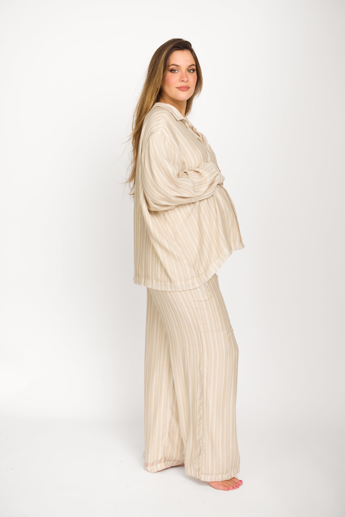 Sloane Striped Button-Down Shirt and Pants Set in Natural - Nursing Friendly
