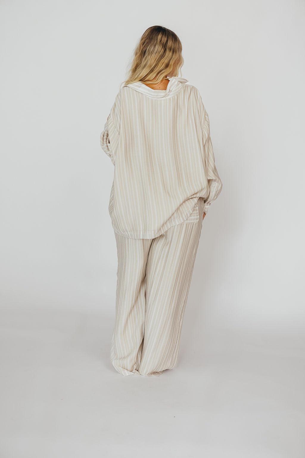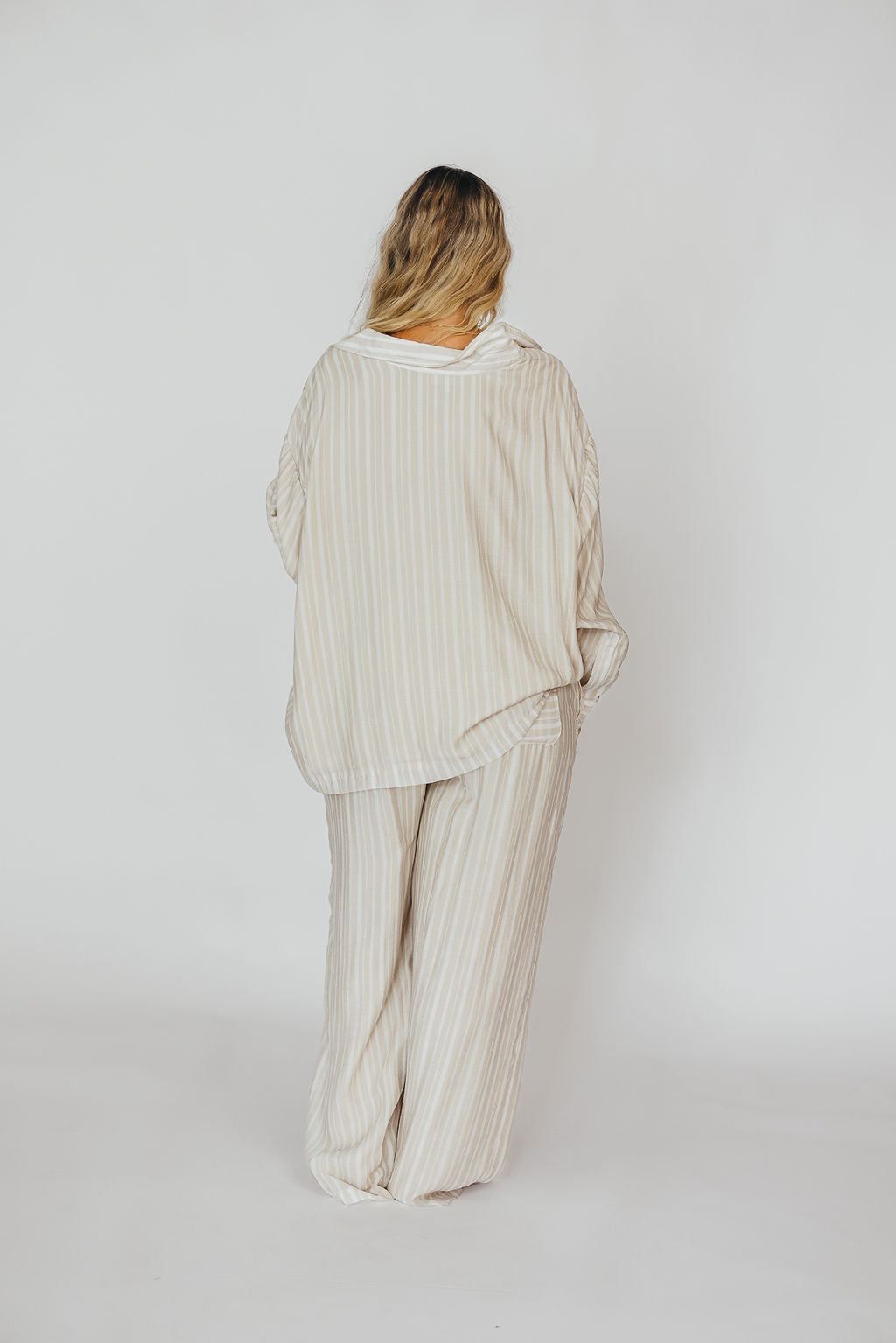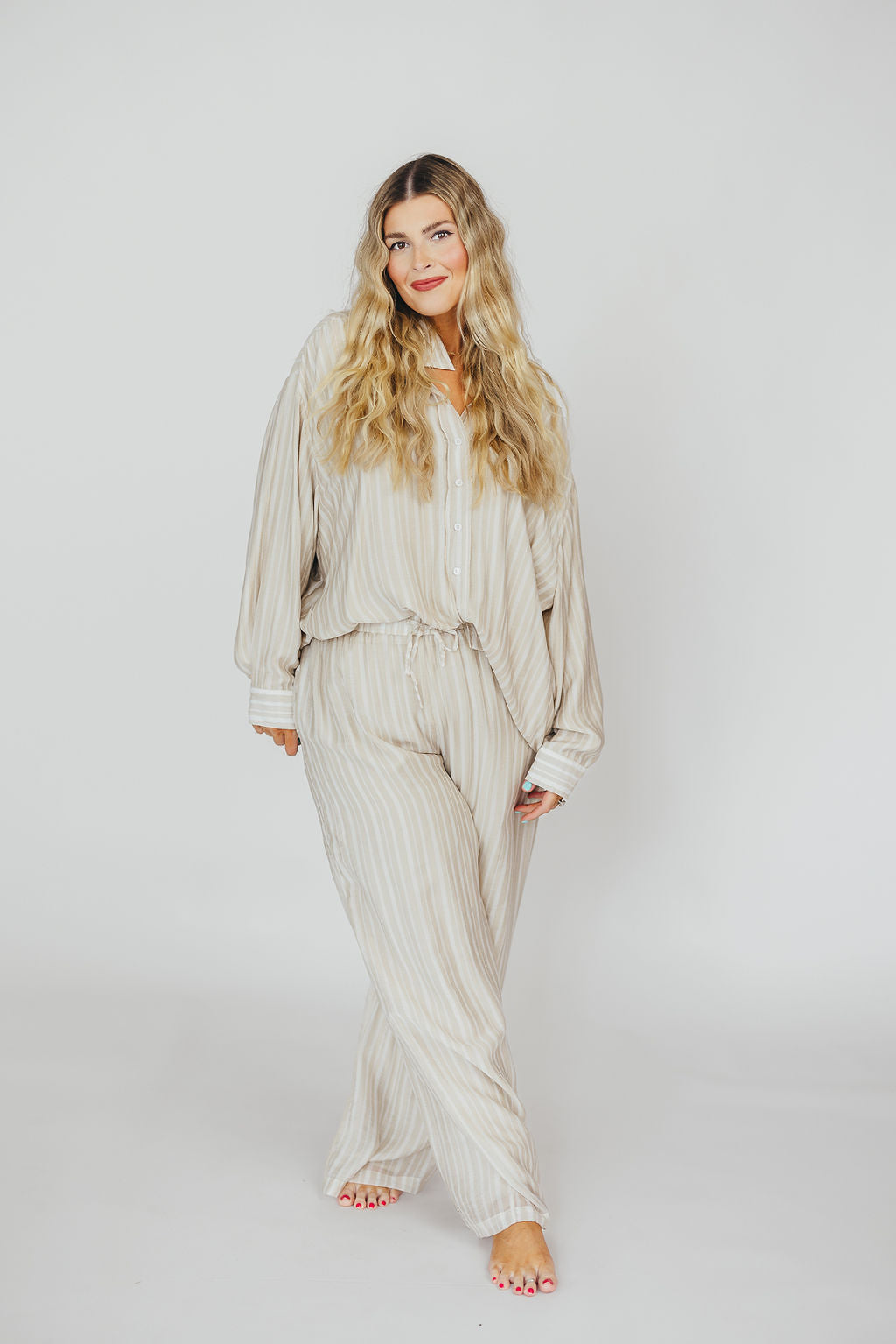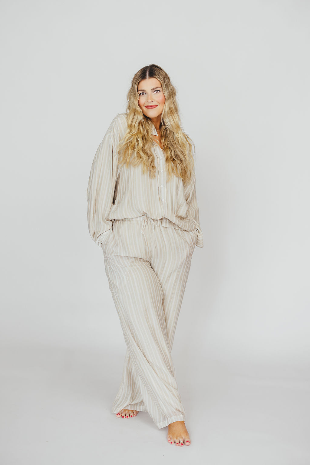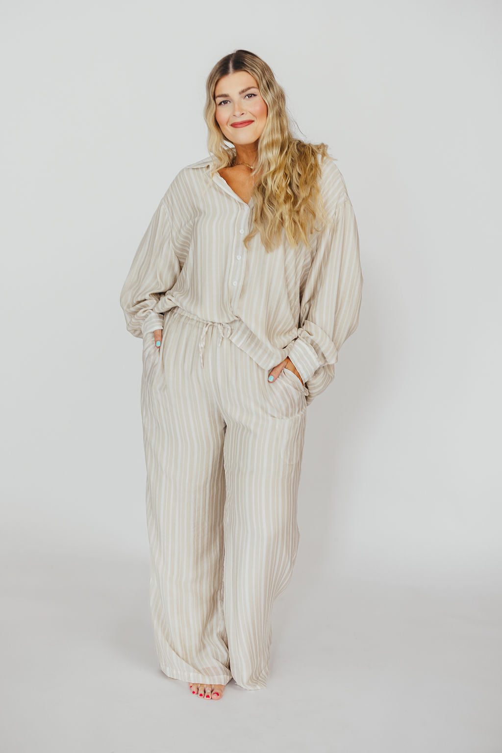 Sloane Striped Button-Down Shirt and Pants Set in Natural - Nursing Friendly
