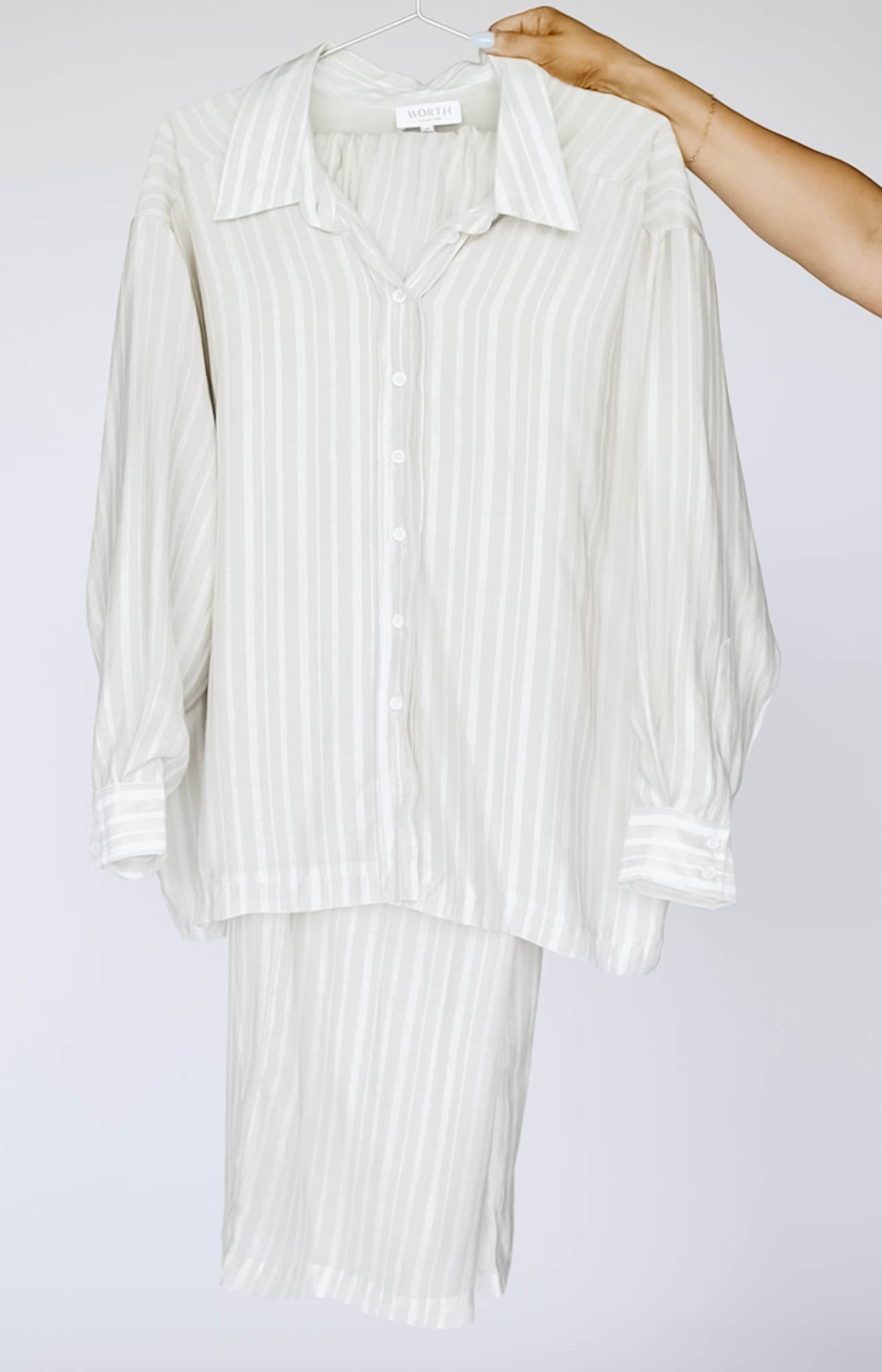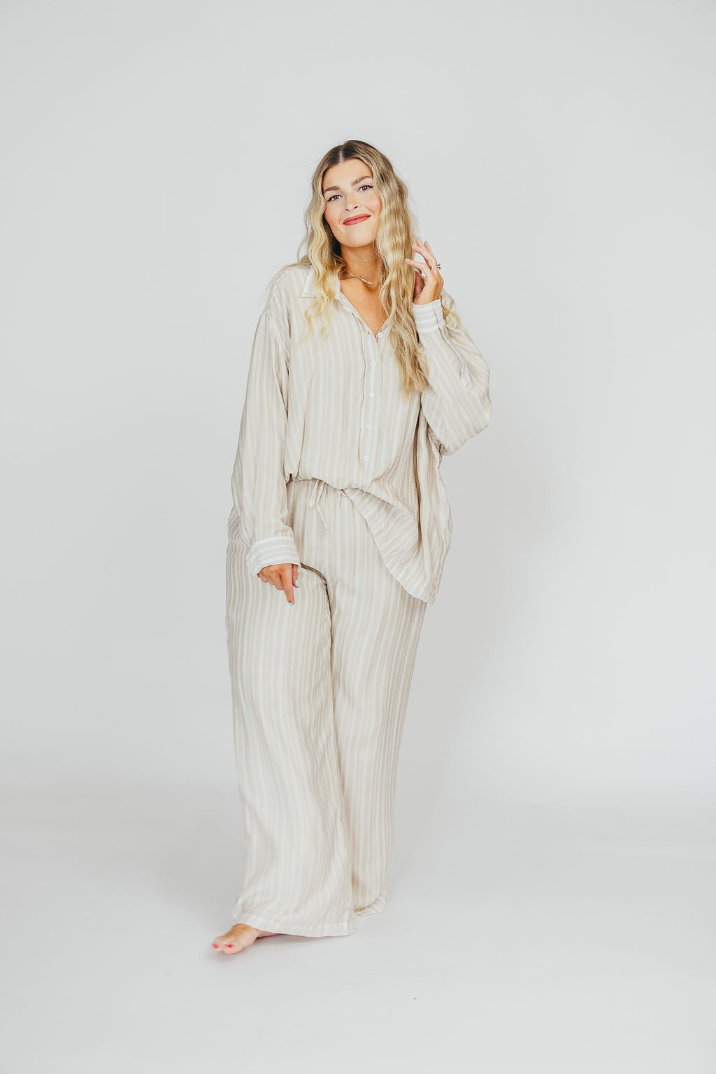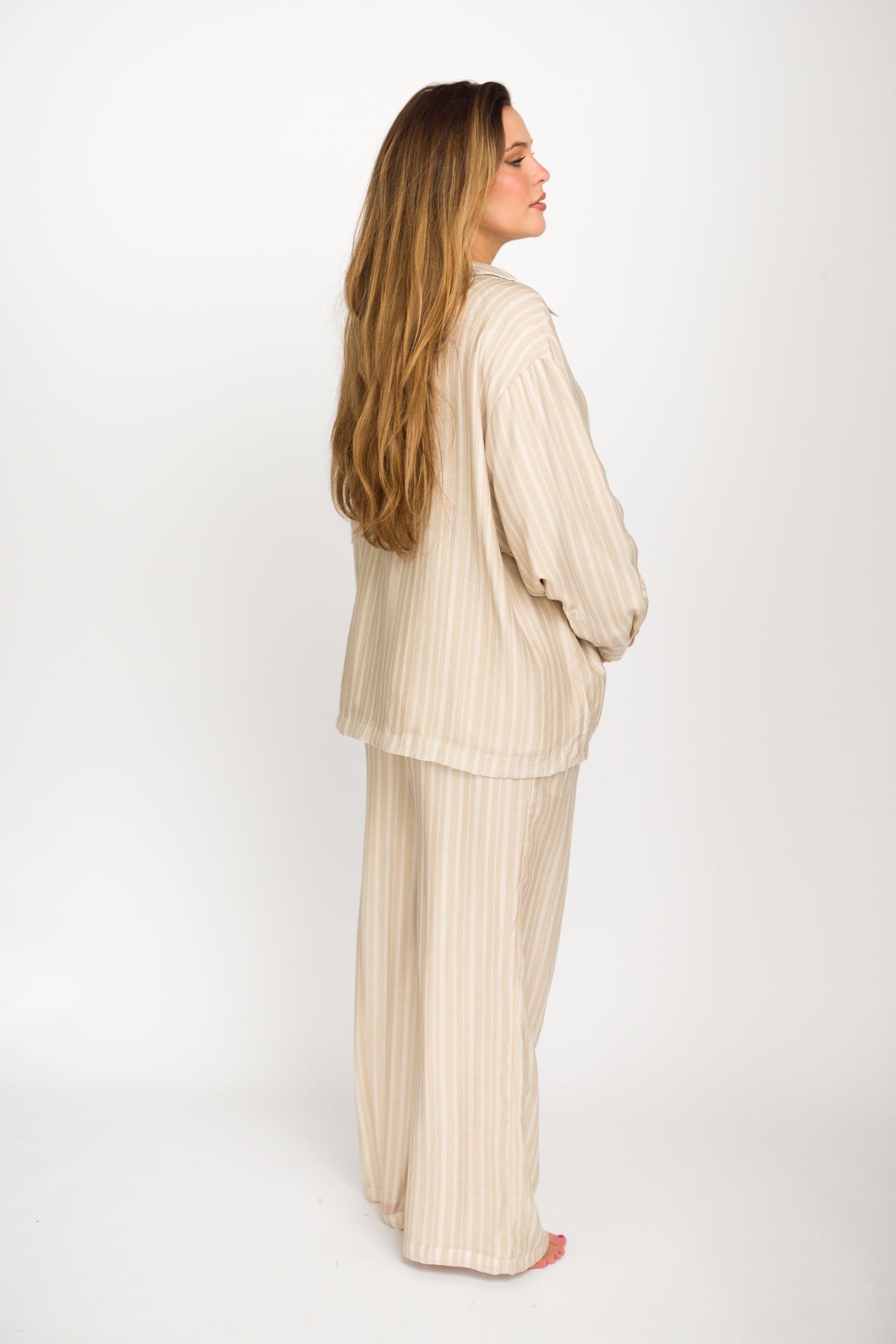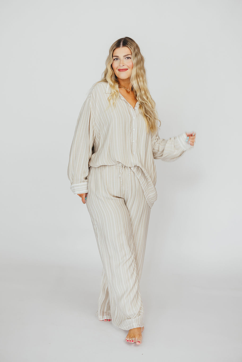 Sloane Striped Button-Down Shirt and Pants Set in Natural - Nursing Friendly