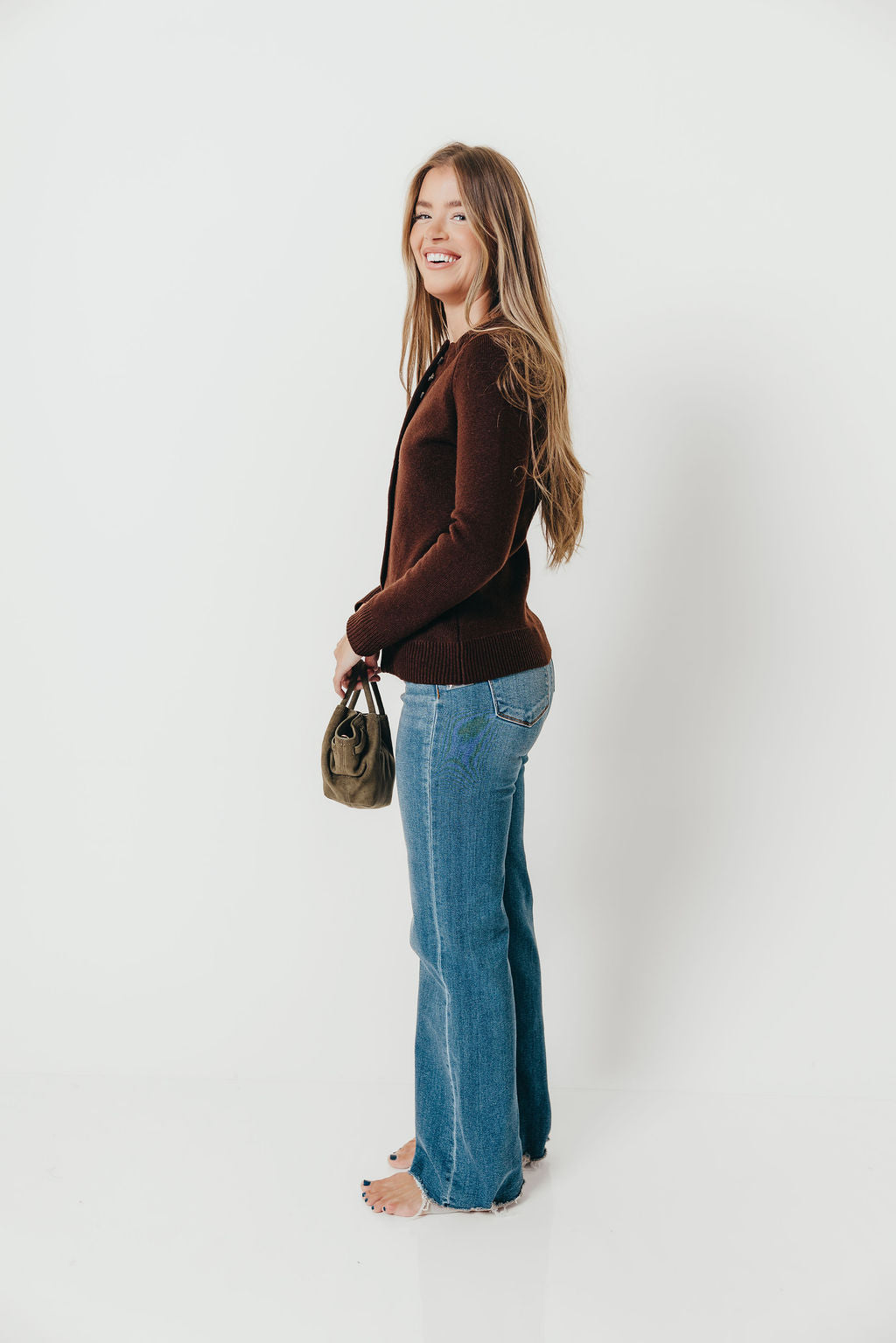 Priya Cardigan Top with Front Slit in Brown *Final Sale*