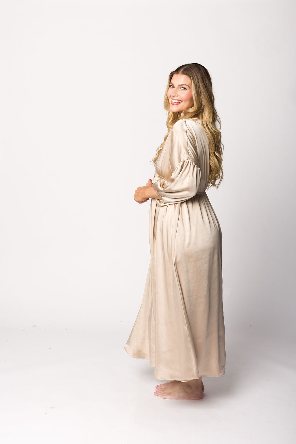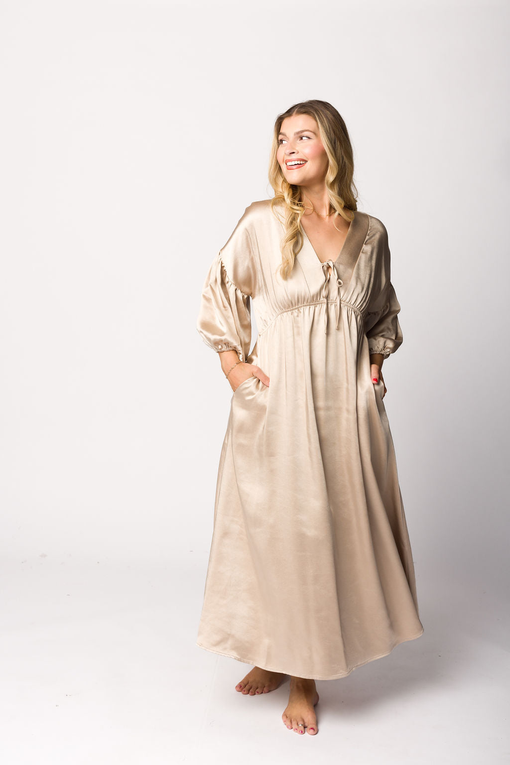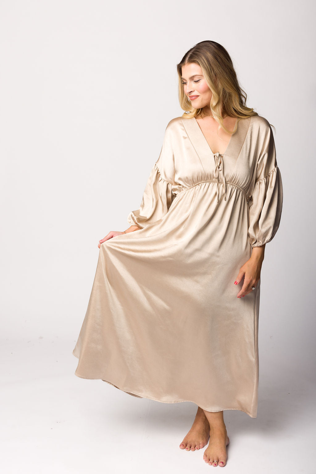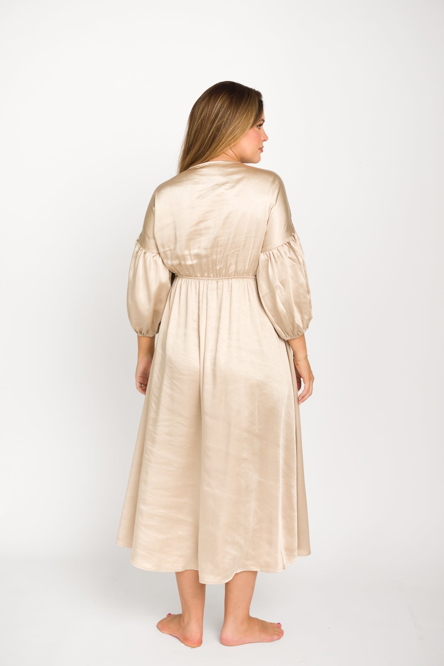 Hunter Premium *Satin* Midi Dress in Champagne - Bump Friendly *Final-Sale*