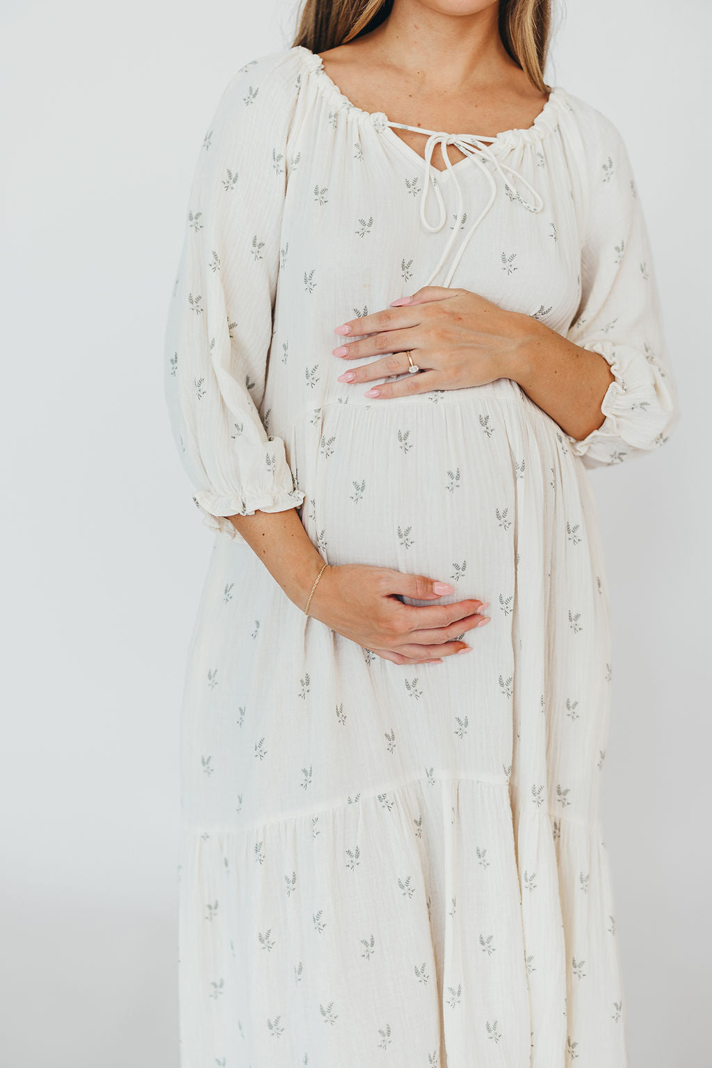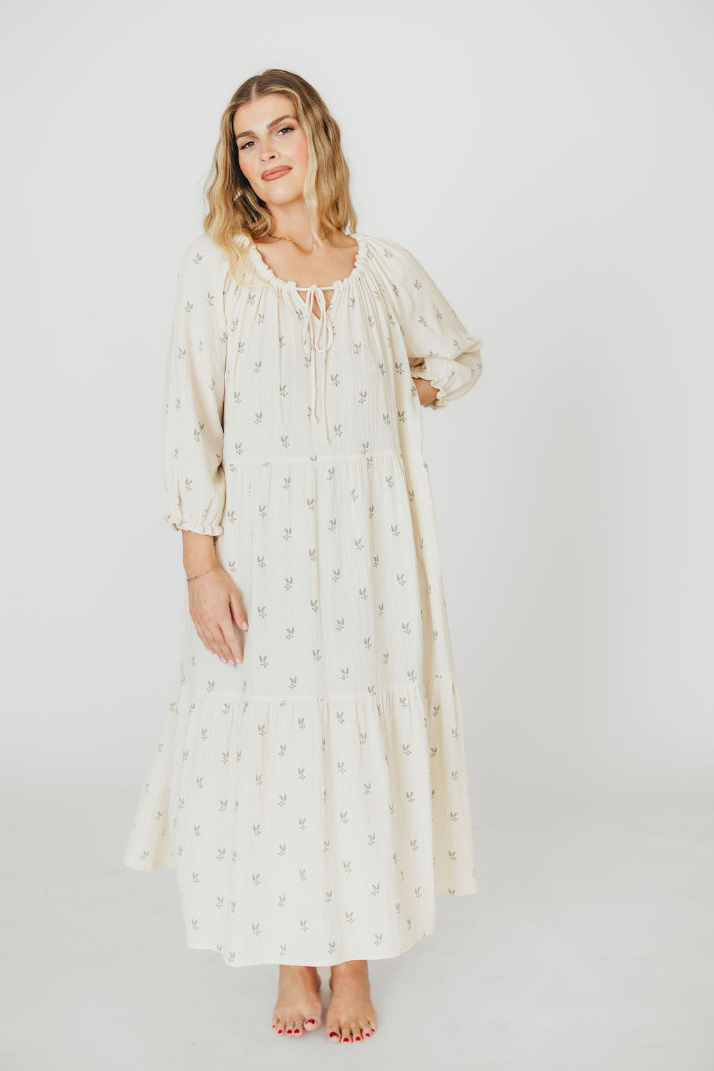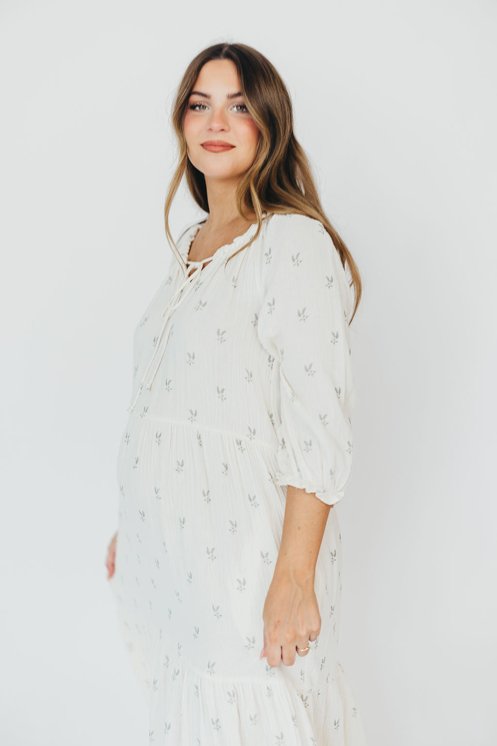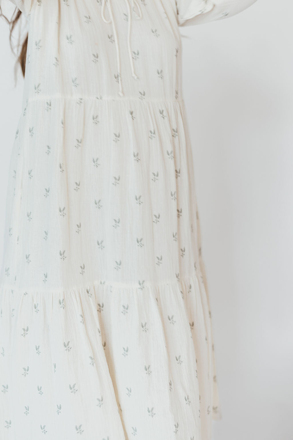 Avery Tiered Linen-Blend Midi Dress in Soy/Sage Foliage - Bump Friendly and Inclusive Sizing *Final-Sale*
