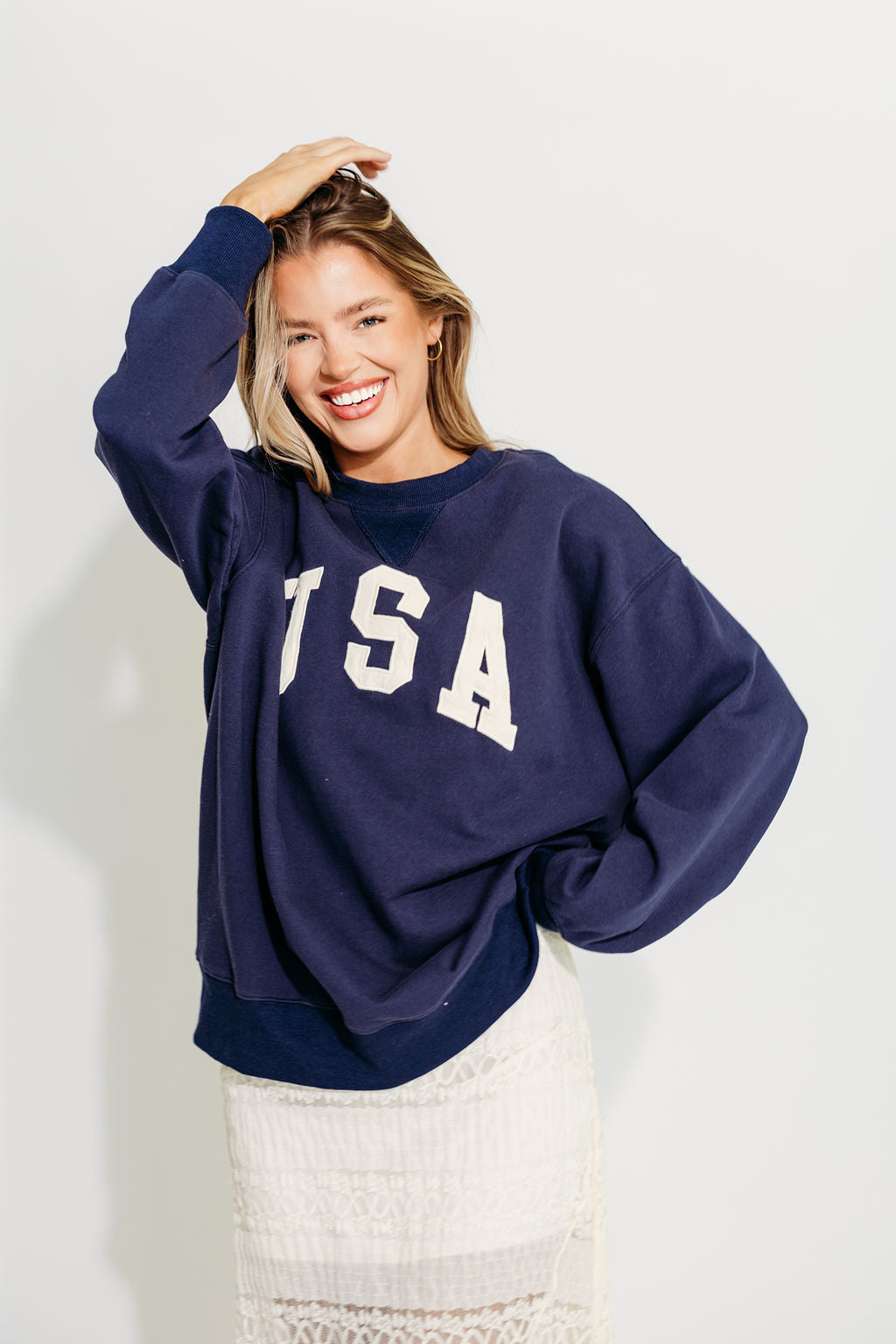 USA 100% Cotton Terry Pullover in Navy *Final-Sale*