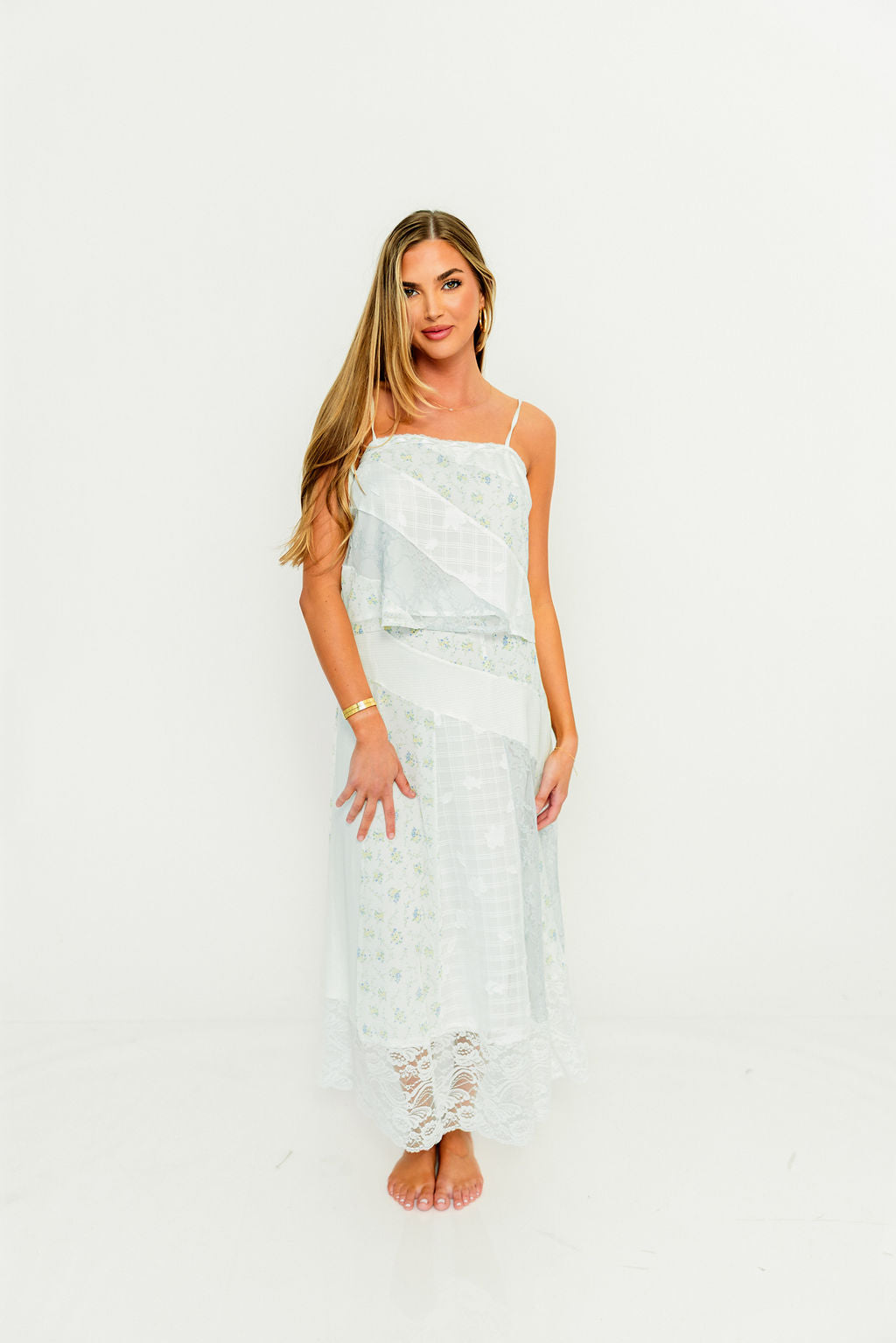 Kelsey Floral and Lace Top in Ivory/Blue