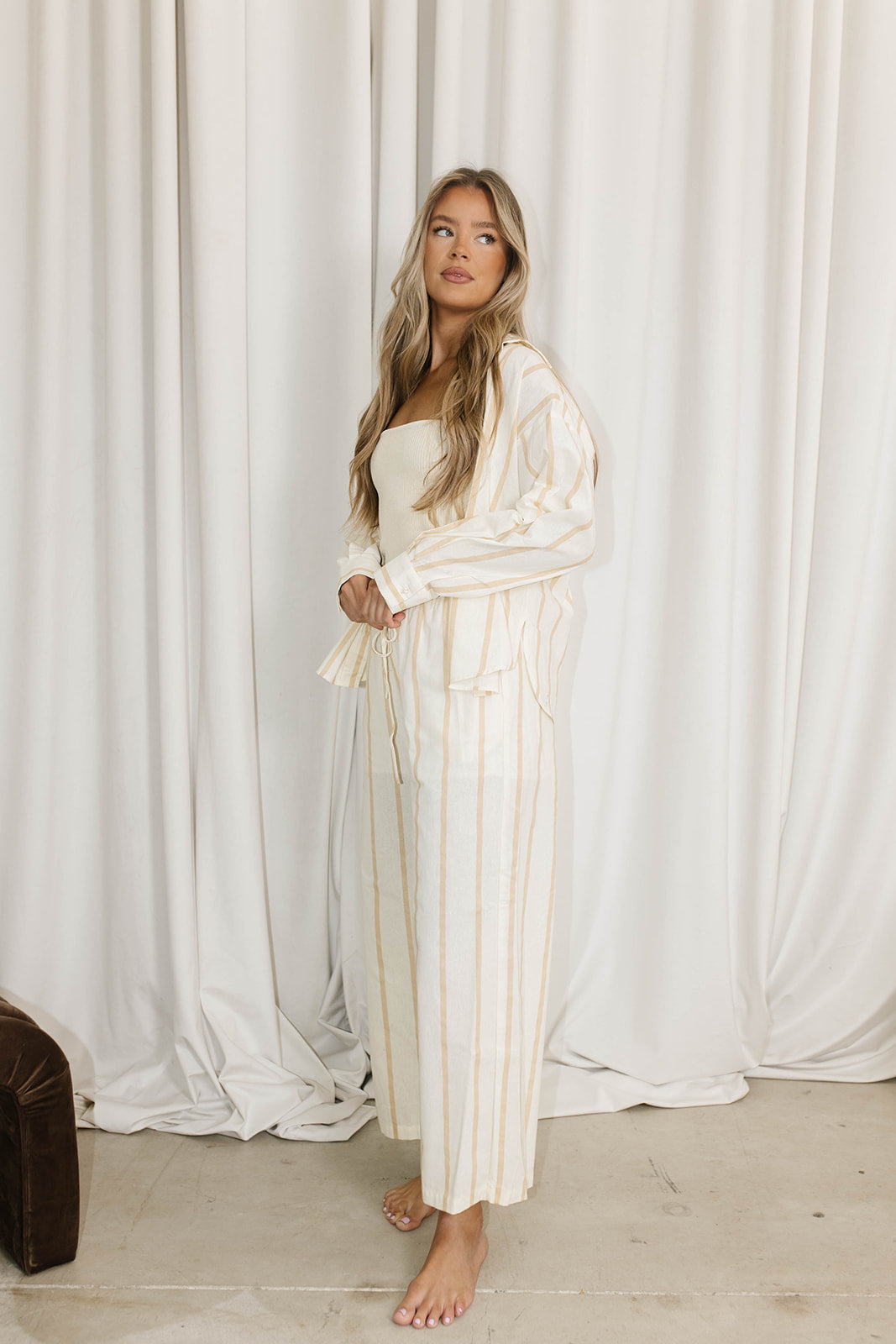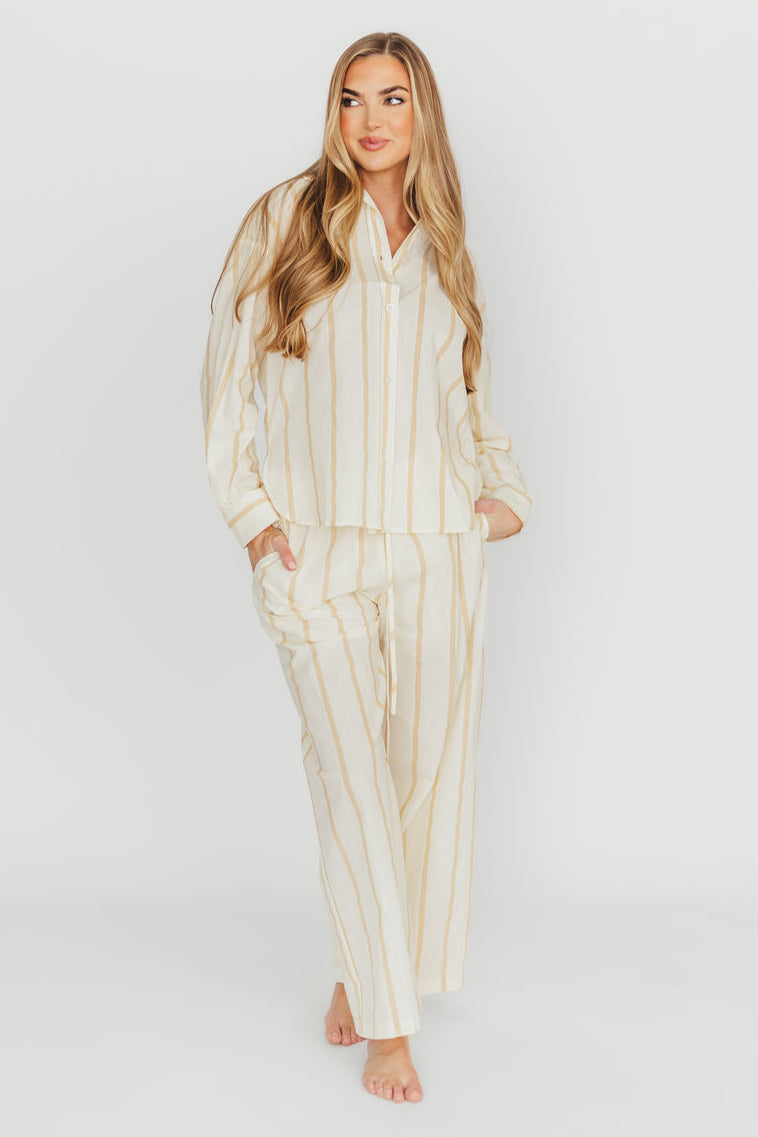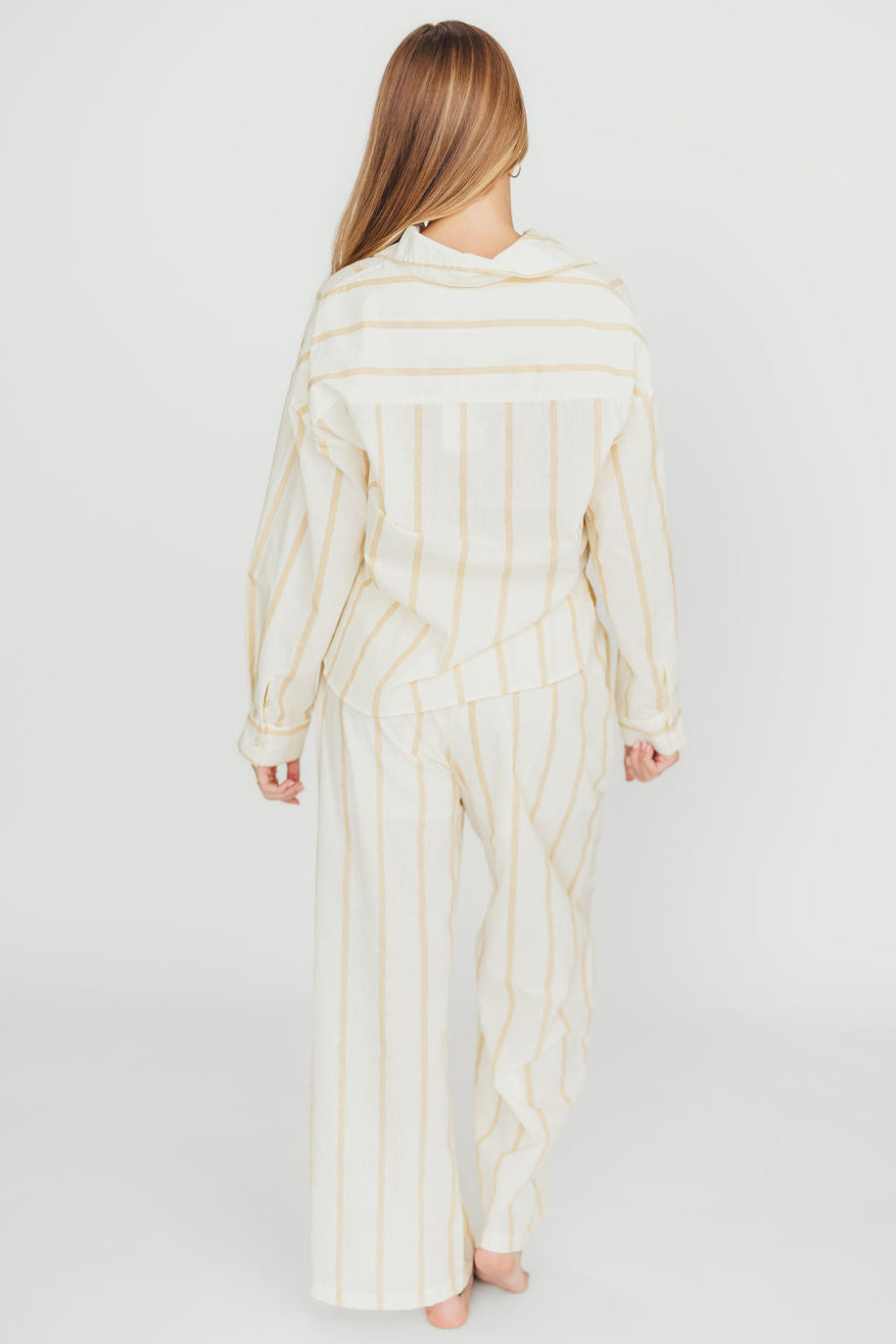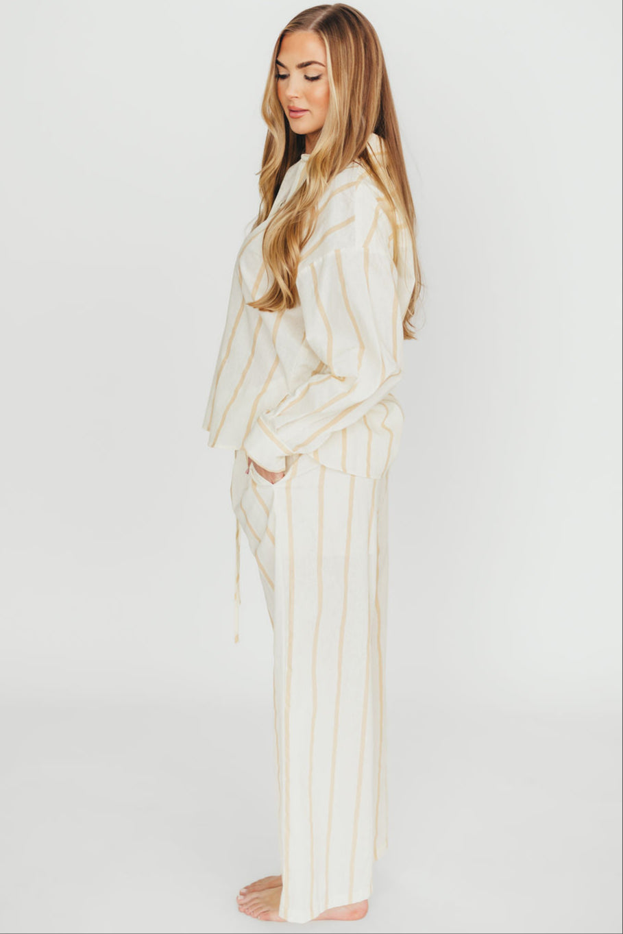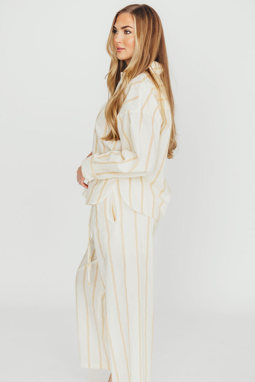 Sicily Button-Down Top in Beige Stripe - Nursing Friendly *Final-Sale*