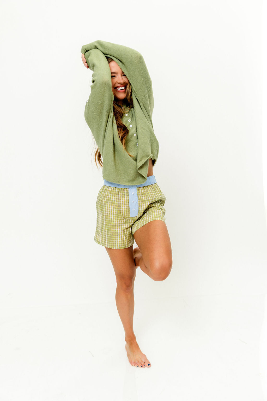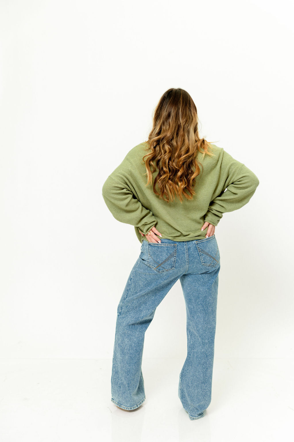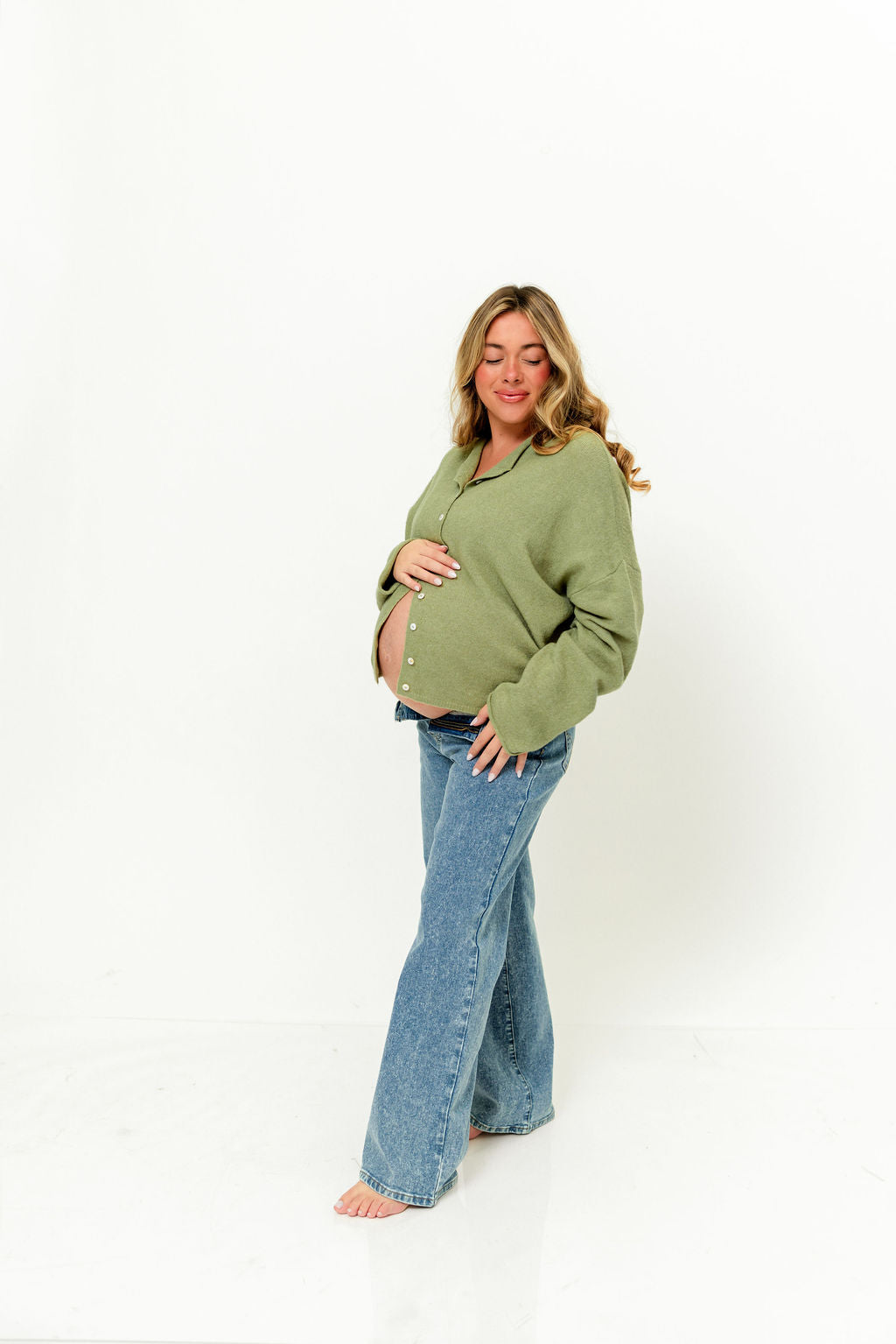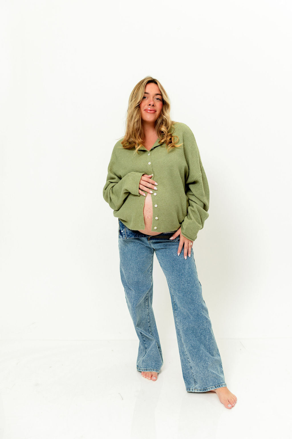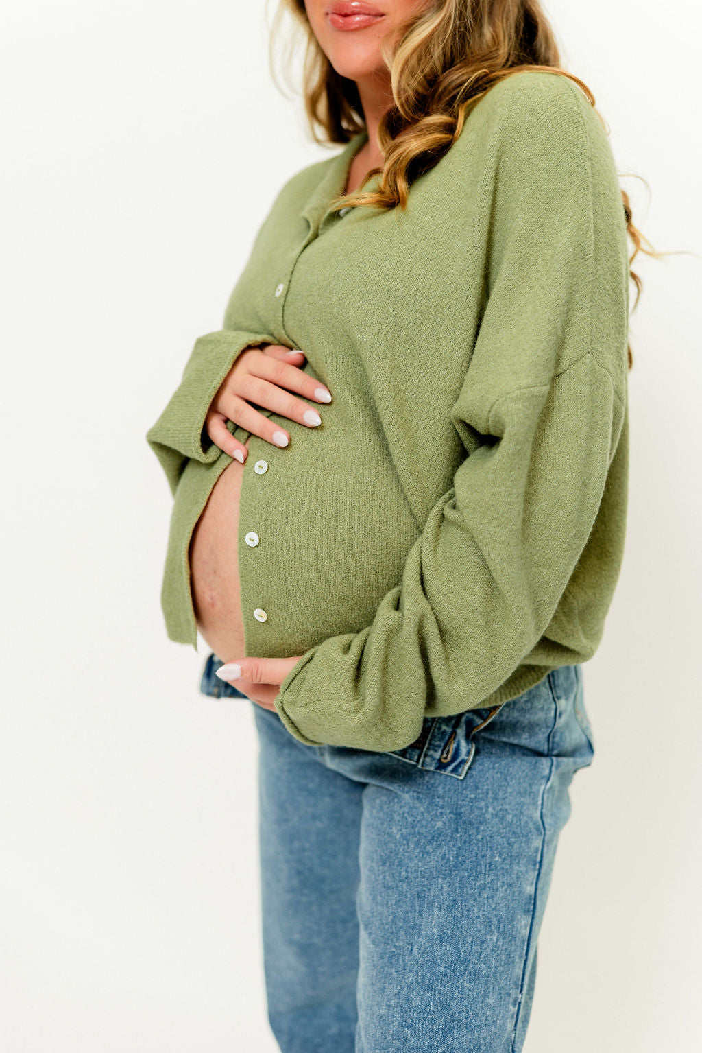 Vicki Hidden Button Cardigan Top in Olive *Final Sale*