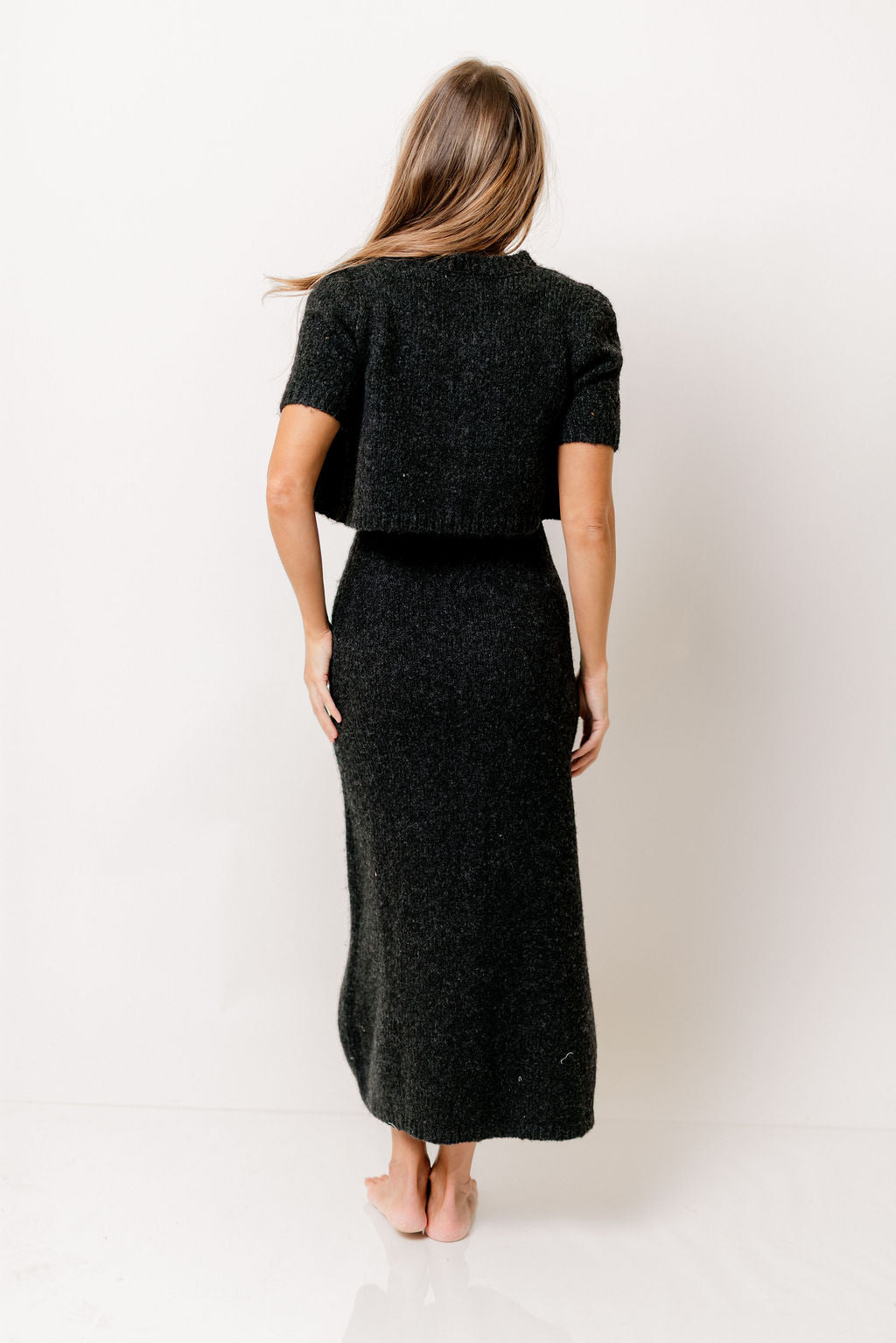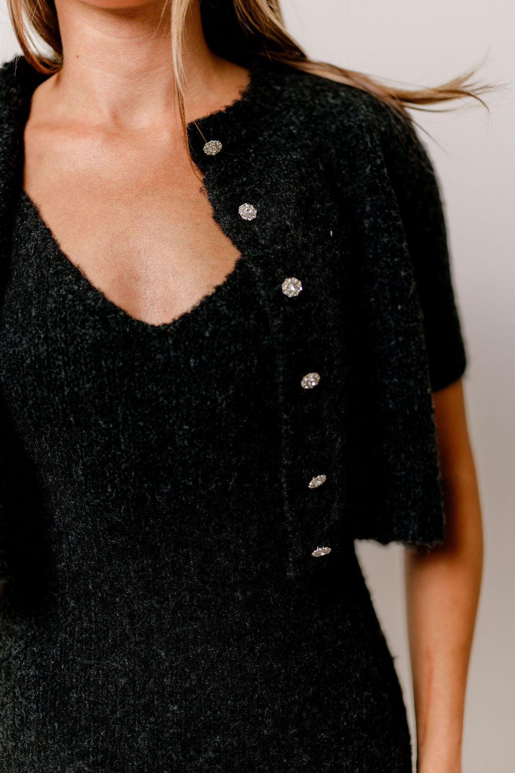 Meli Sweater Dress with Cropped Short Sleeve Cardigan in Charcoal