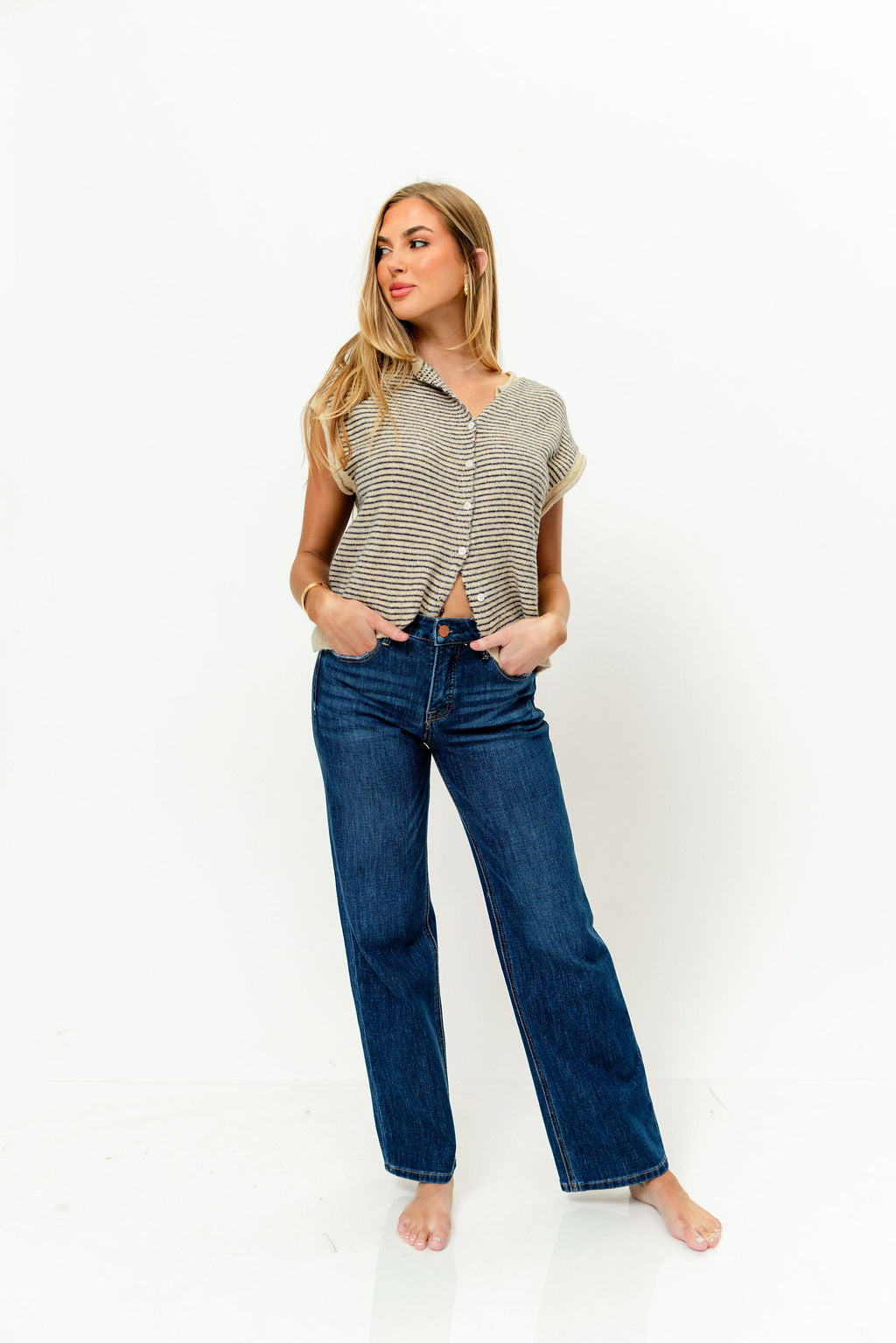 Arely Striped Sweater Vest Cardigan in Dusty Blue - Nursing Friendly *Final Sale*