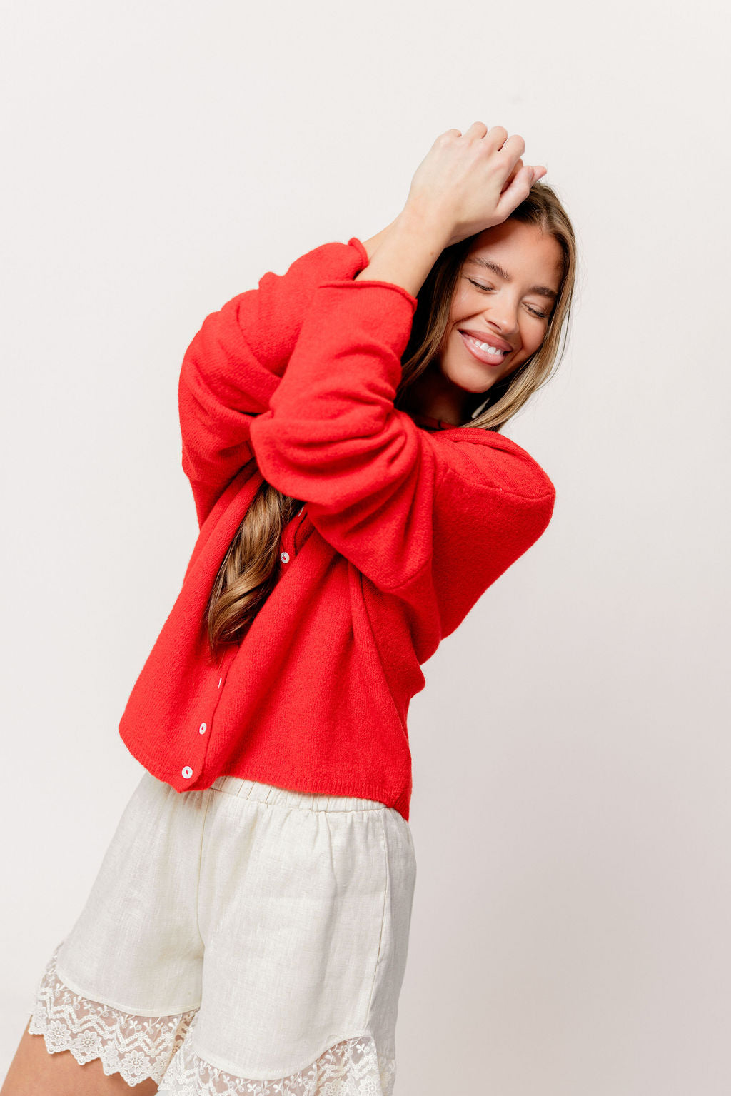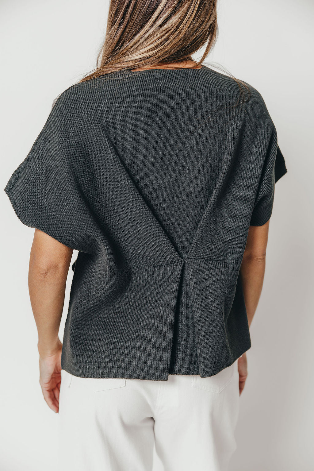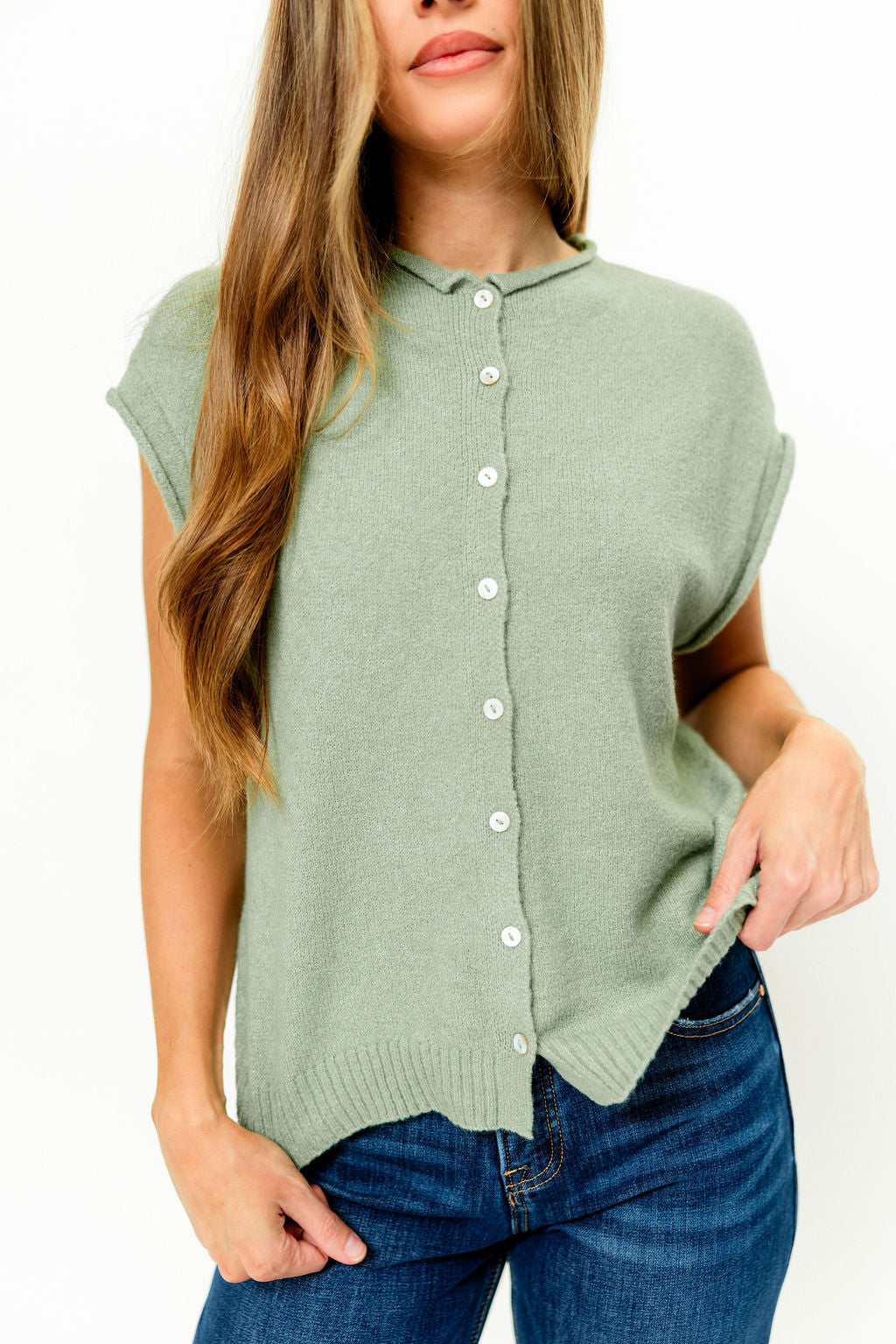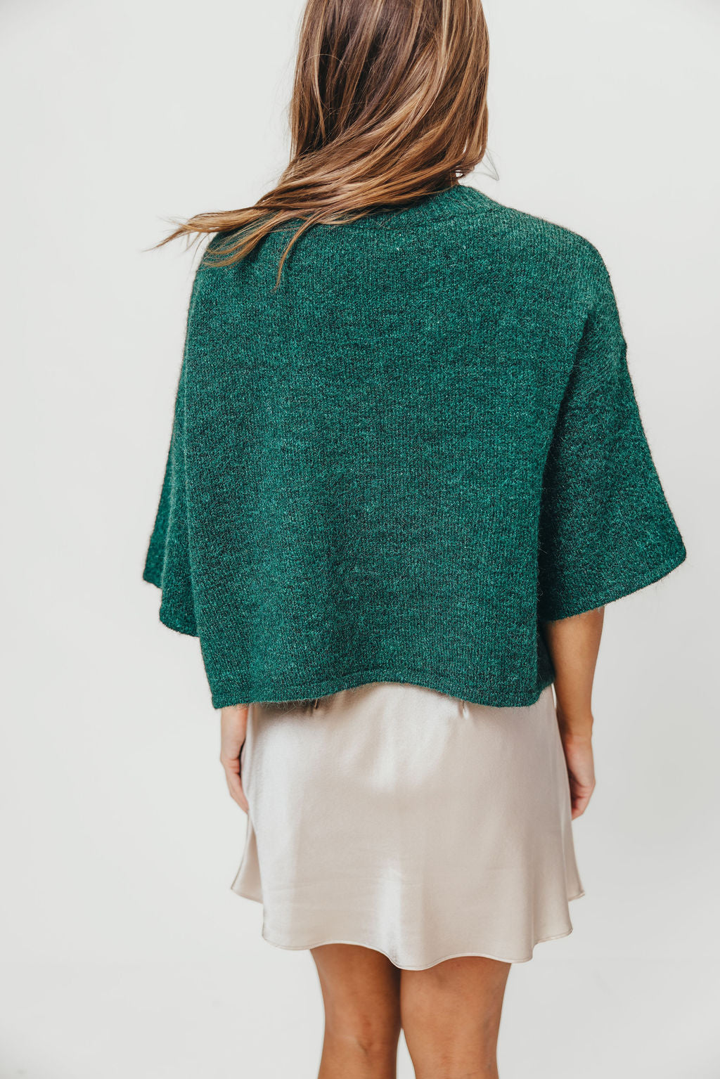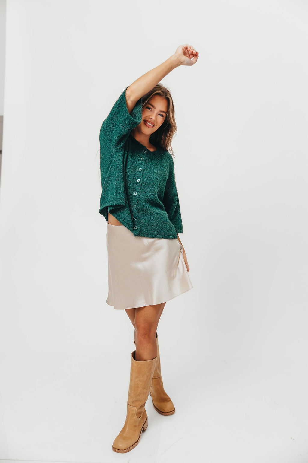 Chutney Button-Up Half Sleeve Knit Cardigan Top in Hunter Green *Final-Sale*