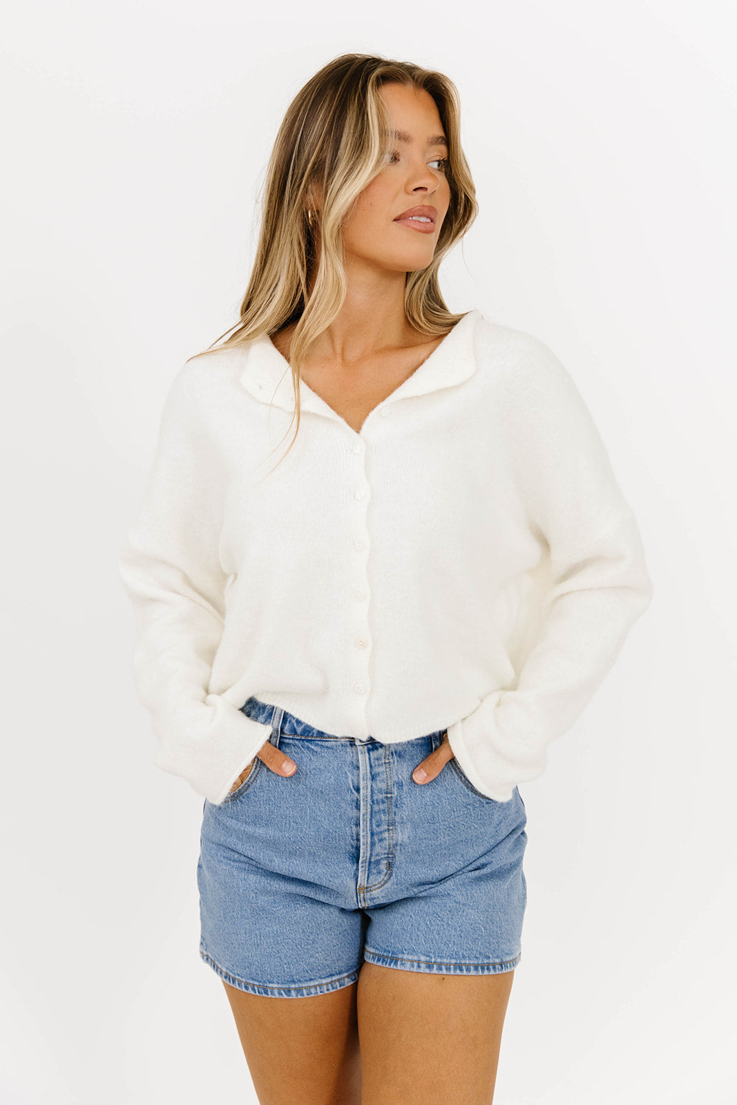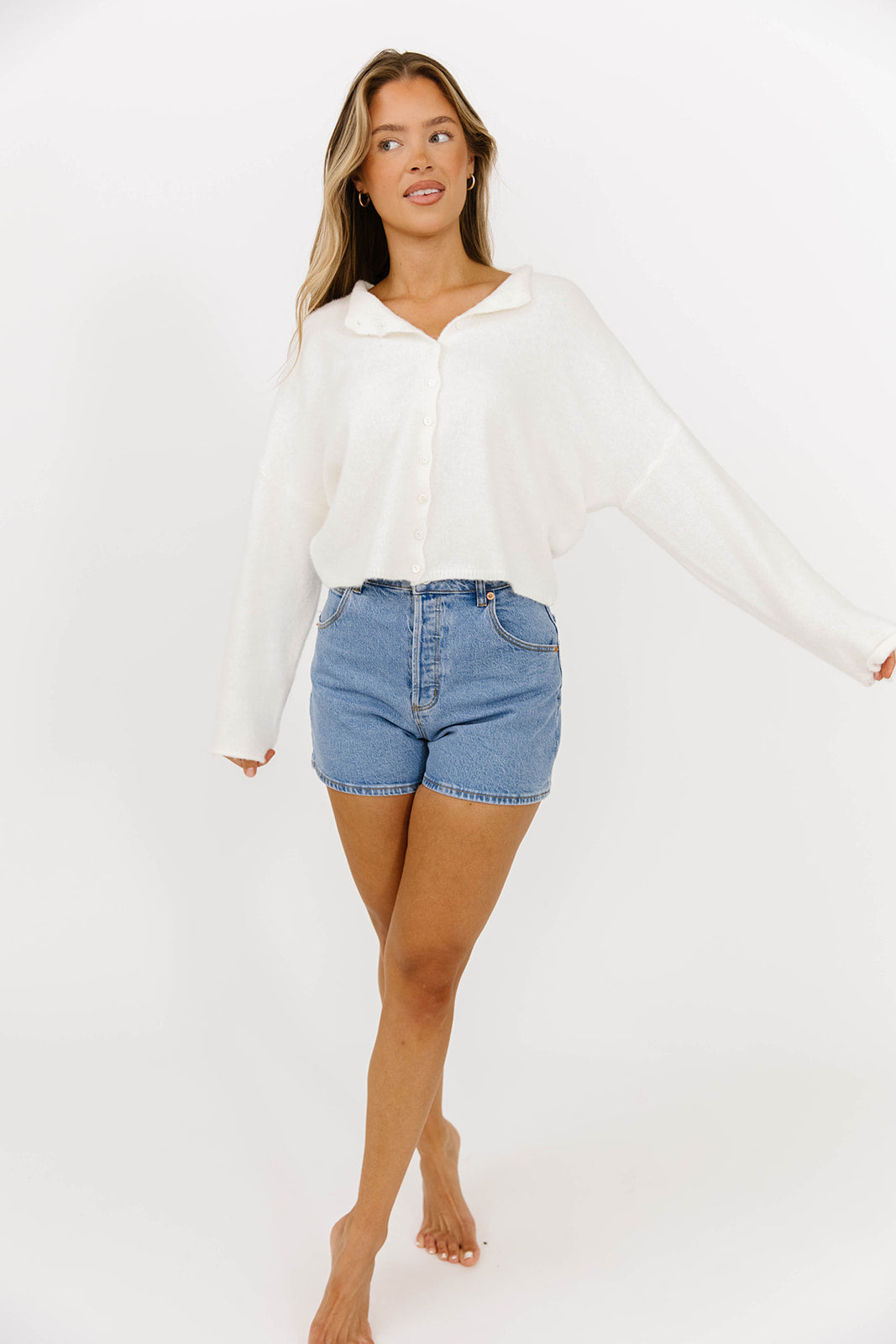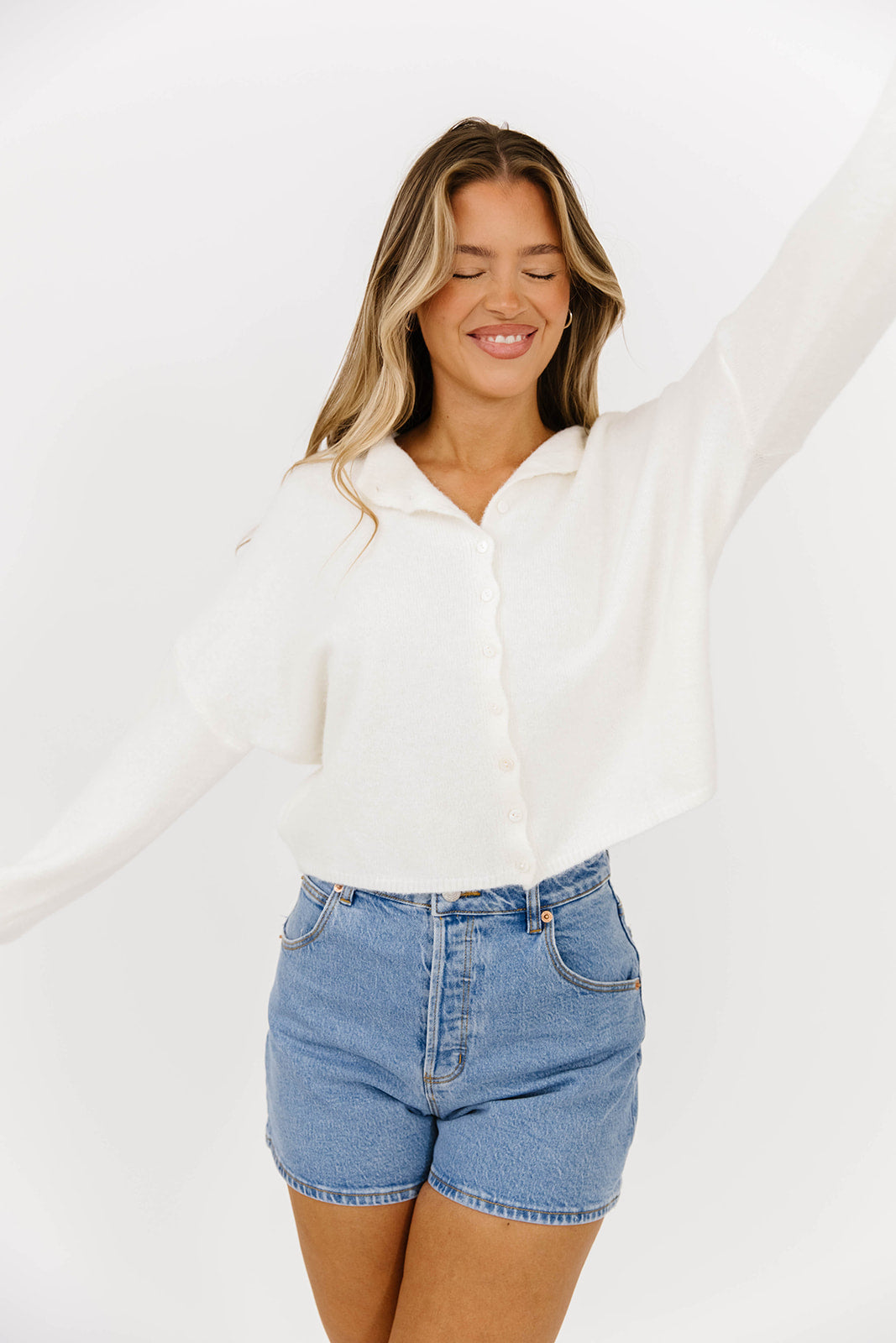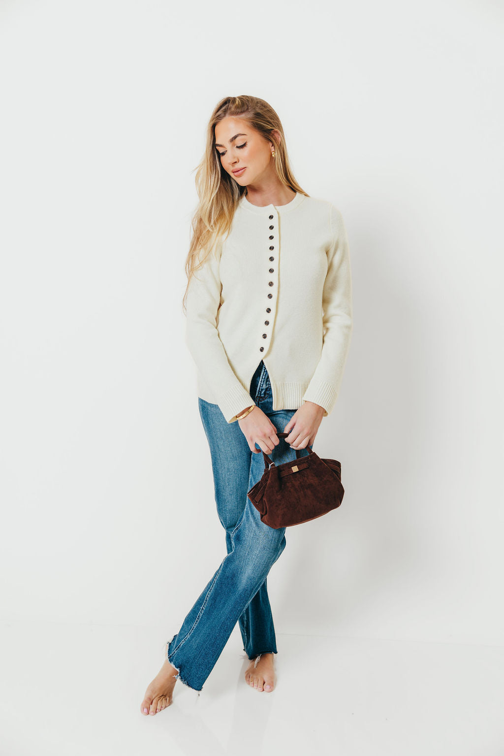 Priya Cardigan Top with Front Slit in Cream *Final Sale*