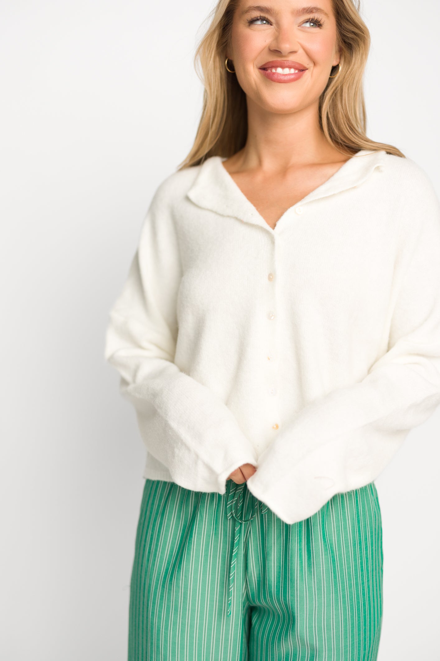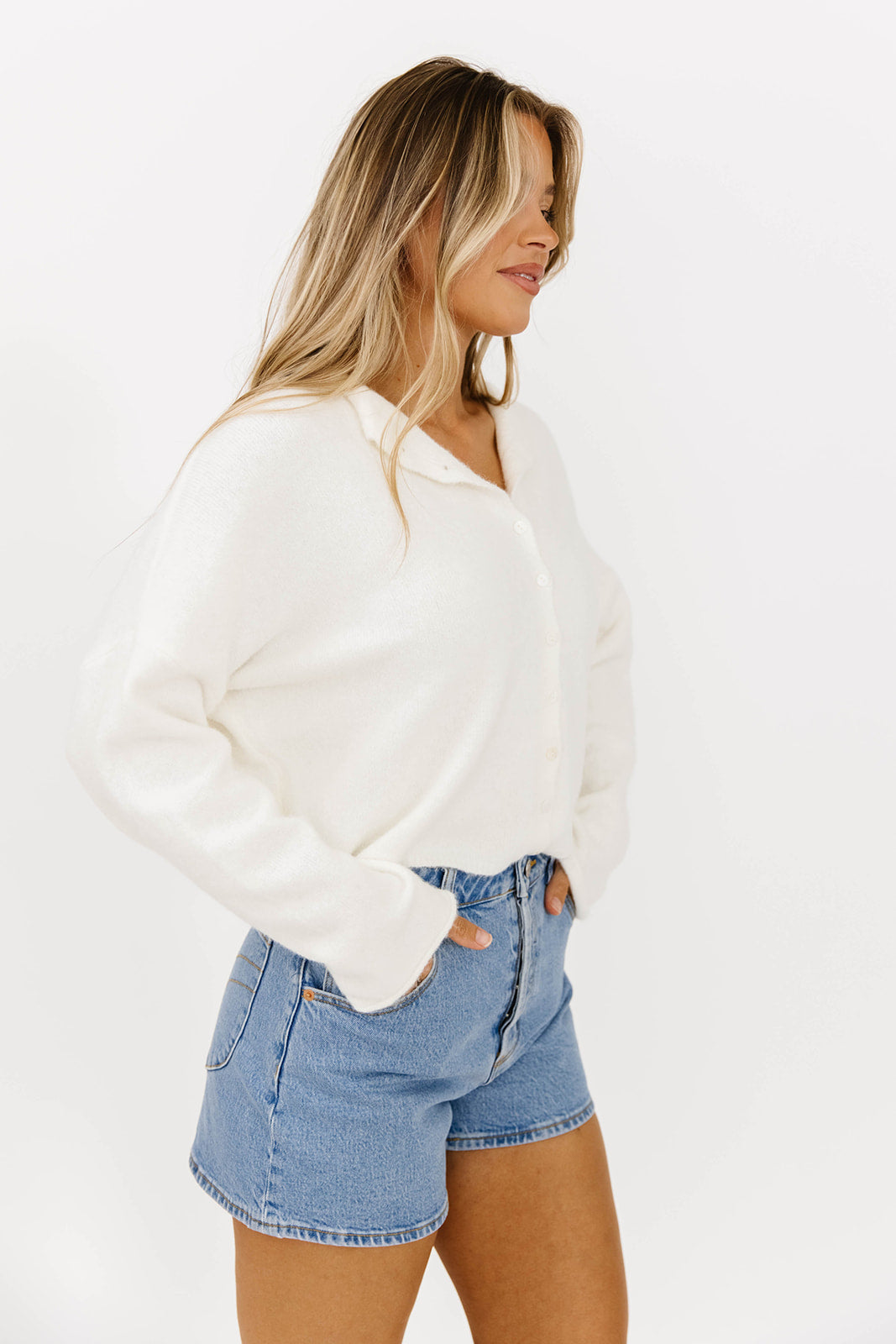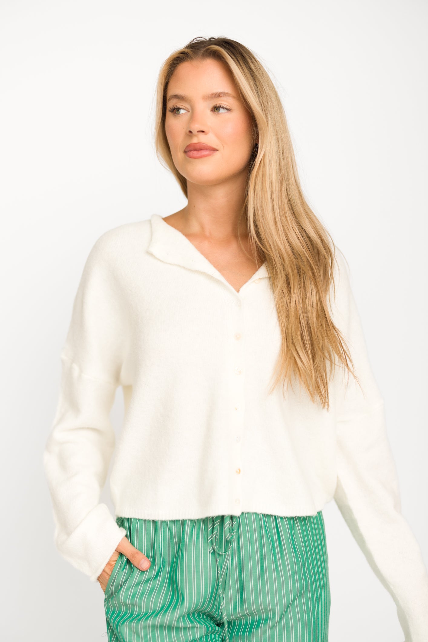 Priya Cardigan Top with Front Slit in Cream *Final Sale*