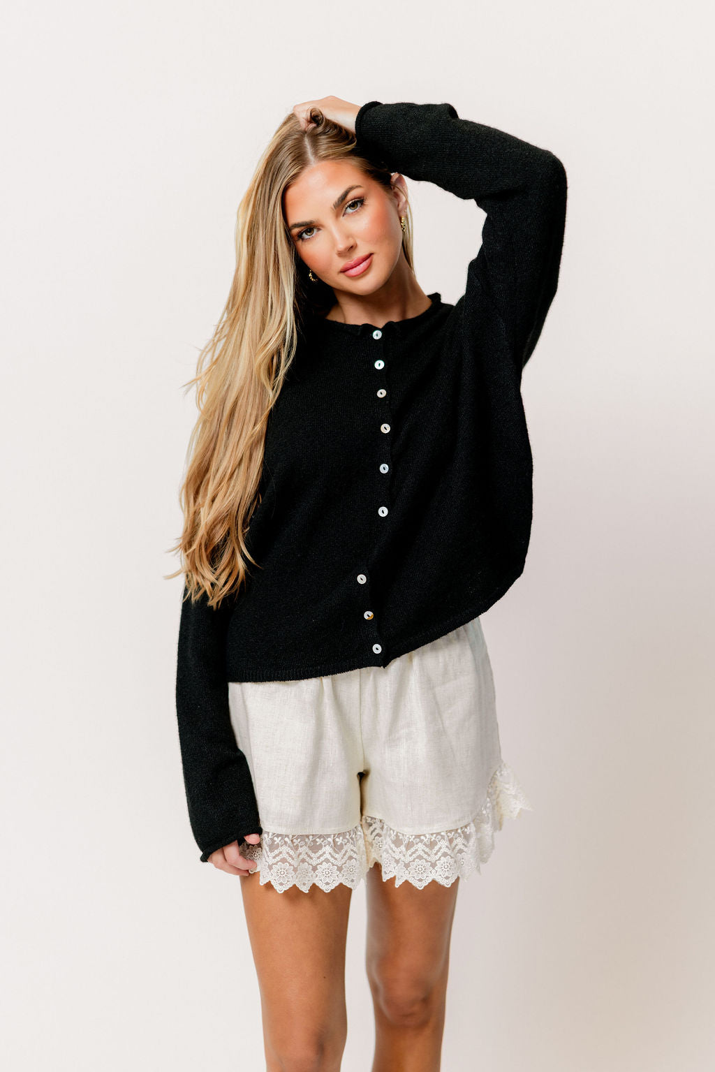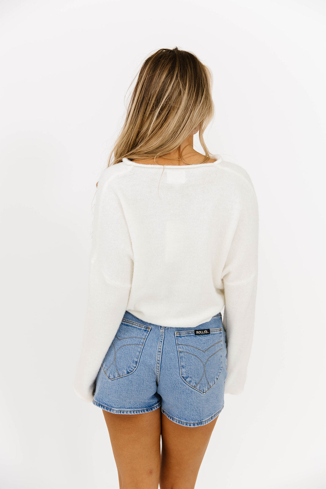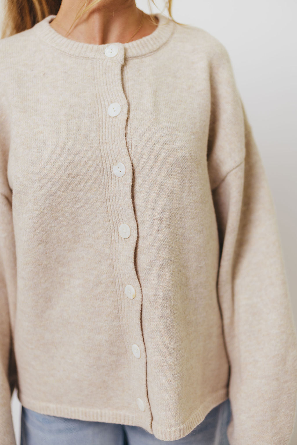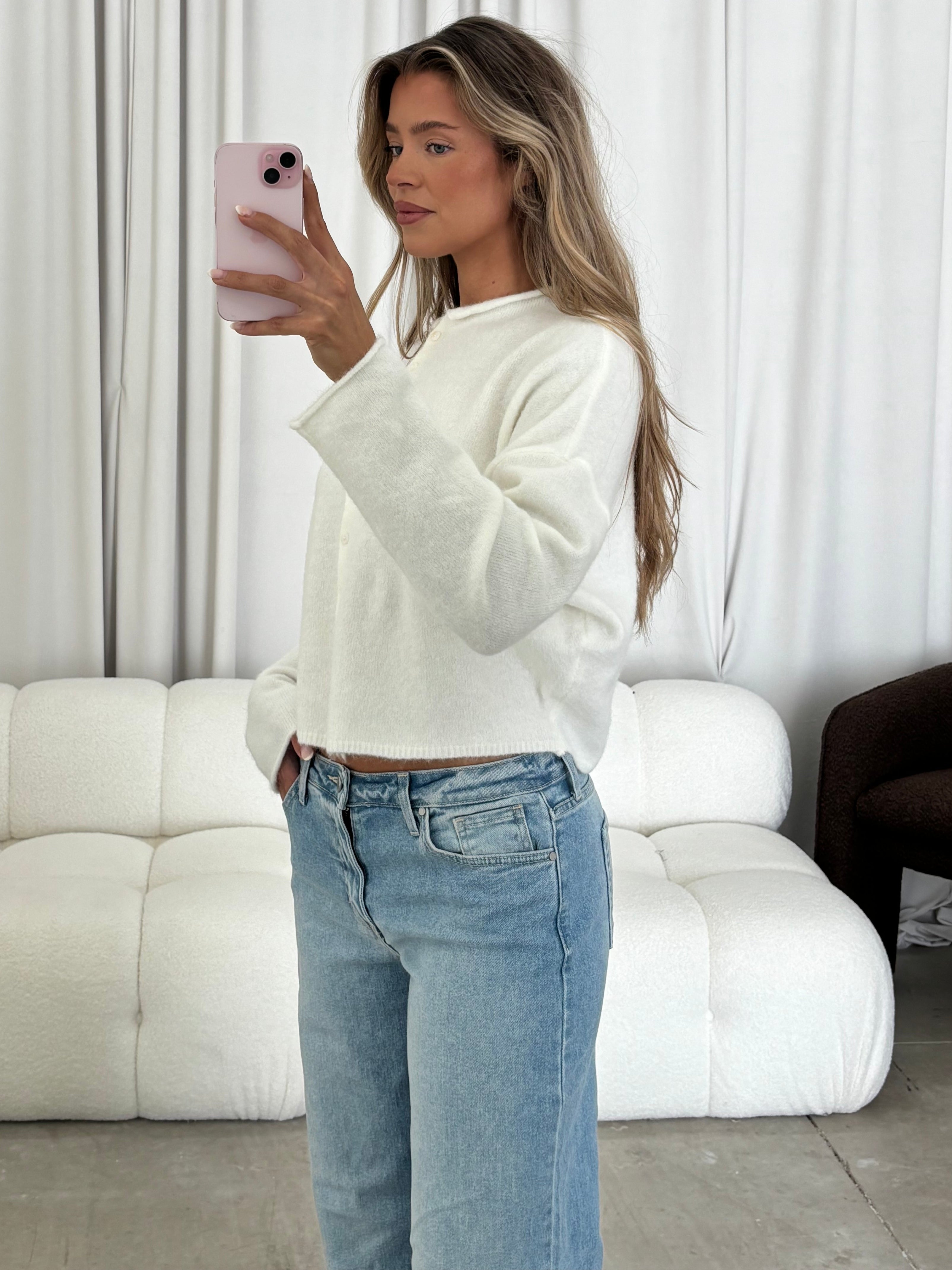Priya Cardigan Top with Front Slit in Cream *Final Sale*