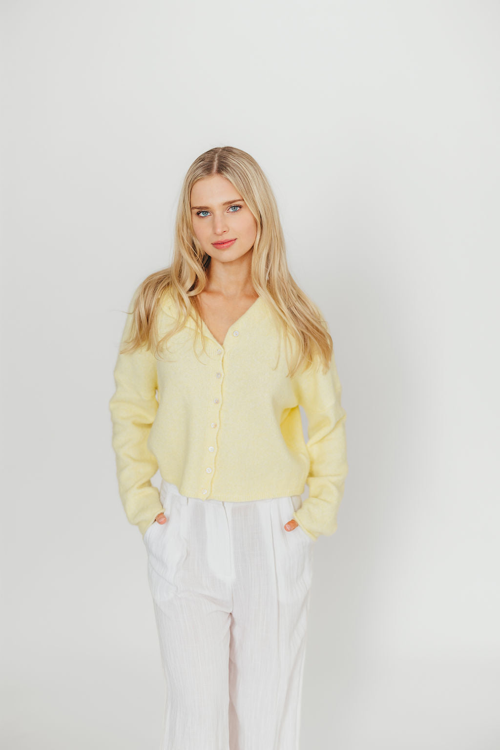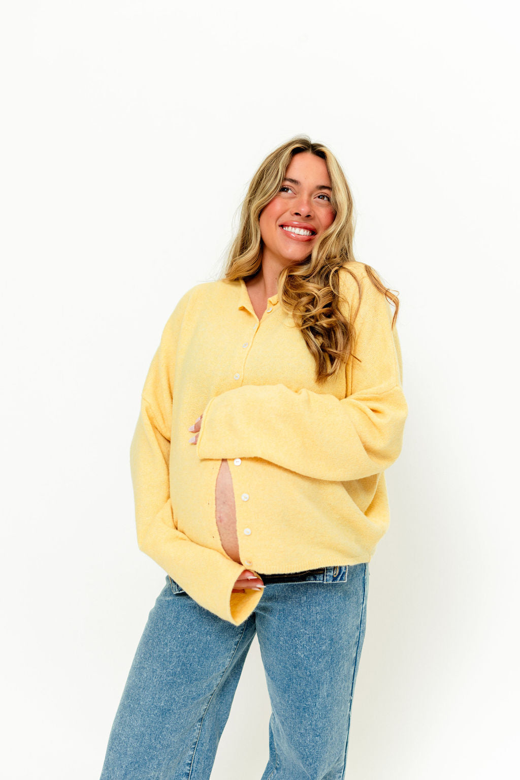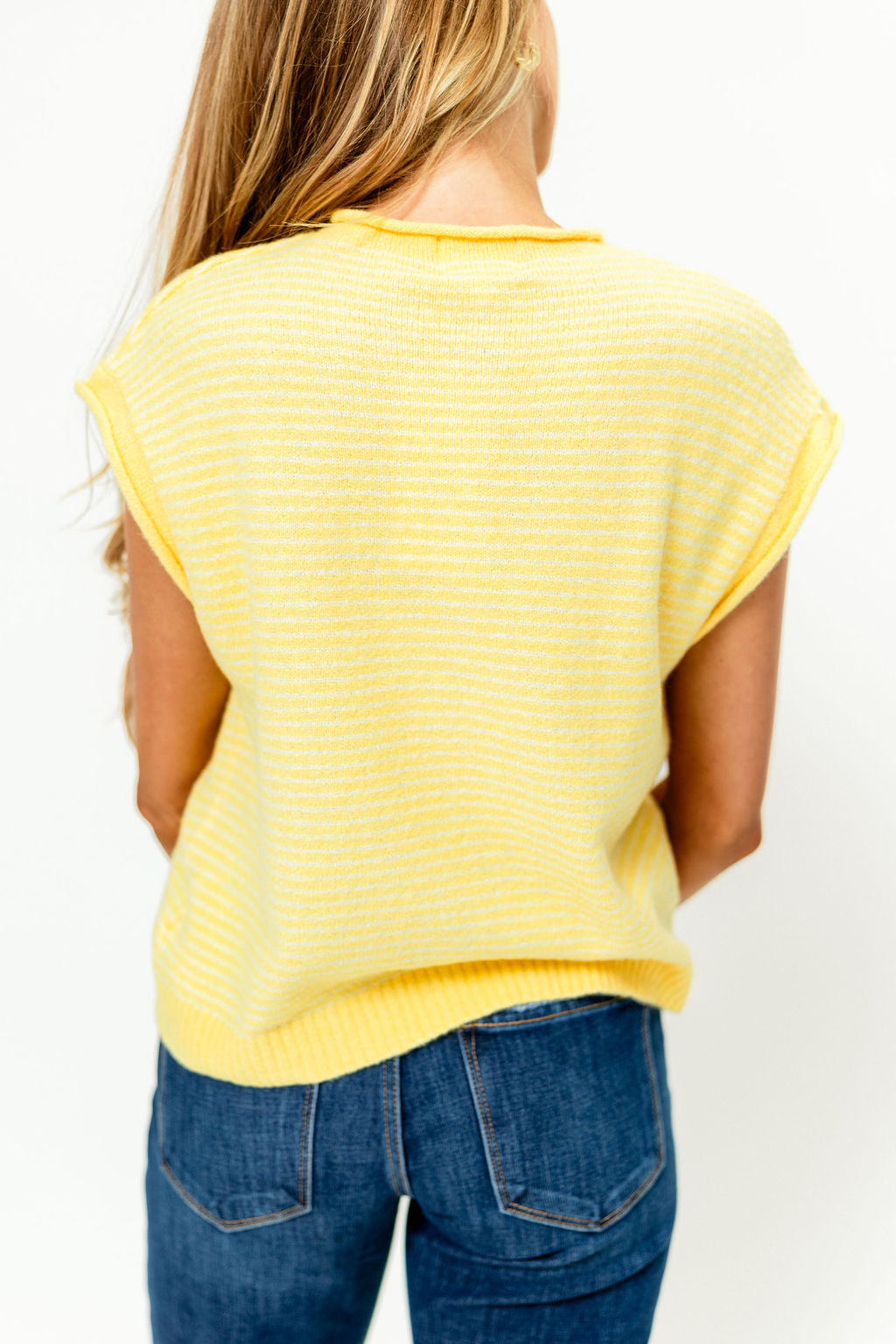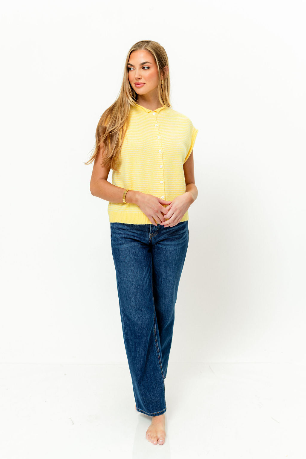 Arely Striped Sweater Vest Cardigan in Butter - Nursing Friendly