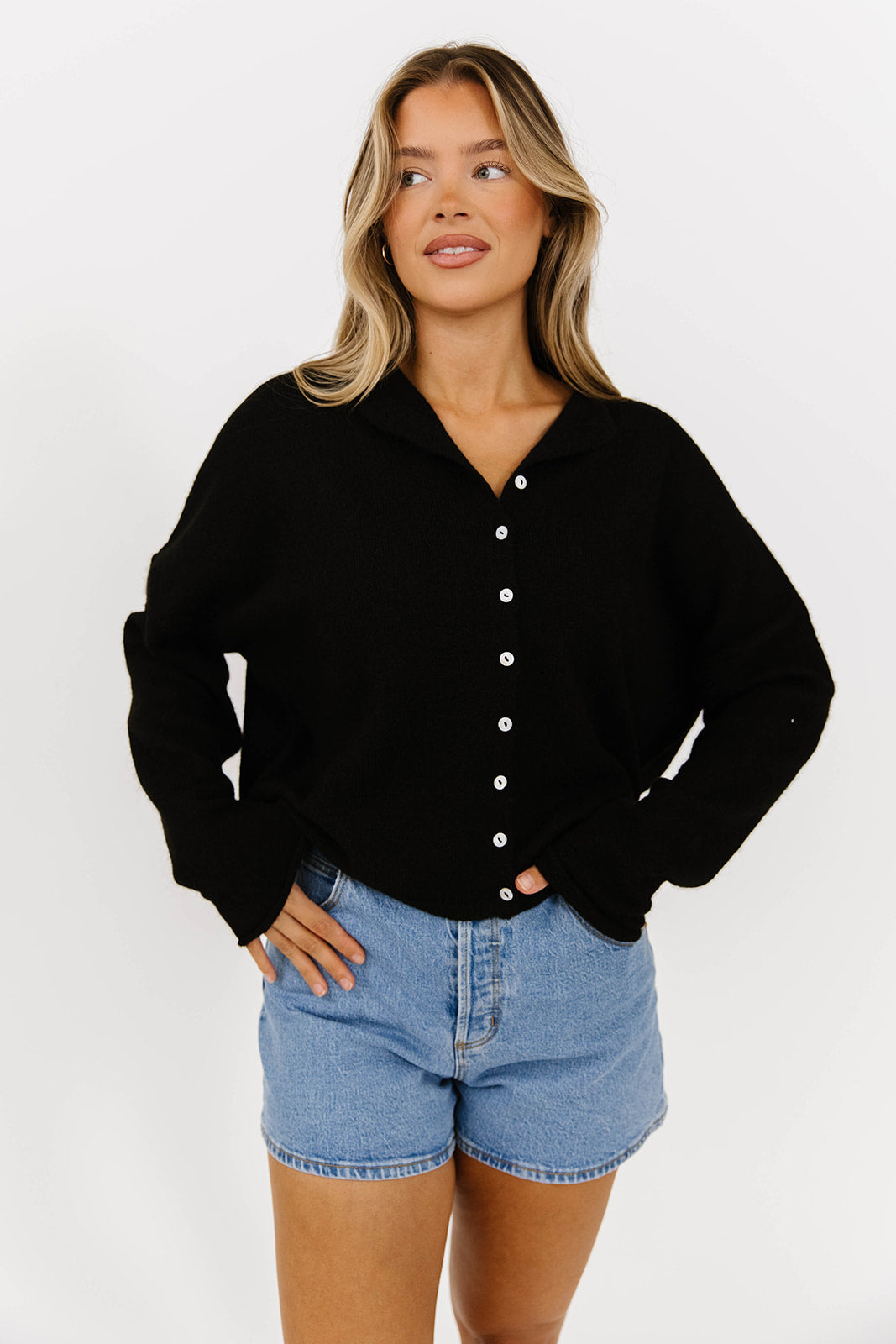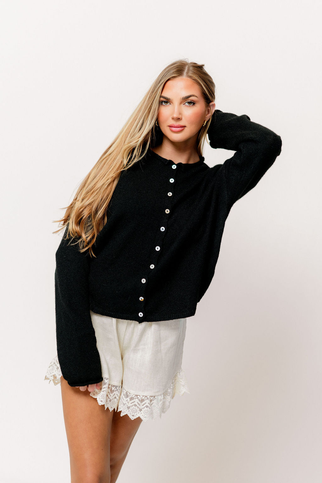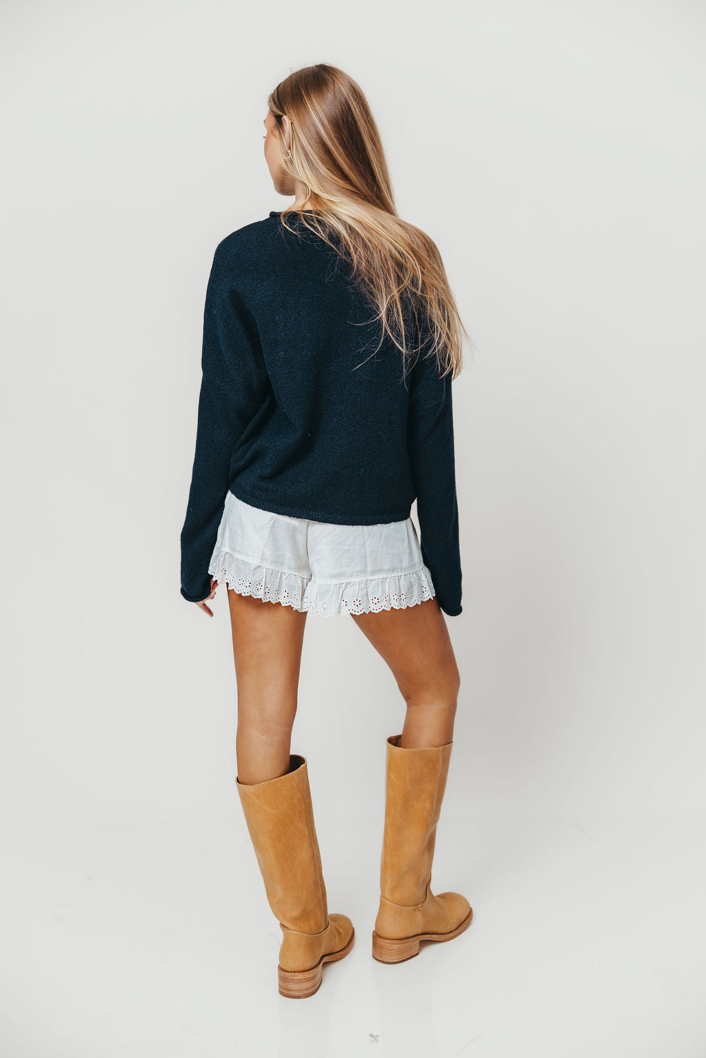 Chutney Button-Up Half Sleeve Knit Cardigan Top in Navy
