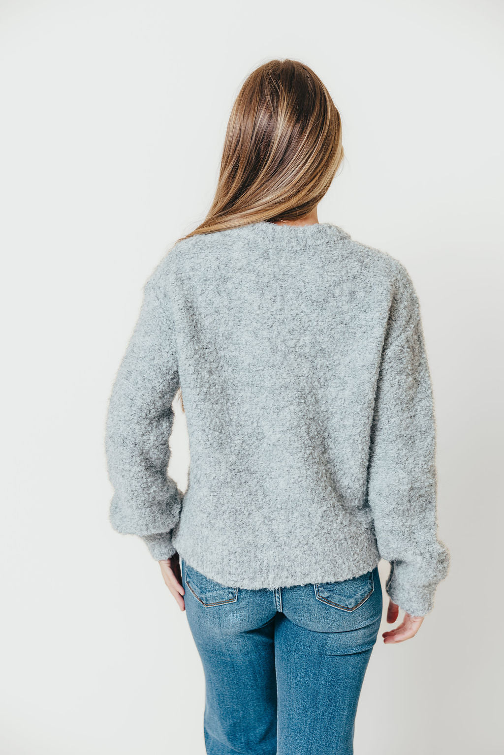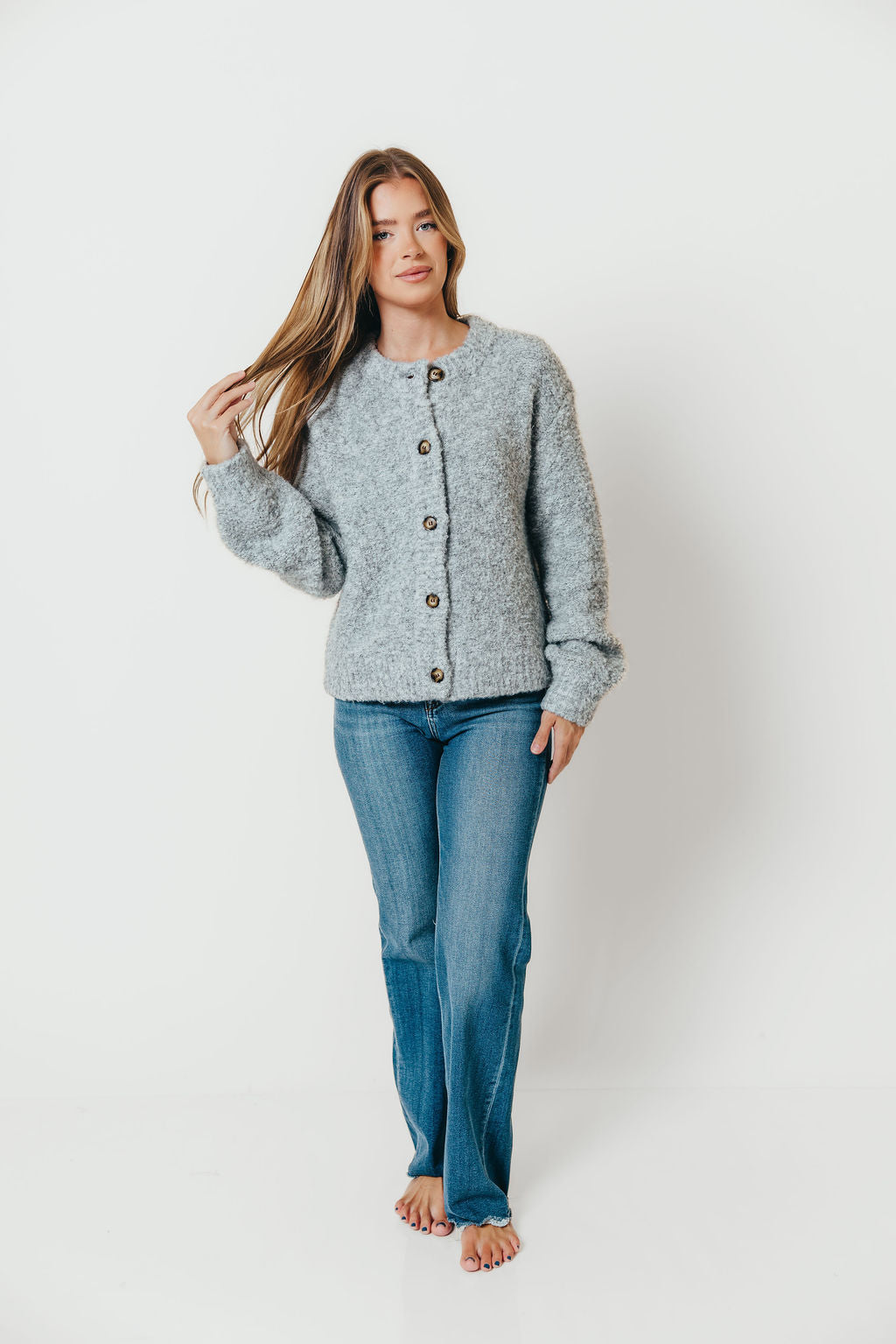 Nessa Brushed Alpine-Knit Cardigan in Silver Grey