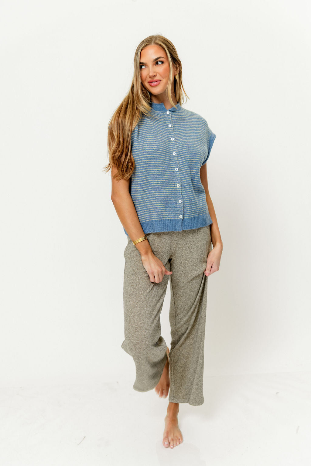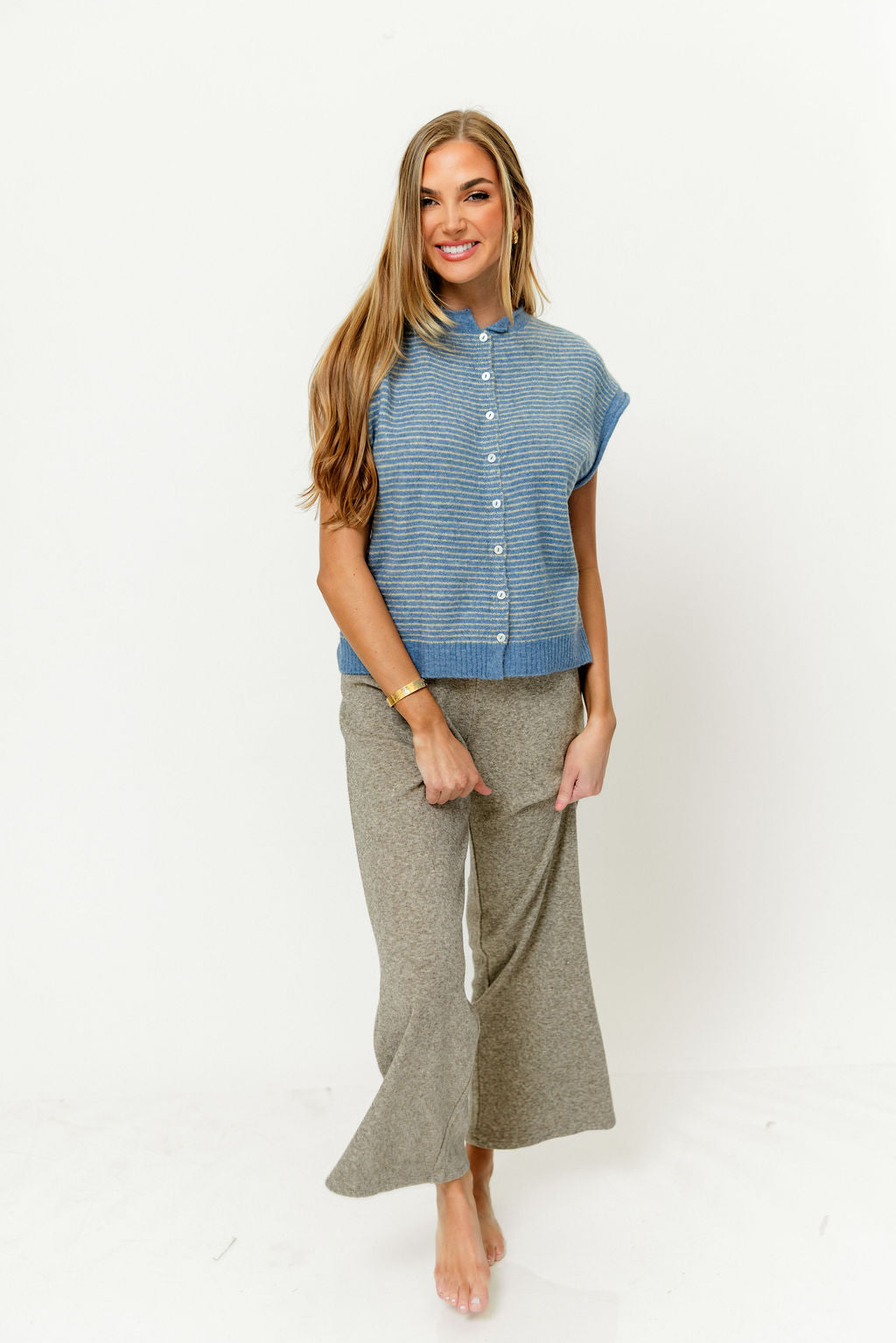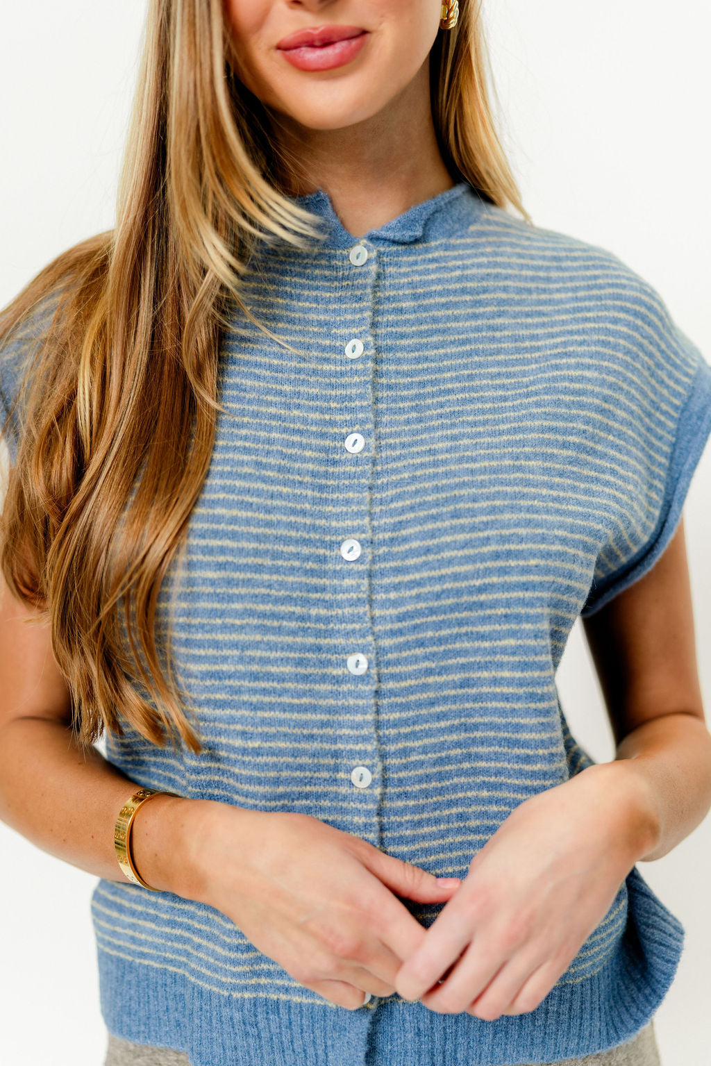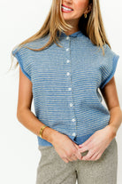 Arely Striped Sweater Vest Cardigan in Dusty Blue - Nursing Friendly *Final Sale*